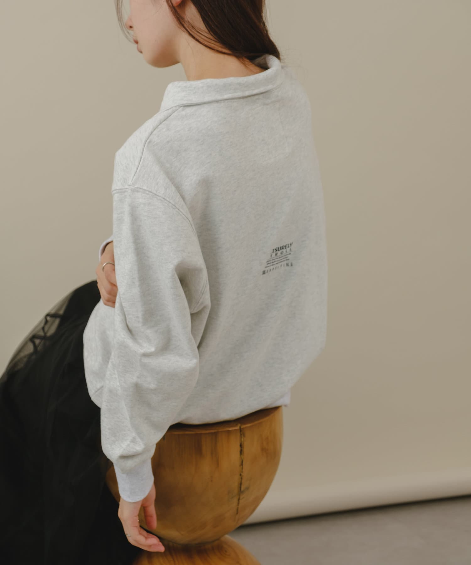 「悠々と散歩する」という意味の "LEISURELY STROLL" が目を惹くバックロゴスウェット。