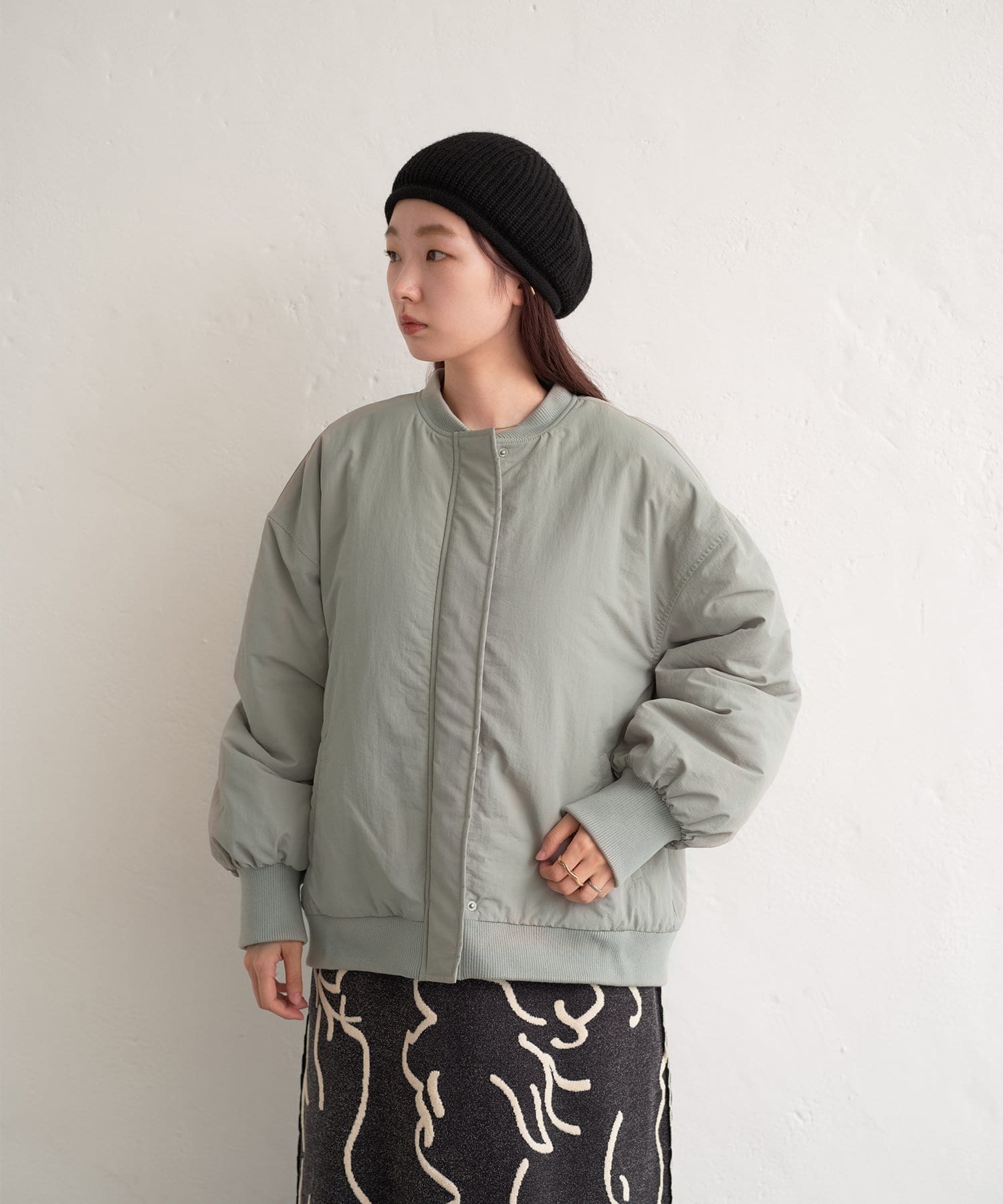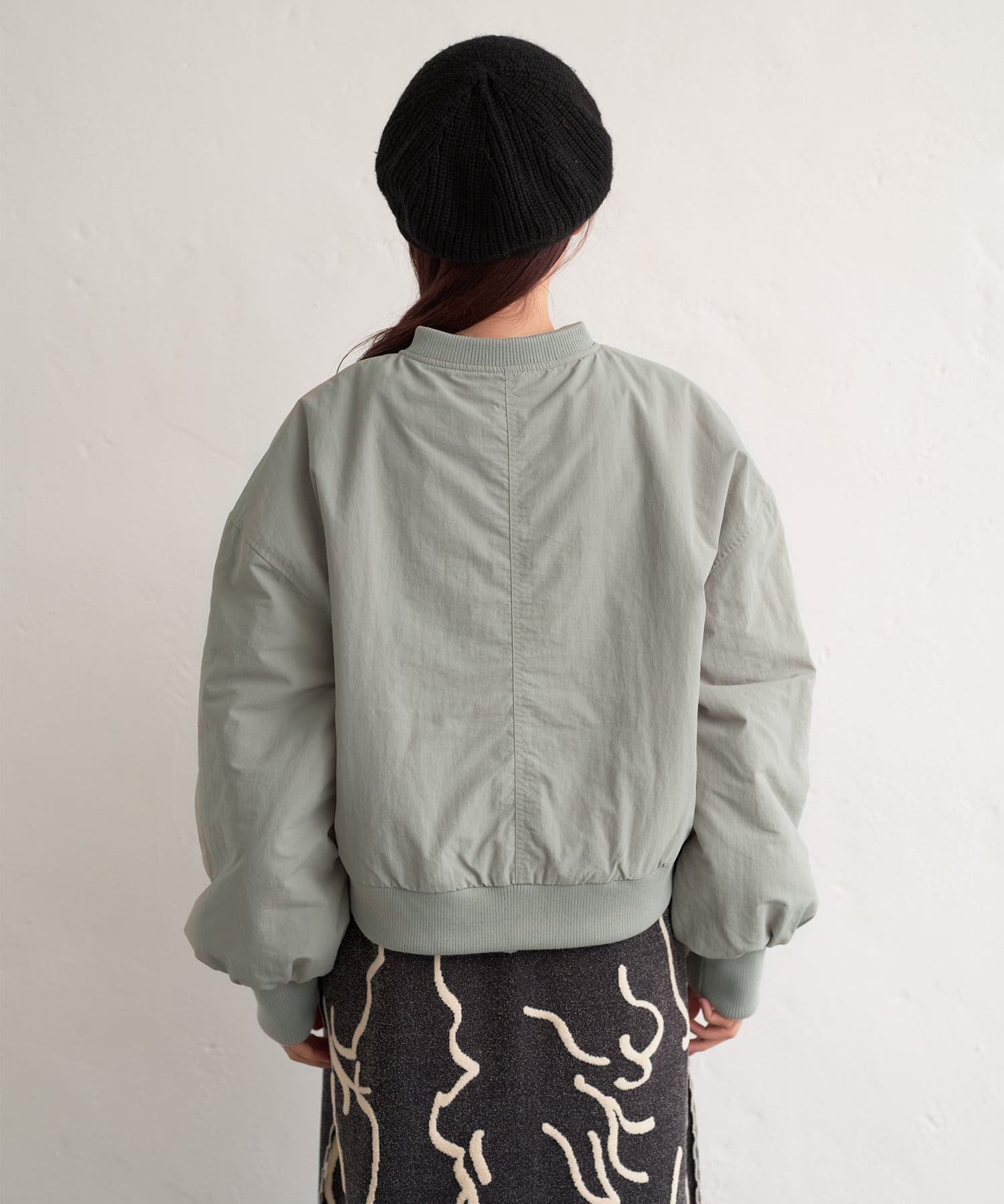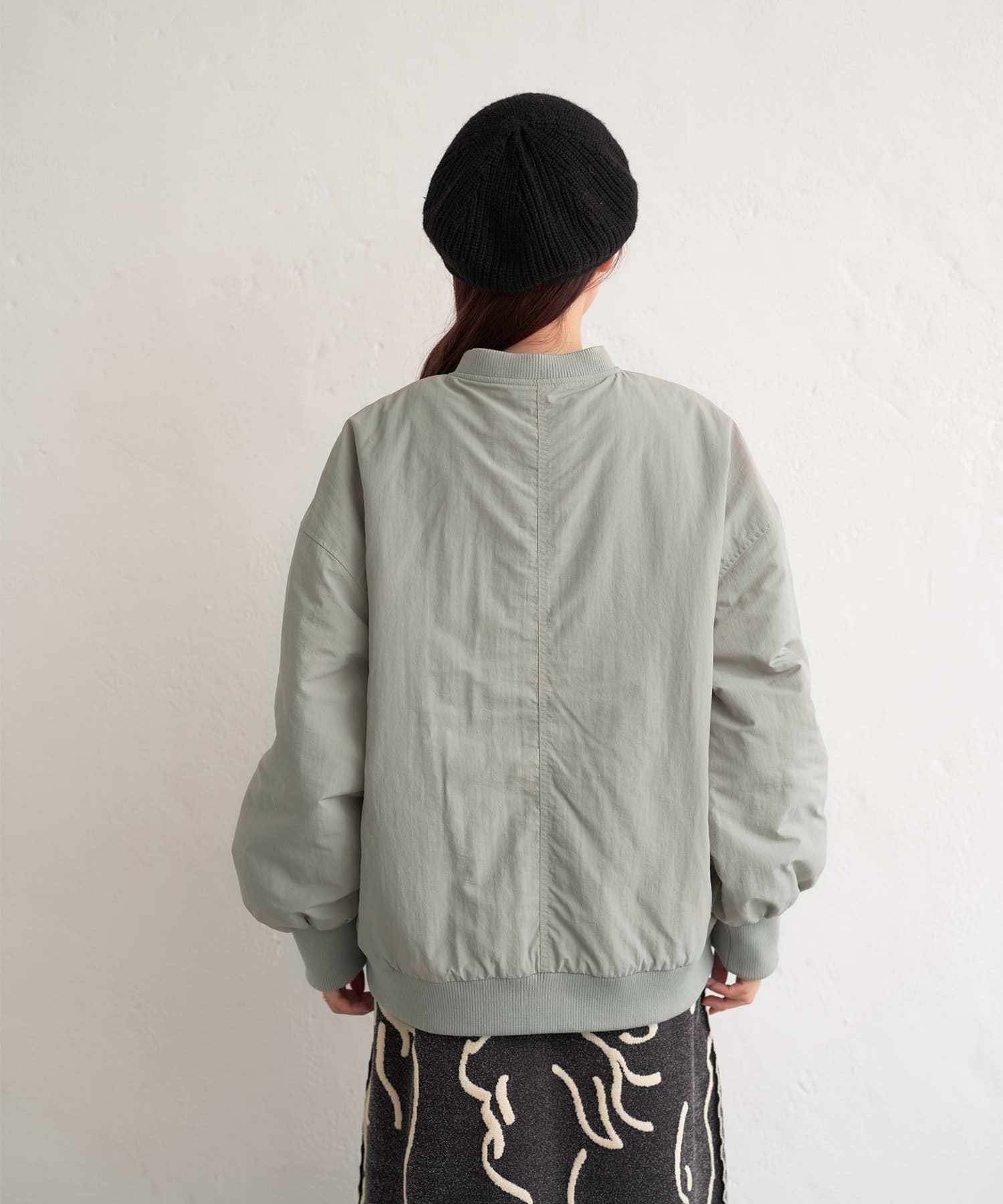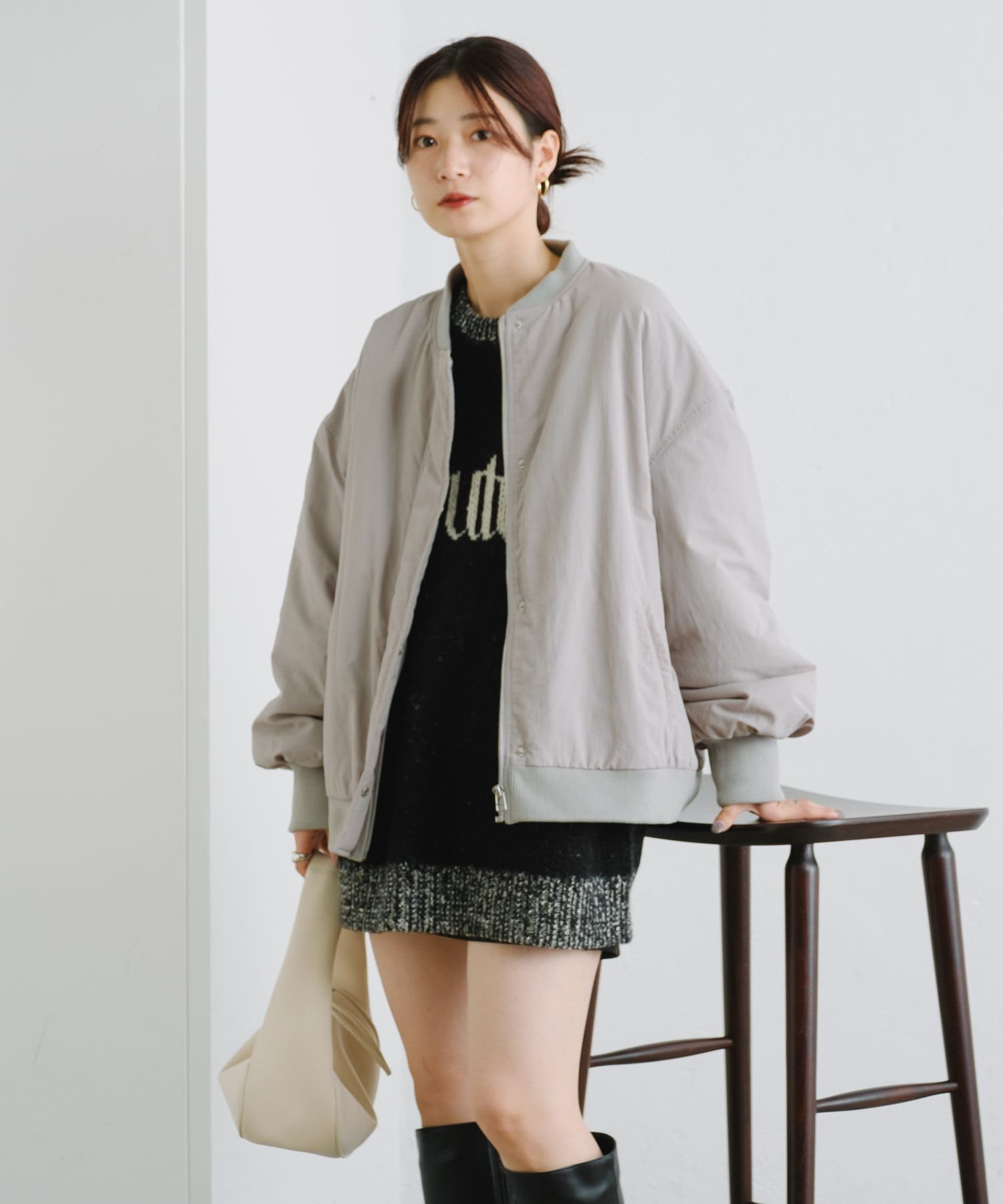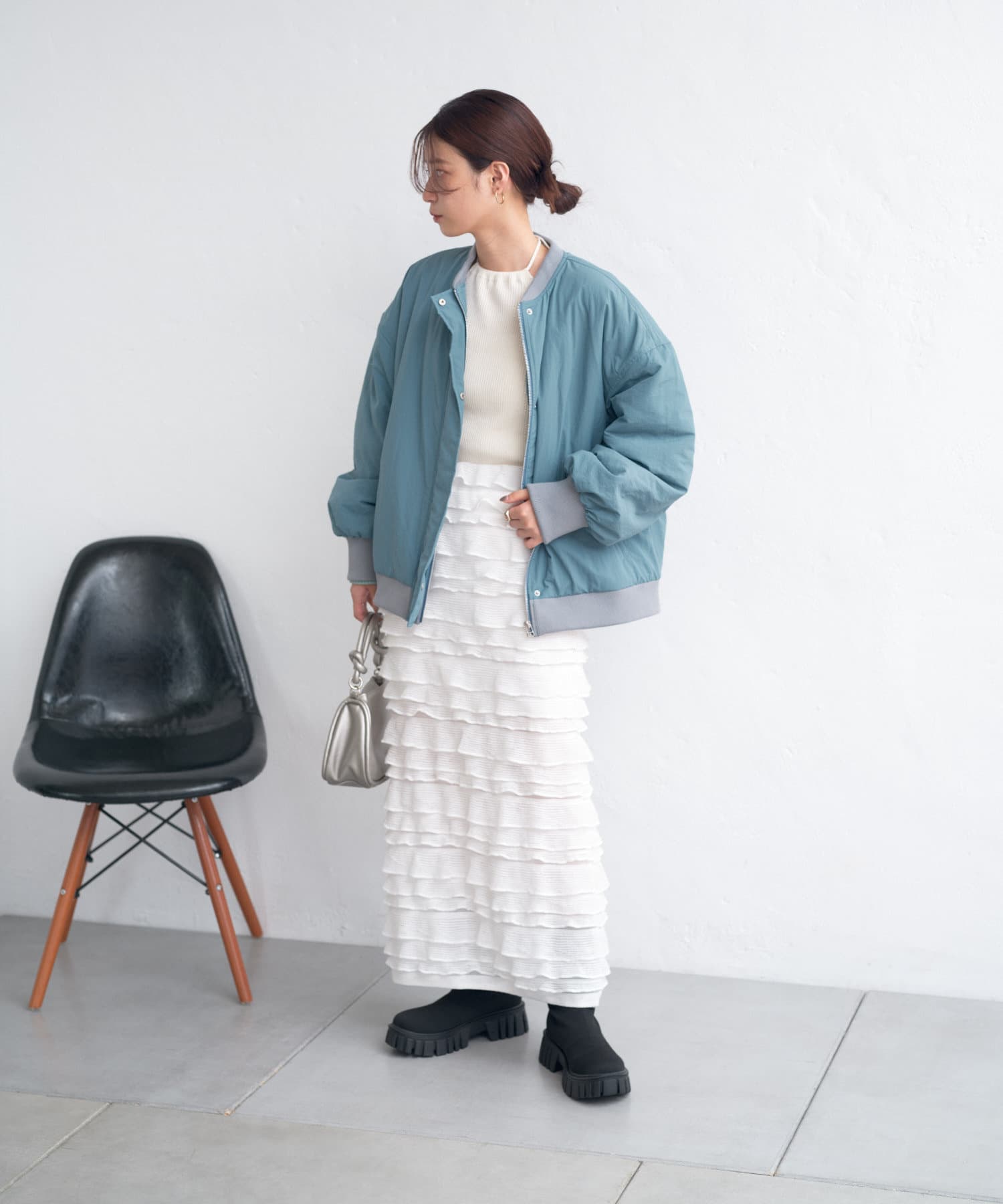 カジュアル見えするアイテムですが、チュール素材などと合わせて女性らしいスタイリングなど合わせによって幅広い見せ方ができるブルゾンです。