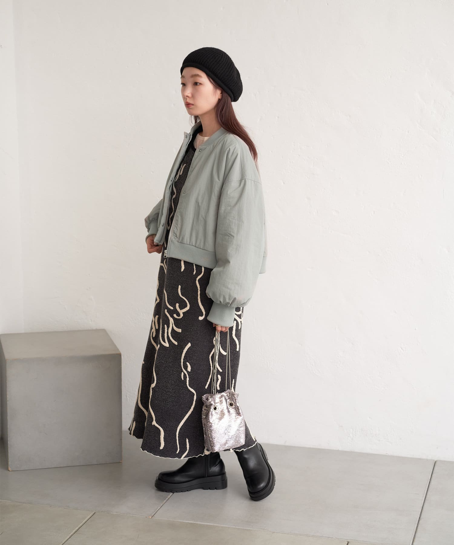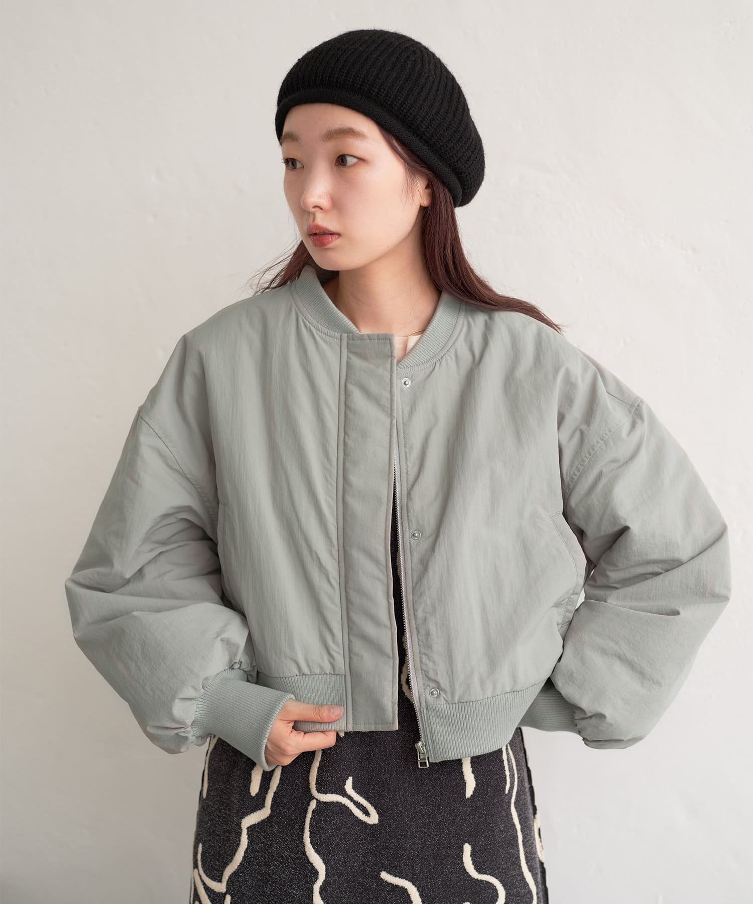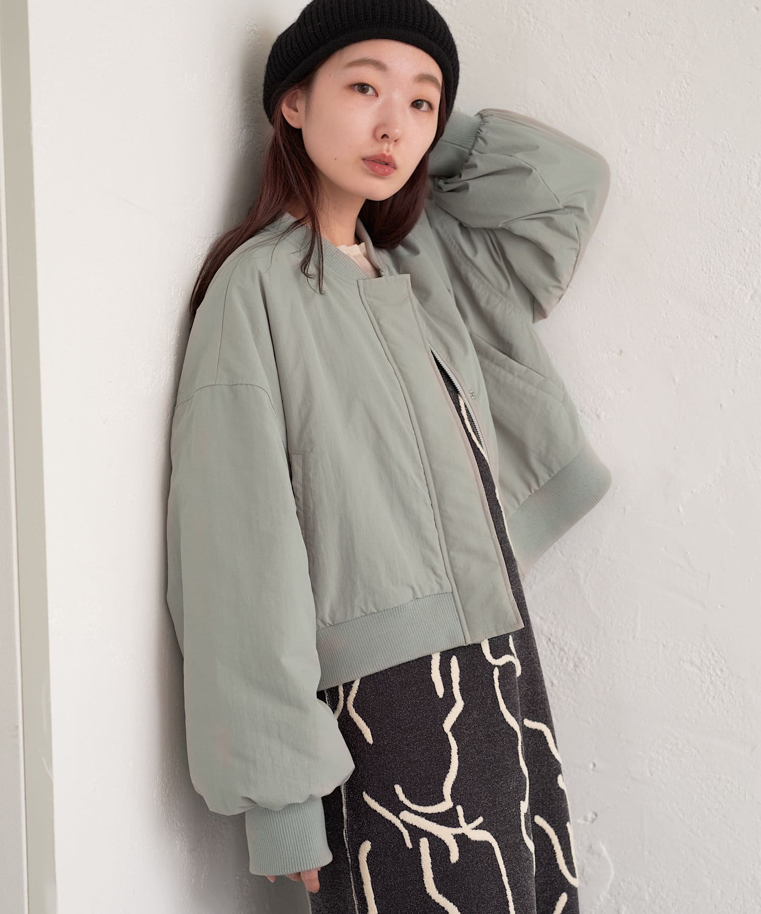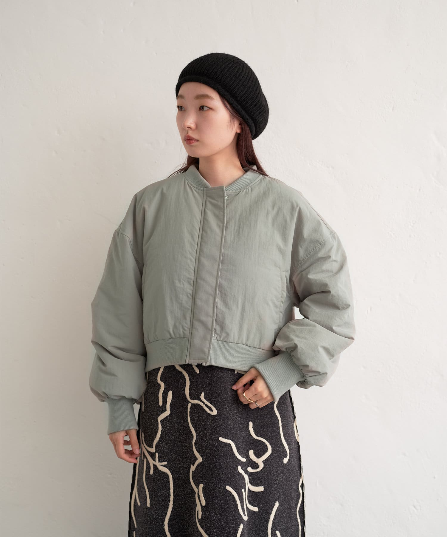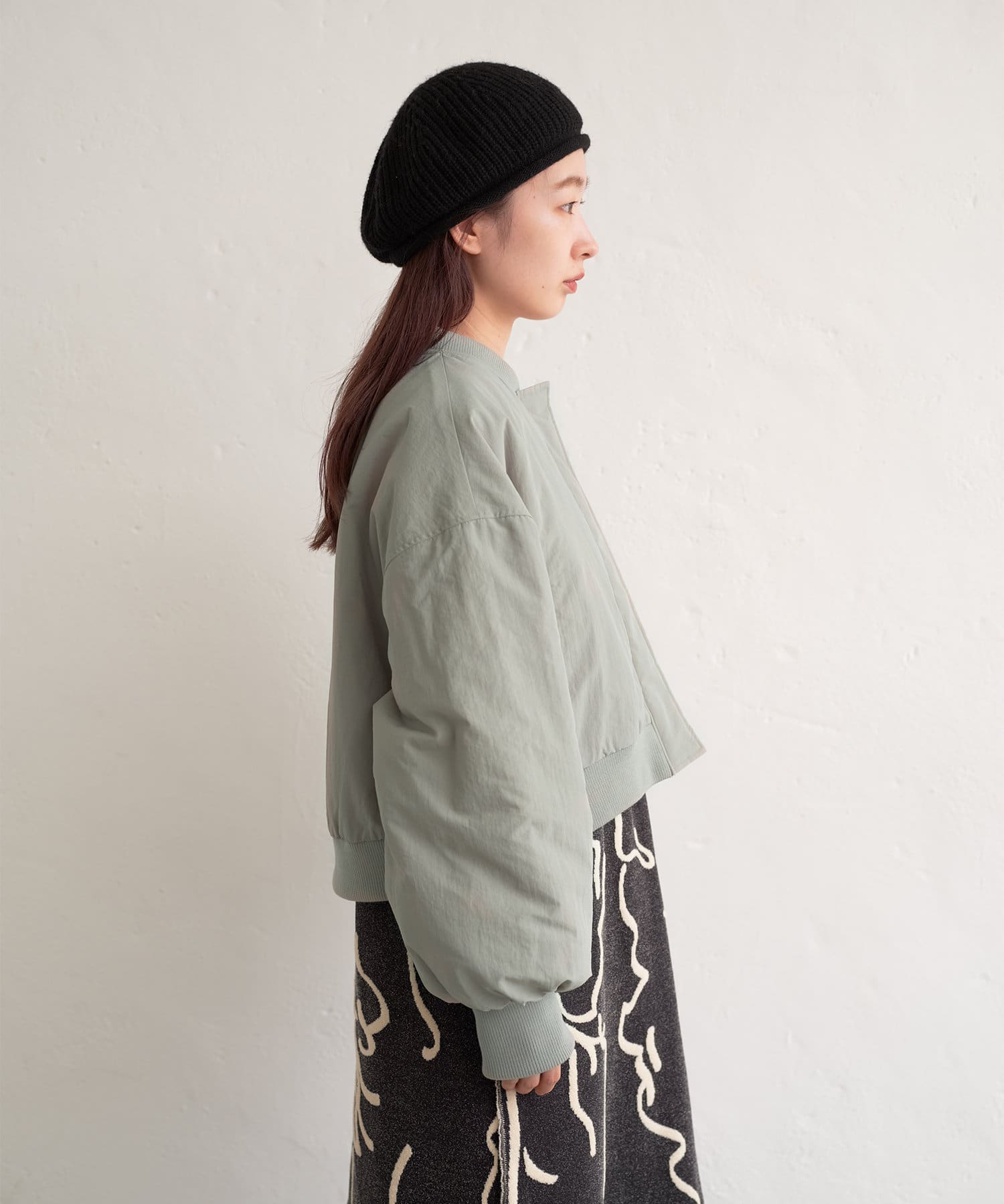カジュアル見えするアイテムですが、チュール素材などと合わせて女性らしいスタイリングなど合わせによって幅広い見せ方ができるブルゾンです。