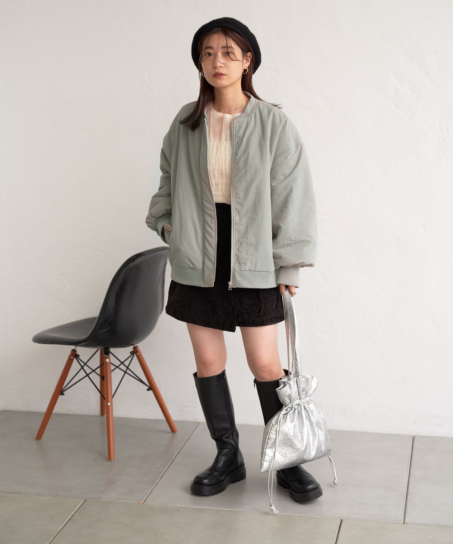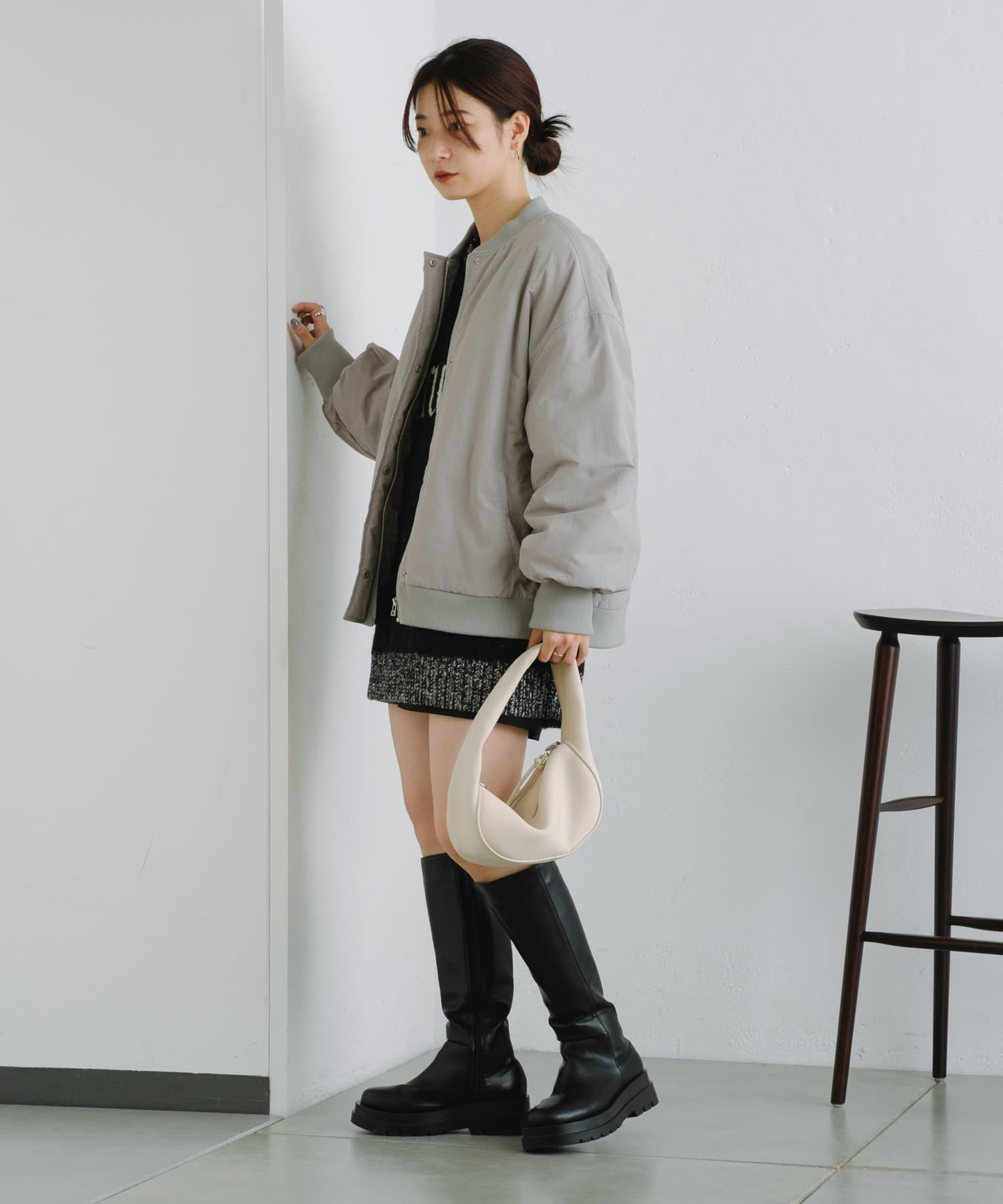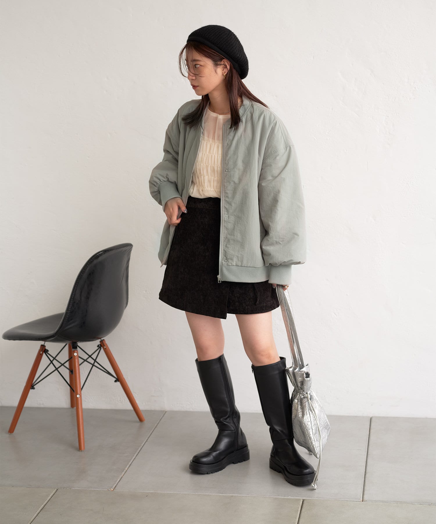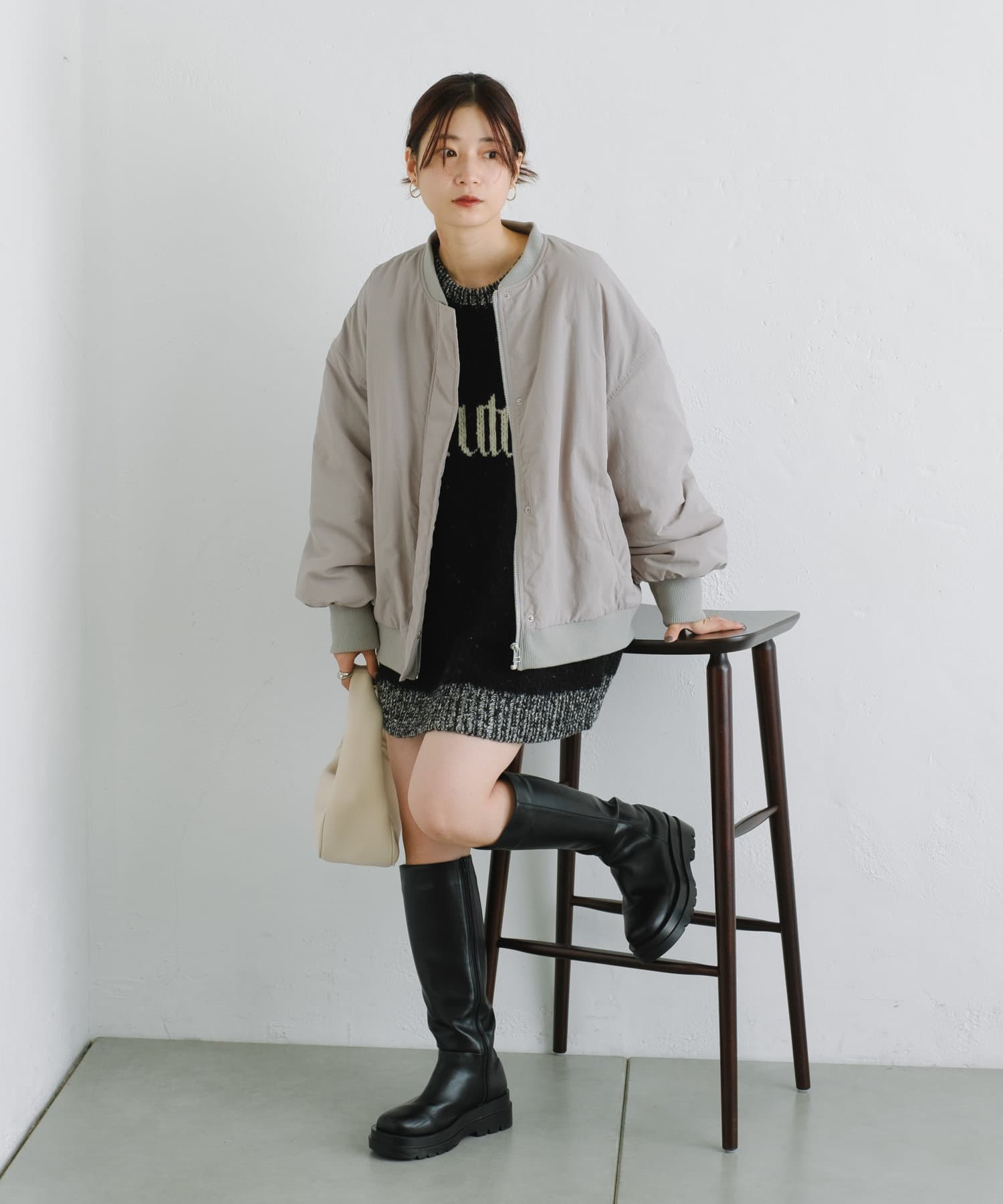 トレンドライクに着回せるアイテムなので、ミニ丈のボトムスにロングブーツで程よく肌見せしたり、