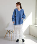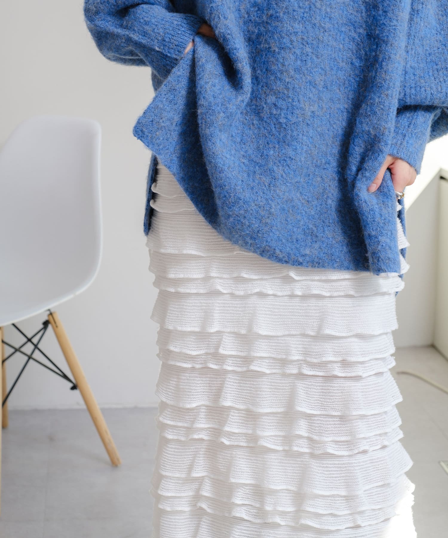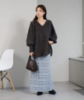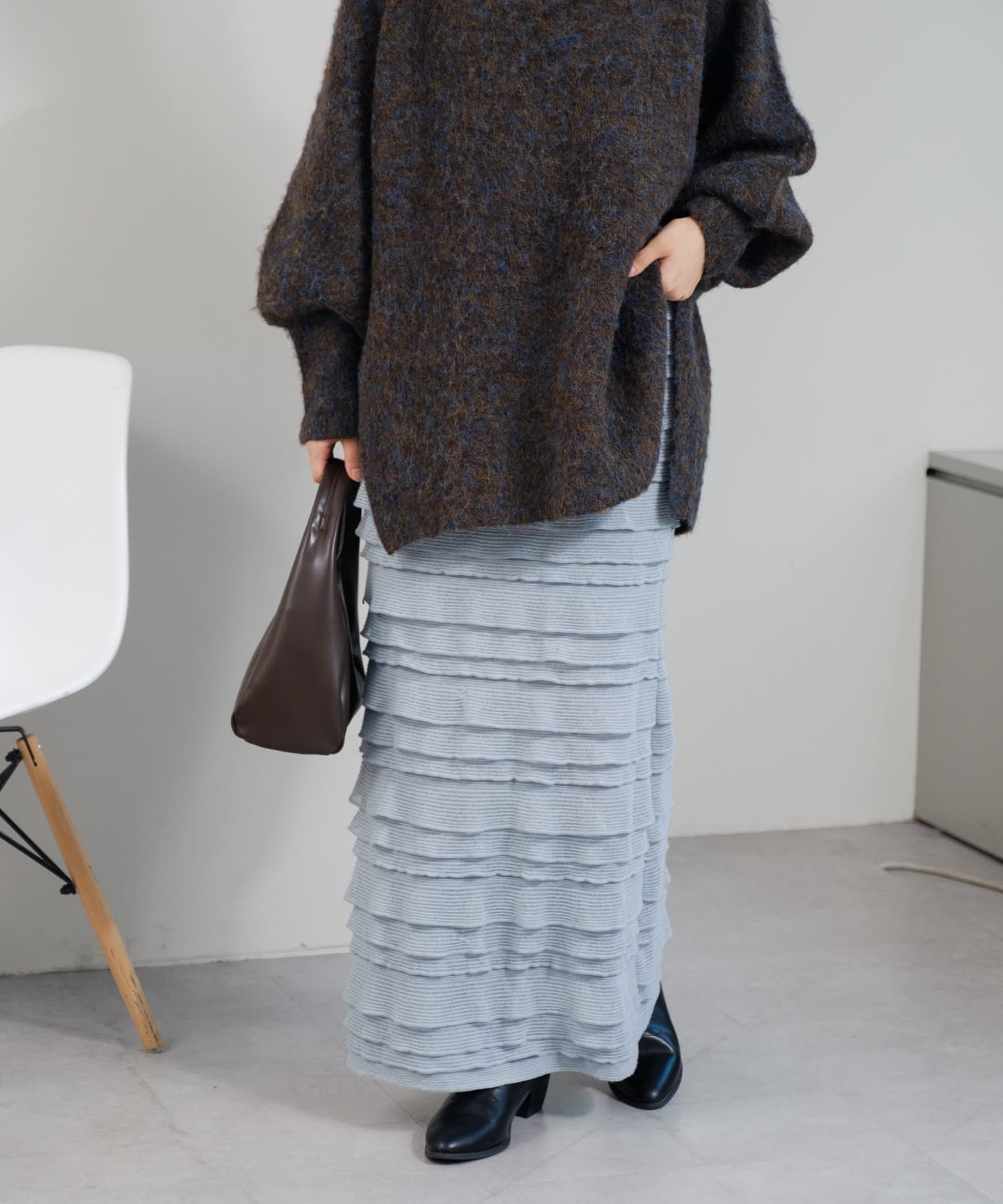 また、店舗で店員さんにおすすめしてもらったハーフジップニットとの合わせが、トップスをアウトで着てるのにスカートのラインで着ぶくれを回避できて、とても可愛かったです!横からのシルエットもきれいで、合わせて着たいなと思いました。