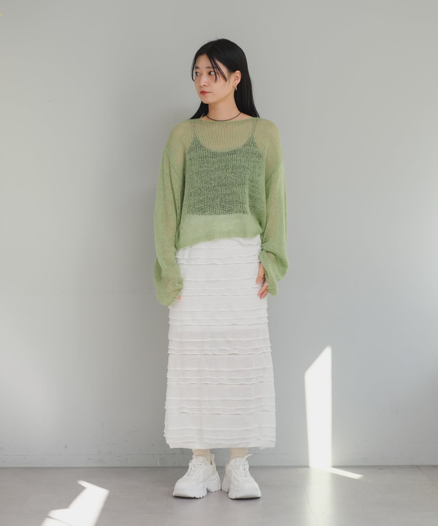 購入場所:パルクローゼット私痩せた?って錯覚するくらい細見えするスカートです。気に入りすぎて2色買いしました。カジュアルにも甘めにも着られてかなり便利、膝下からは透けます。