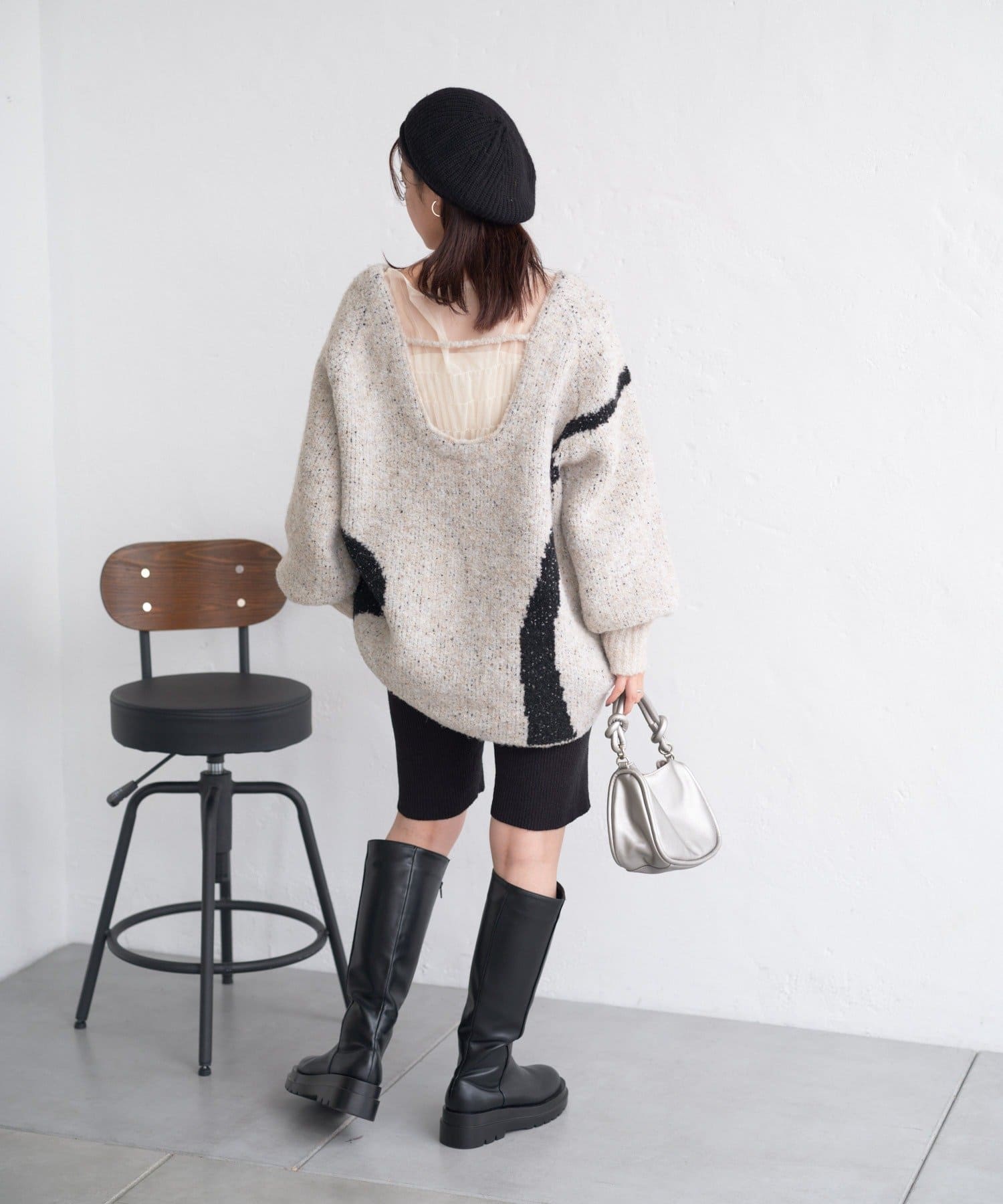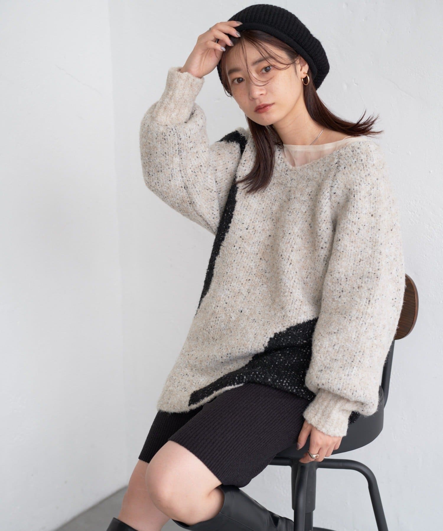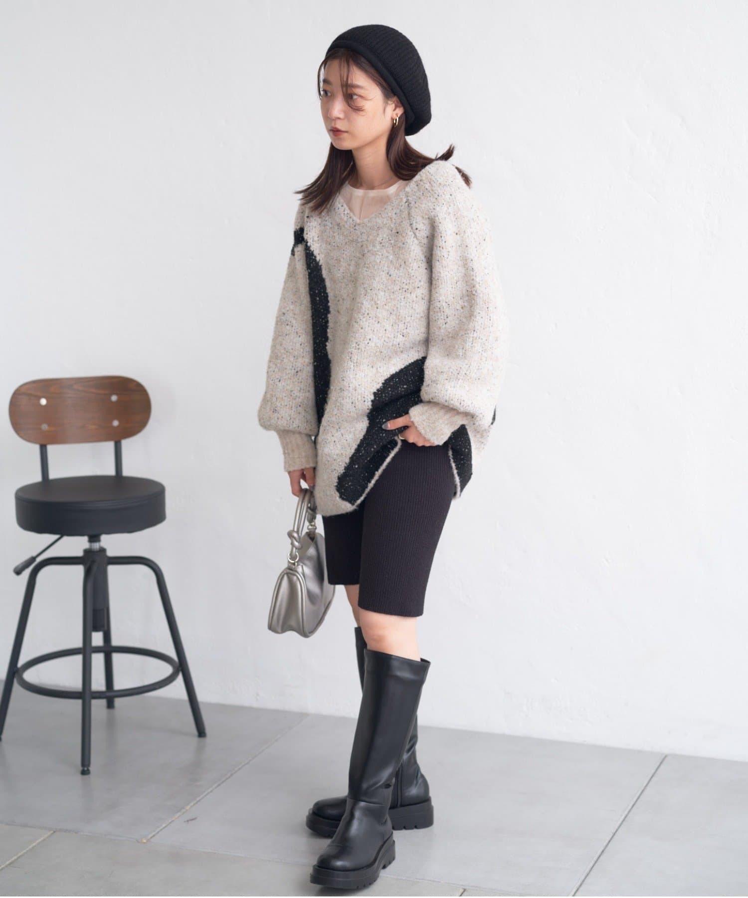 オーバーサイズのブラウスやスウェット、シャツドレスとのスタイリングがおすすめです。