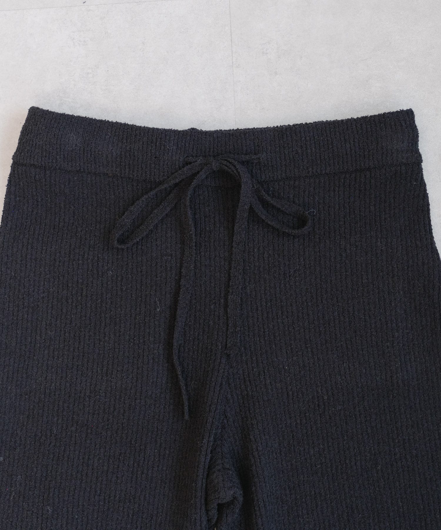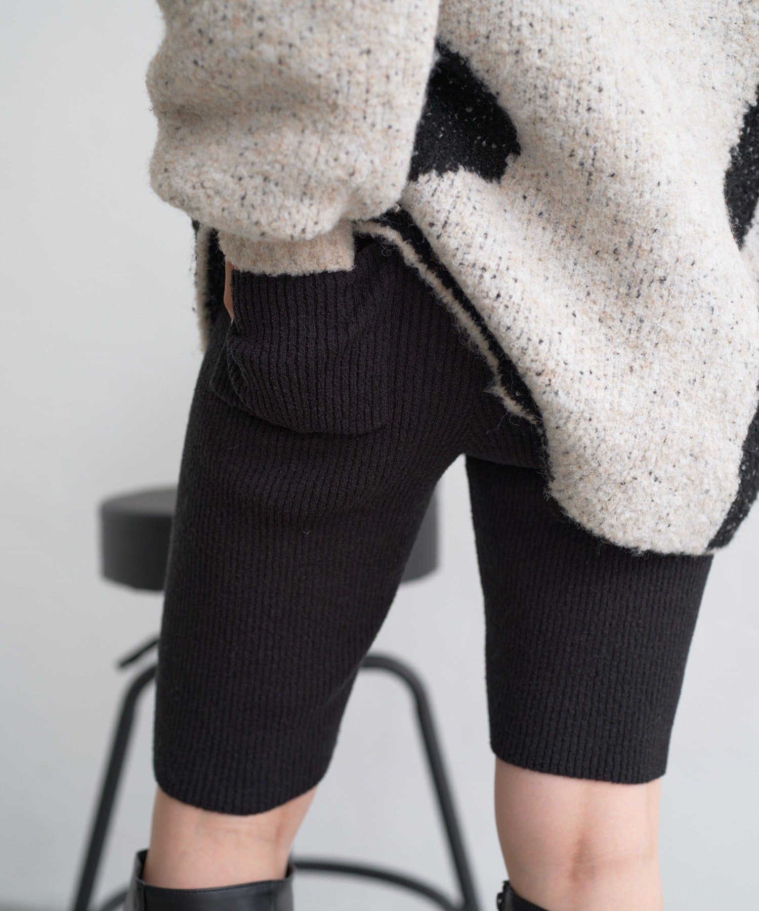 細いリブ地でトレンド感が出せるニットバイカーパンツ。
