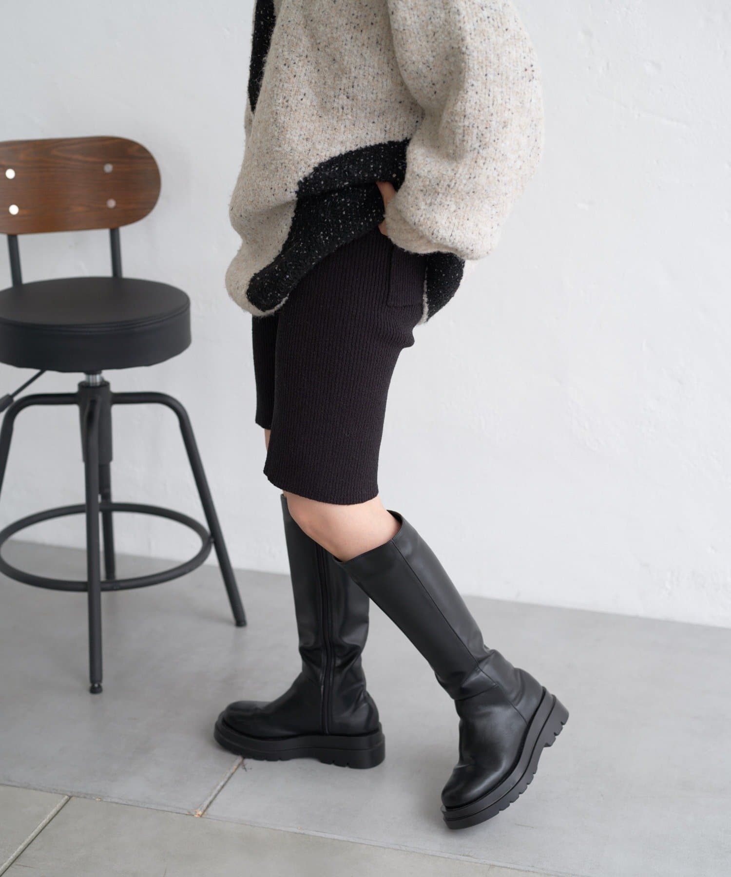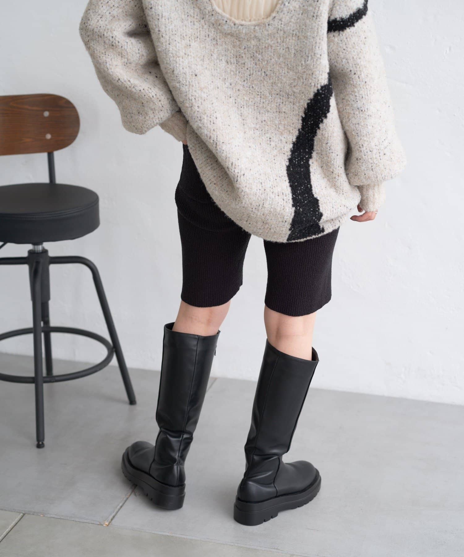 足元はボリュームあるブーツやロングブーツとの合わせがバランスよく着ていただけます。