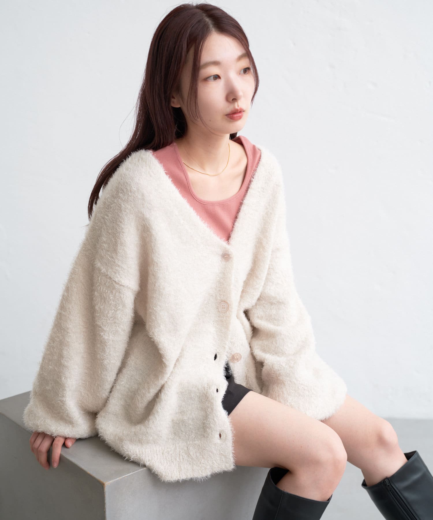 ショートとロングの2サイズから選べるシャギーカーディガン