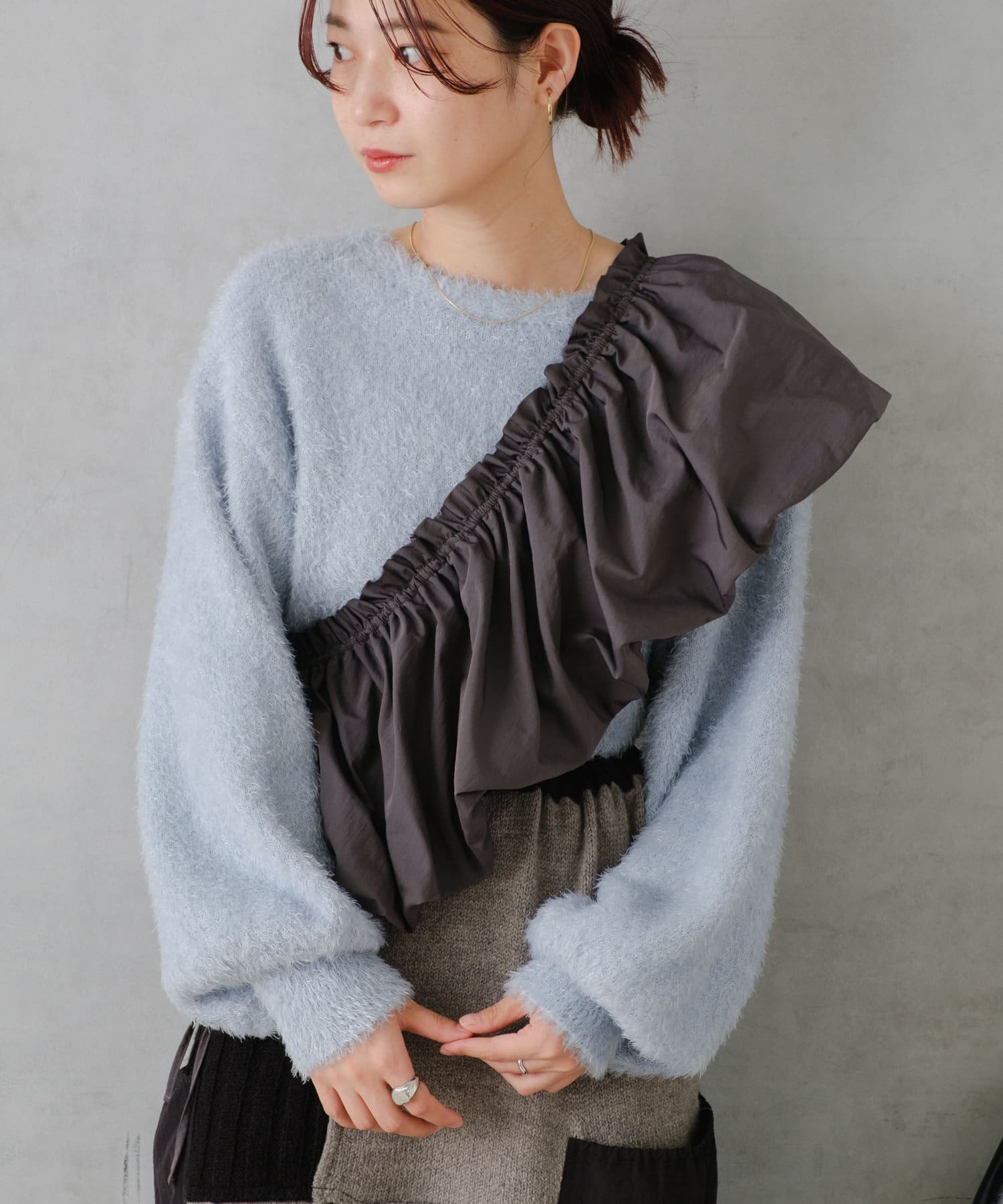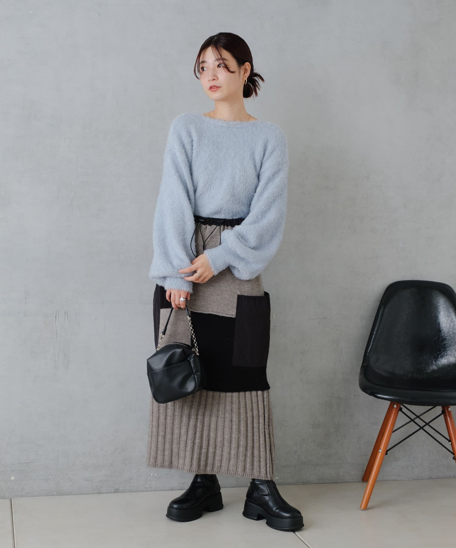ボリュームがあるのでミニボトムはもちろん、細身のパンツやタイトスカートが相性抜群。