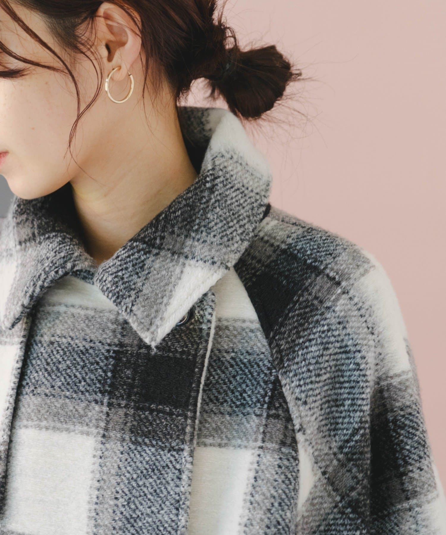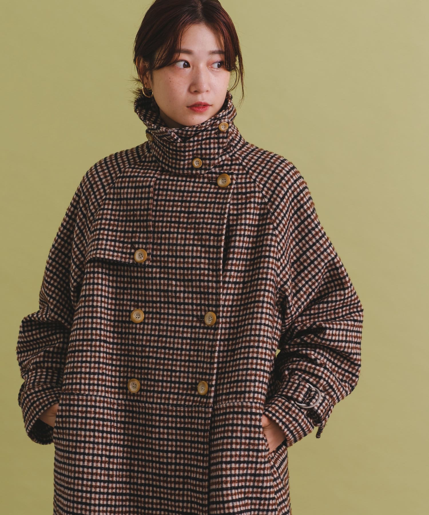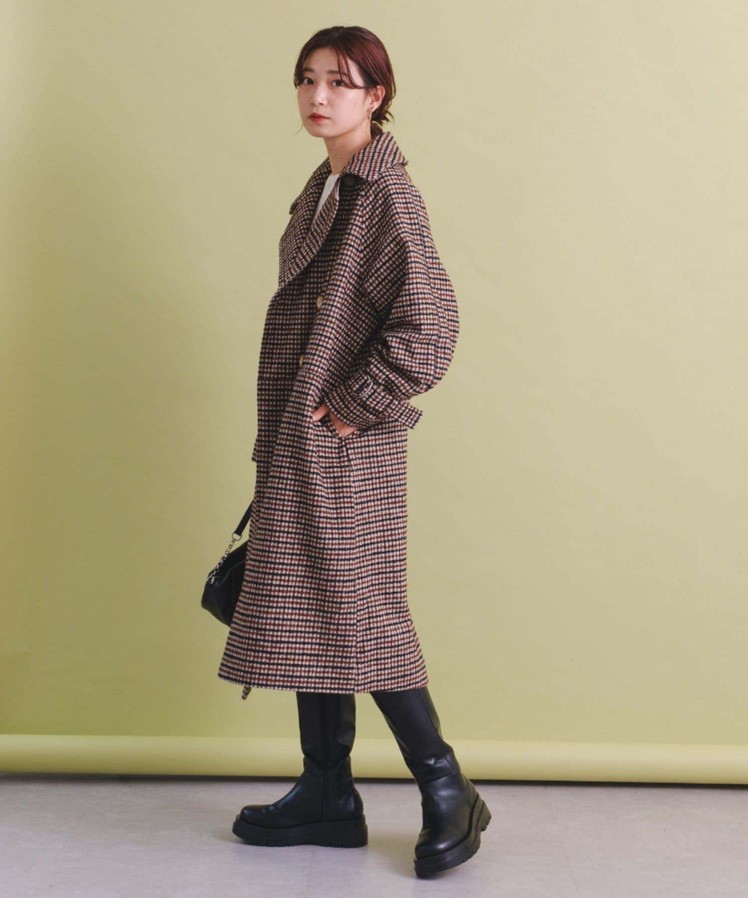 大き目のボタンやベルトがアクセントになっているの閉めて着るのもおすすめです。