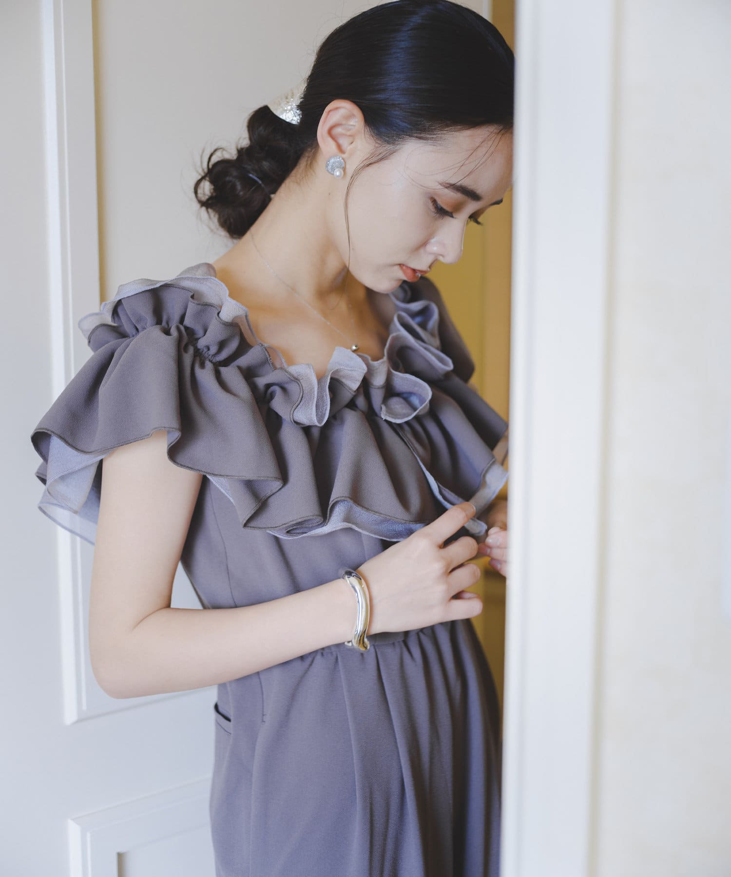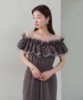 【オケージョンドレス/結婚式】Tulle layered bare dress