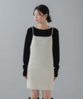 キャミワンピースはゆるめのニットと合わせてスカート風として着たり、デニムと合わせても。