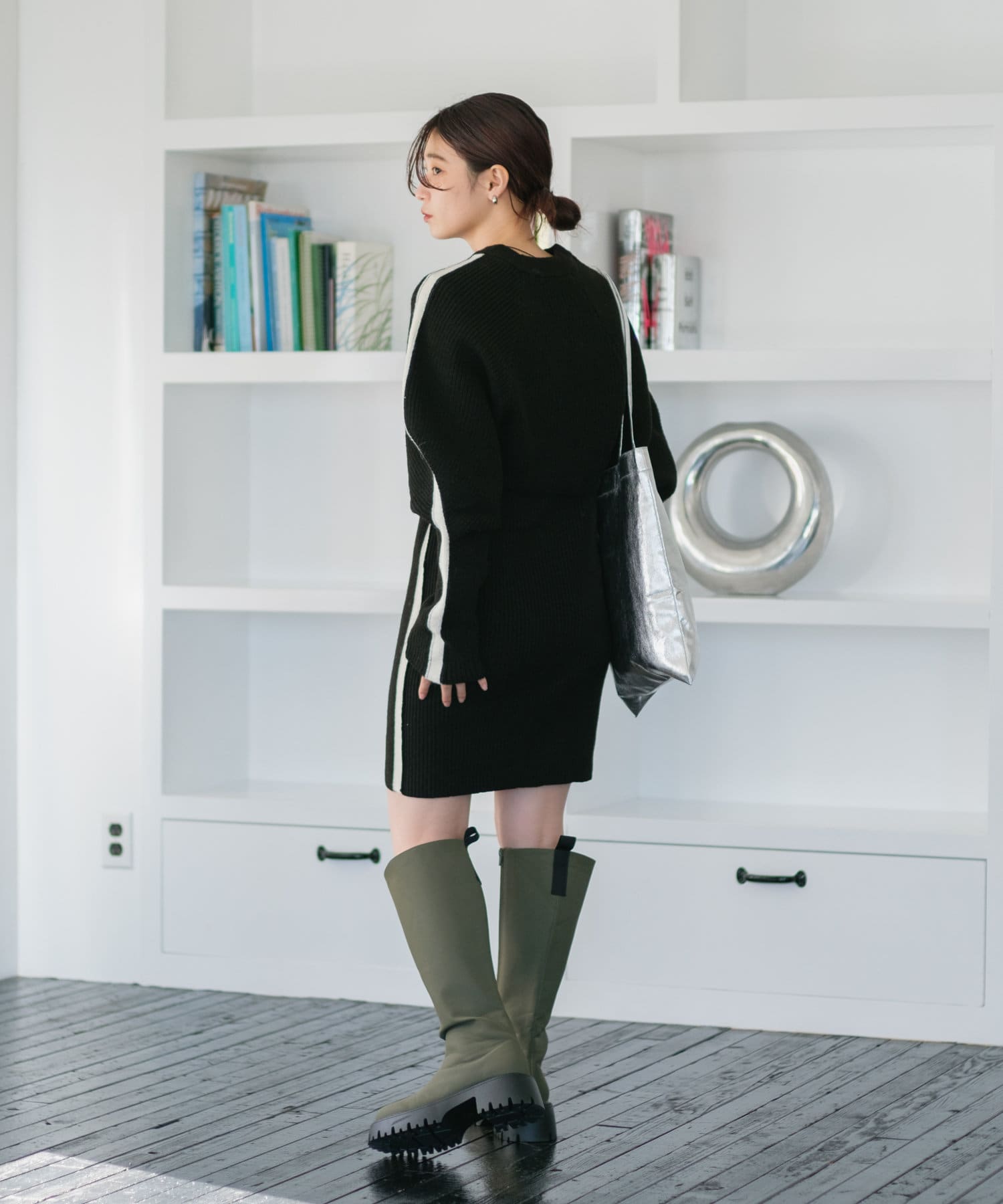 タイトめなシルエットが女性らしさを引き立てます。