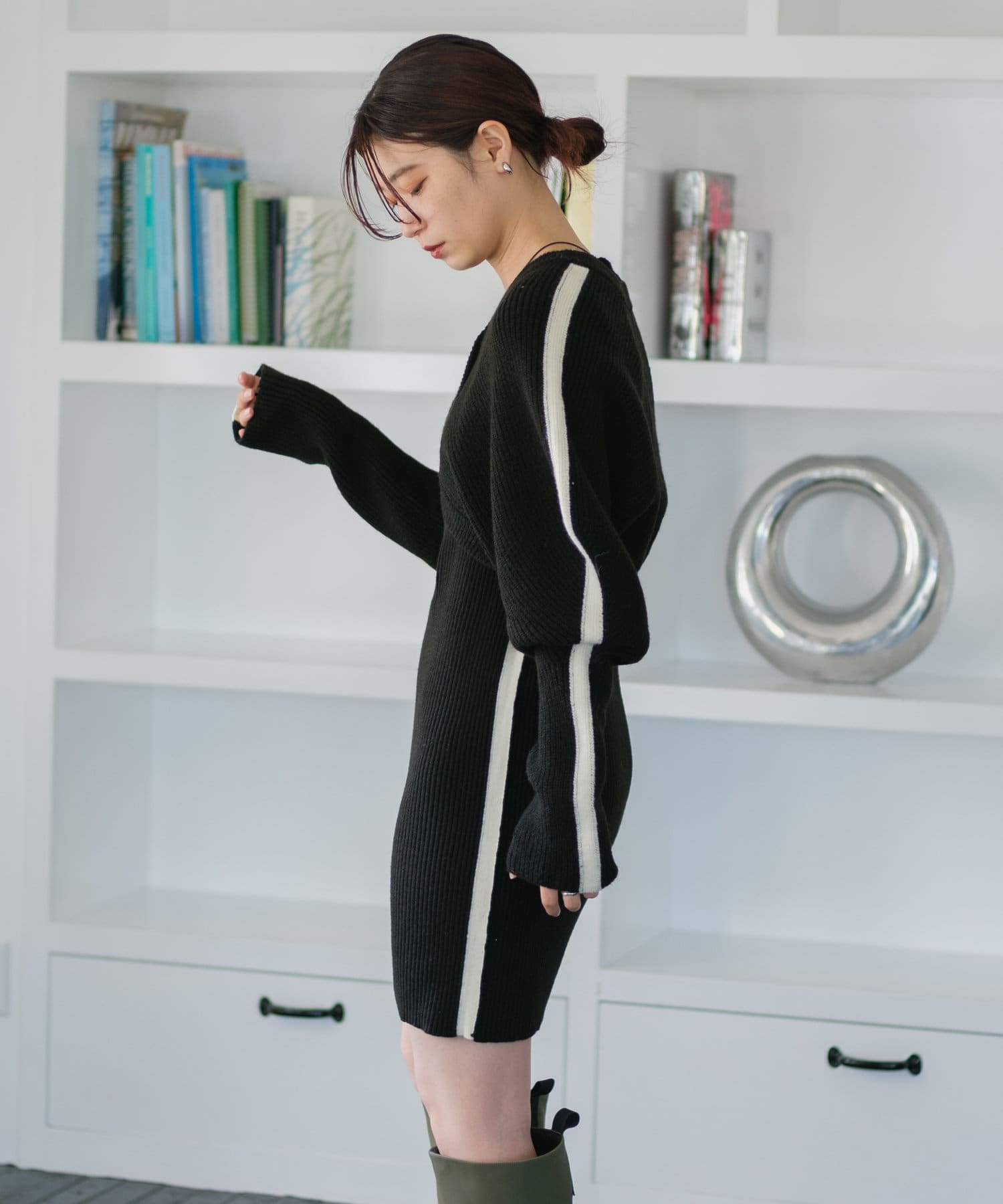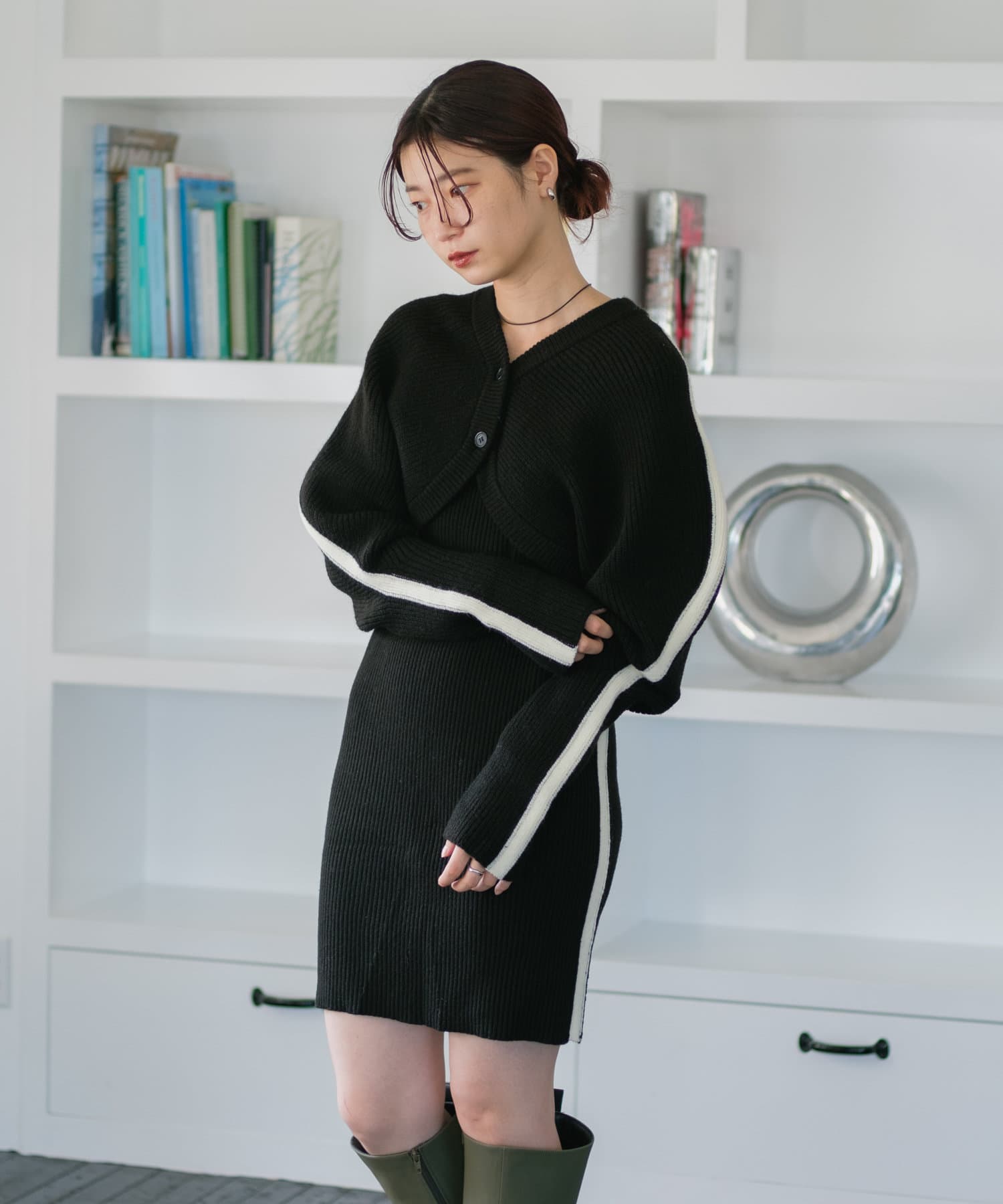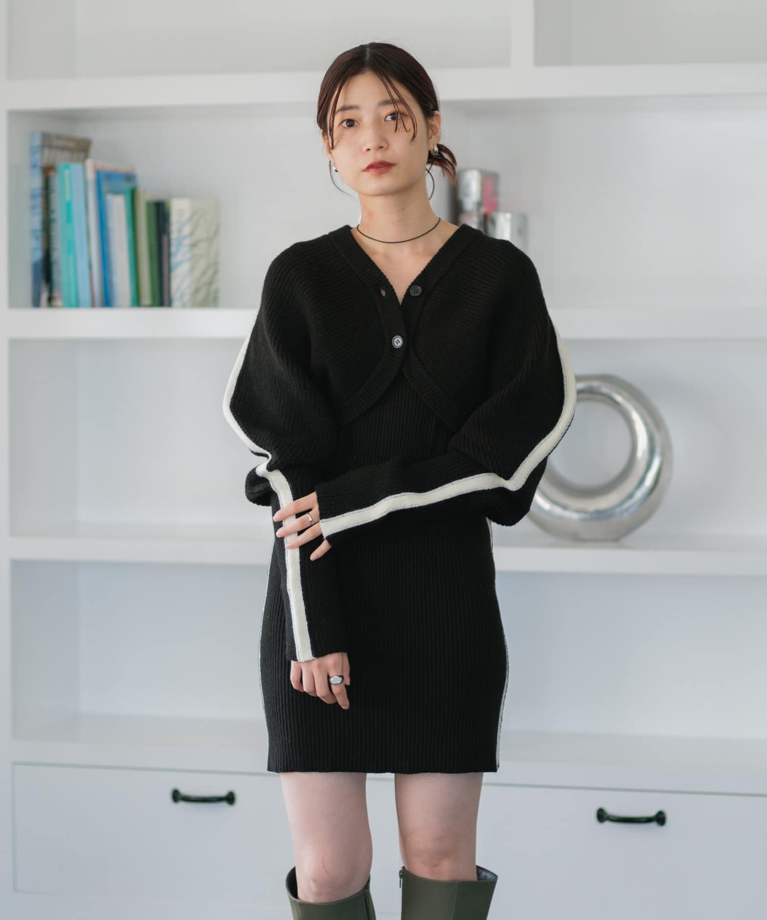 【Kastane】ラインニットカーデ×ミニワンピSET