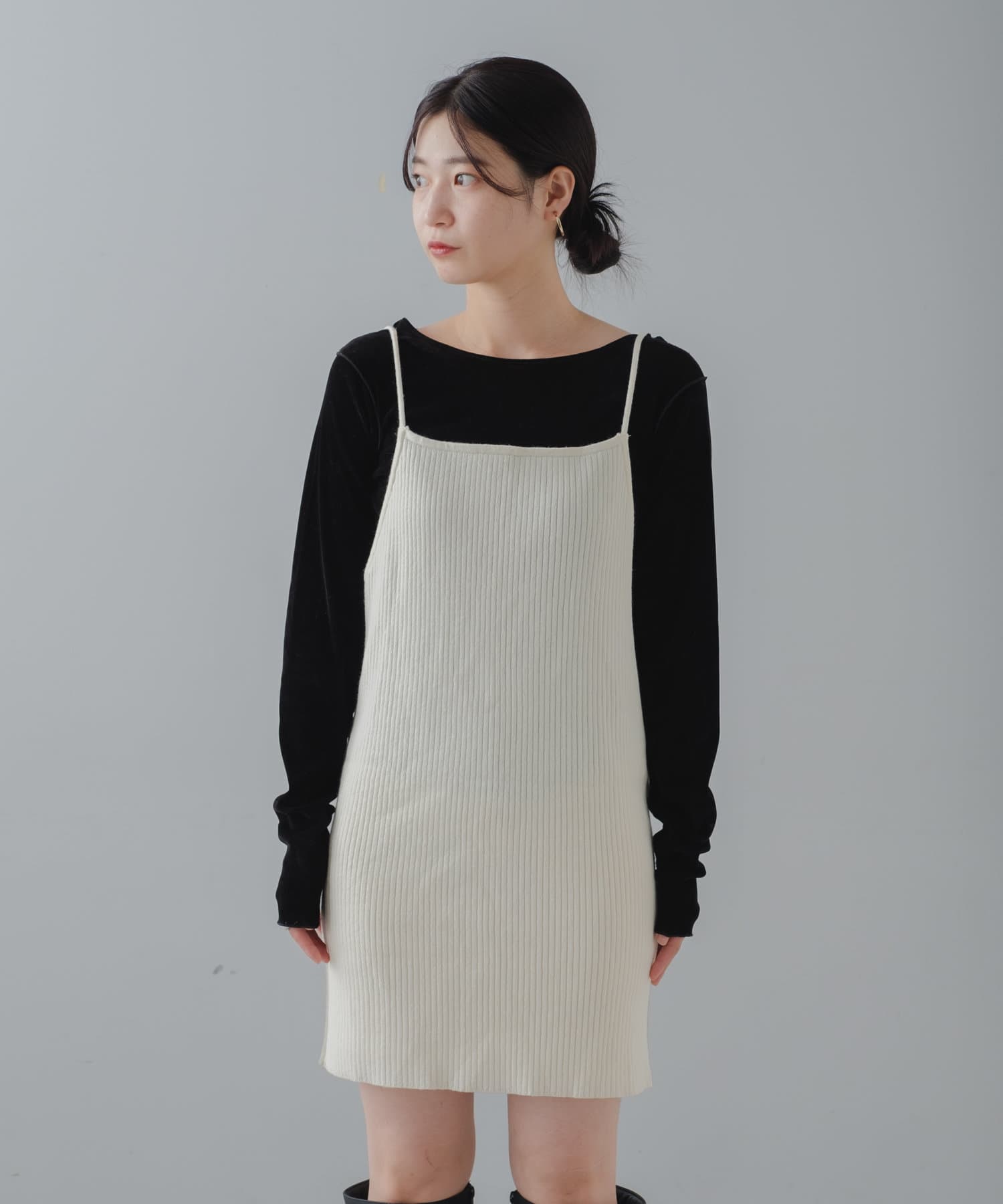 キャミワンピースは膝上で着用可能。