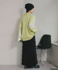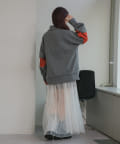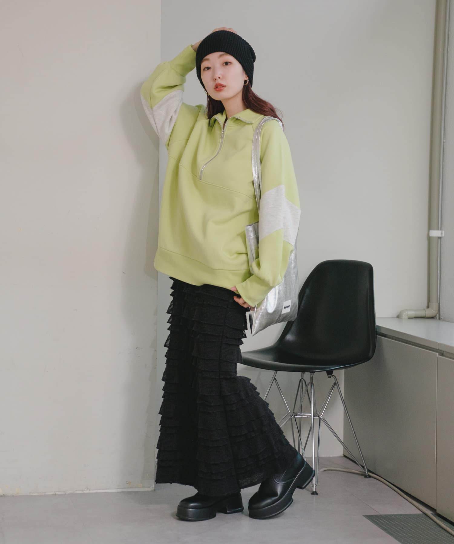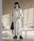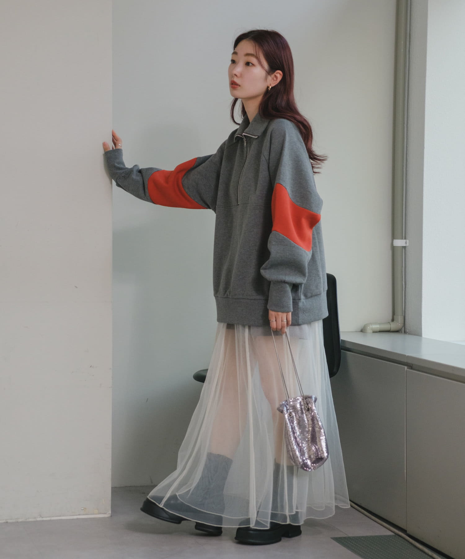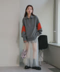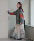 Iラインスカートやチュールスカートなど女性らしいアイテムと合わせたミックススタイリングがオススメ。