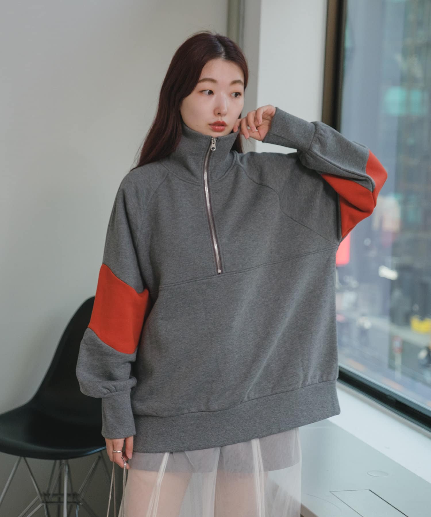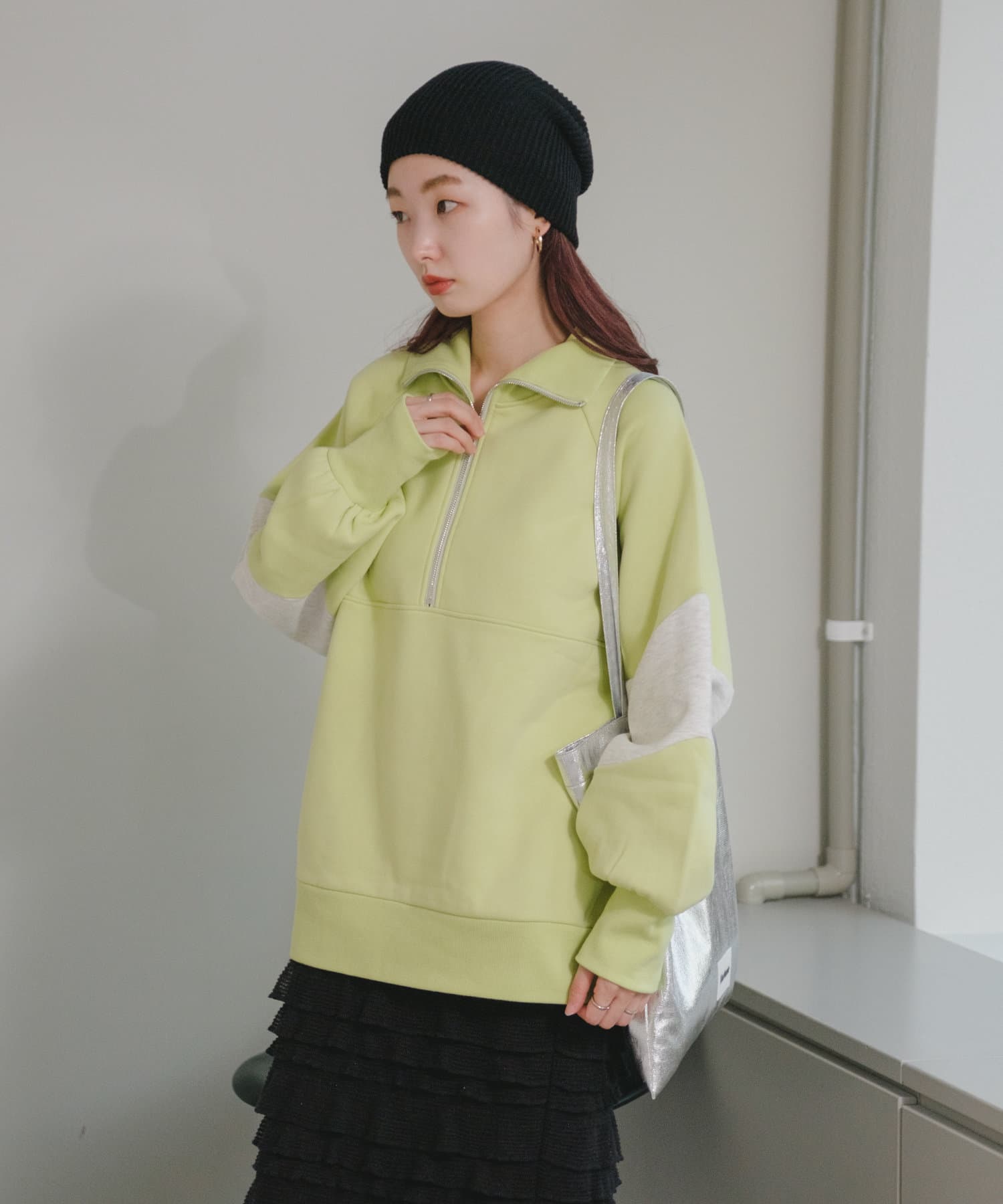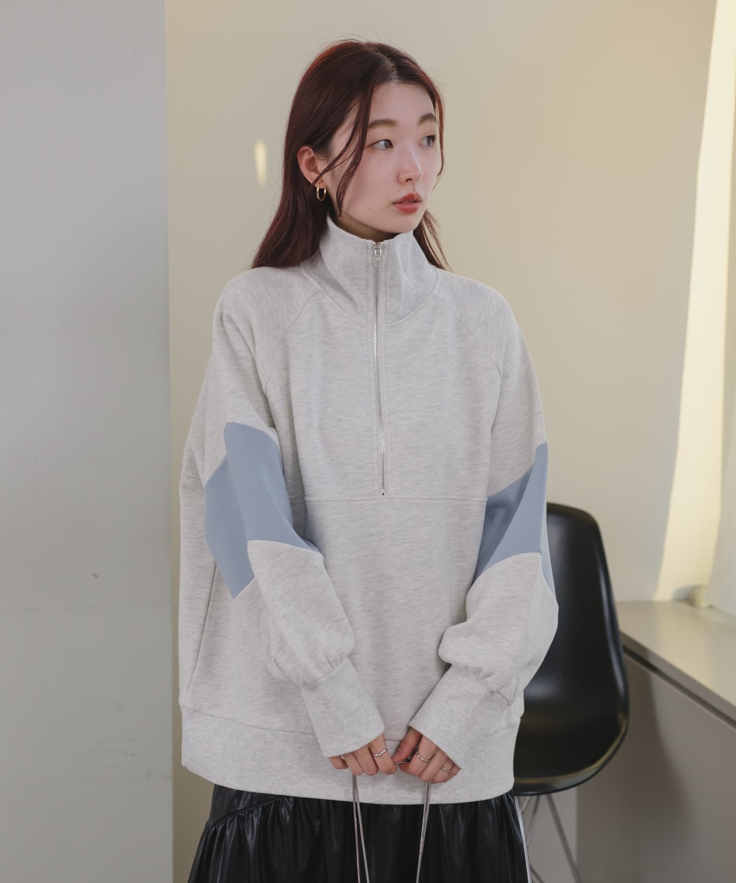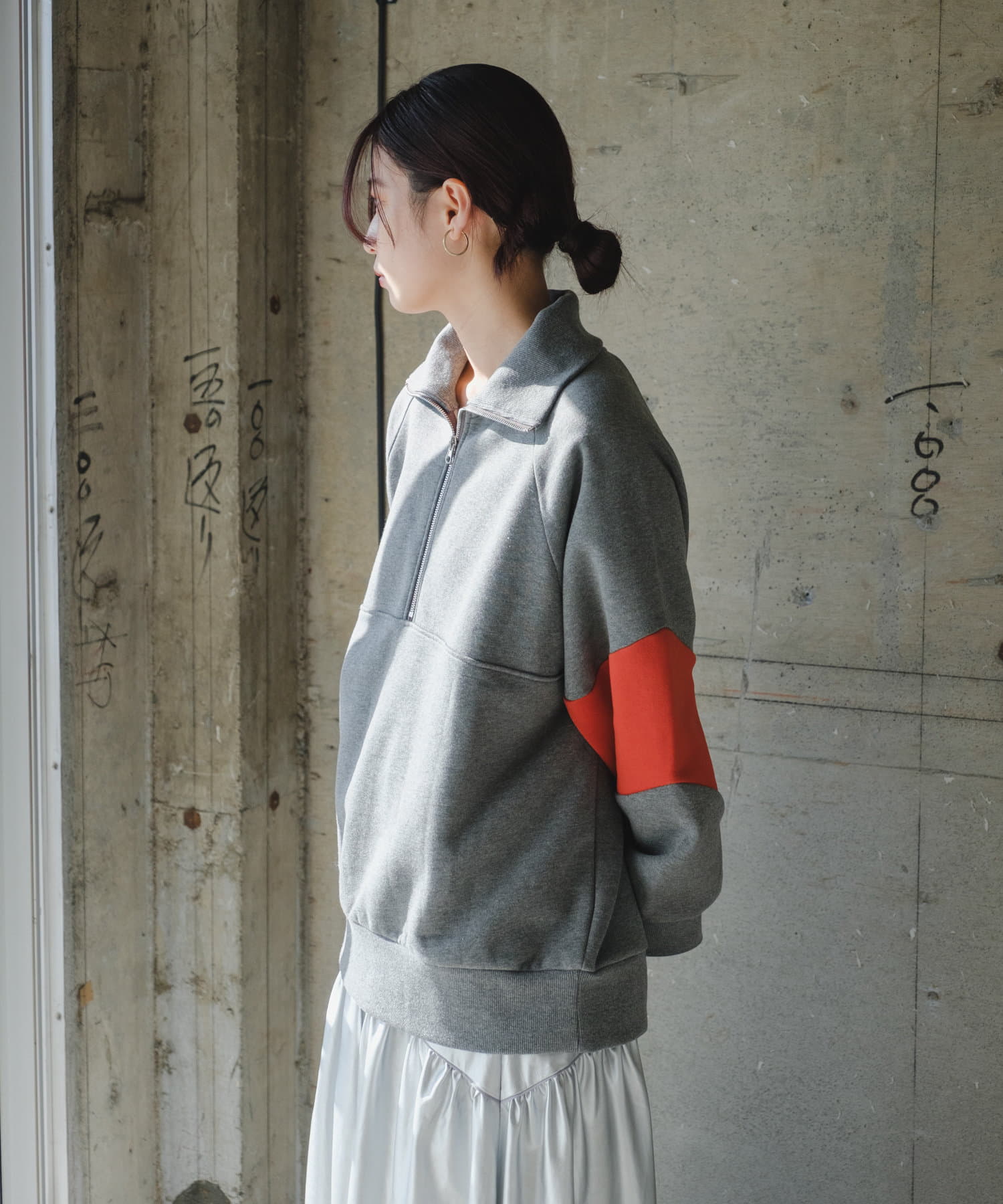 ハーフジップのスウェットでスポーティな雰囲気に仕上がるスウェットが登場。