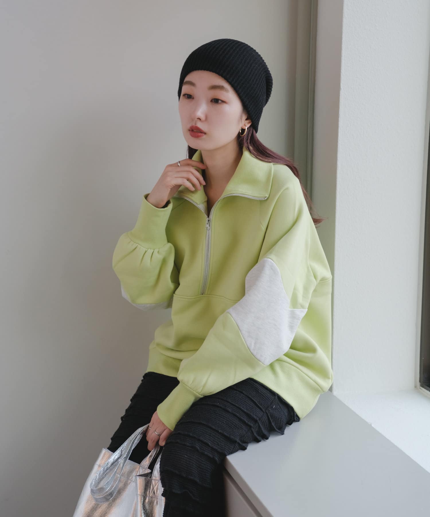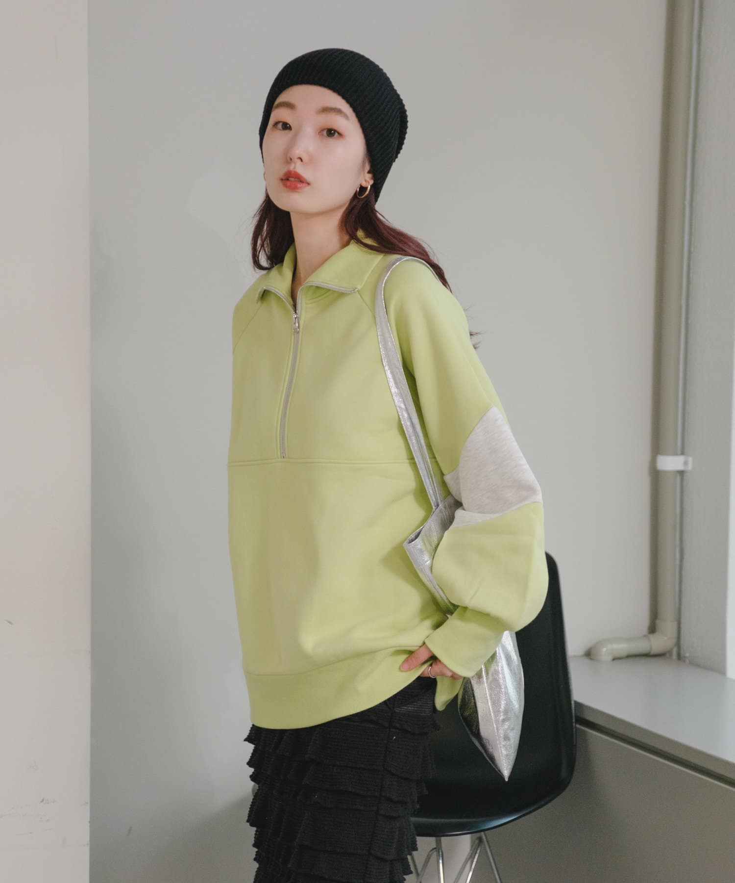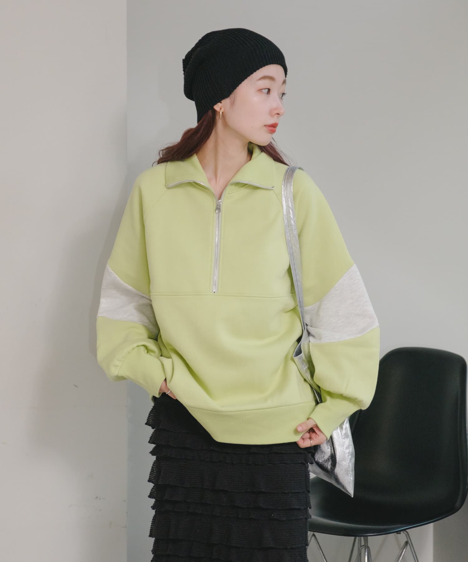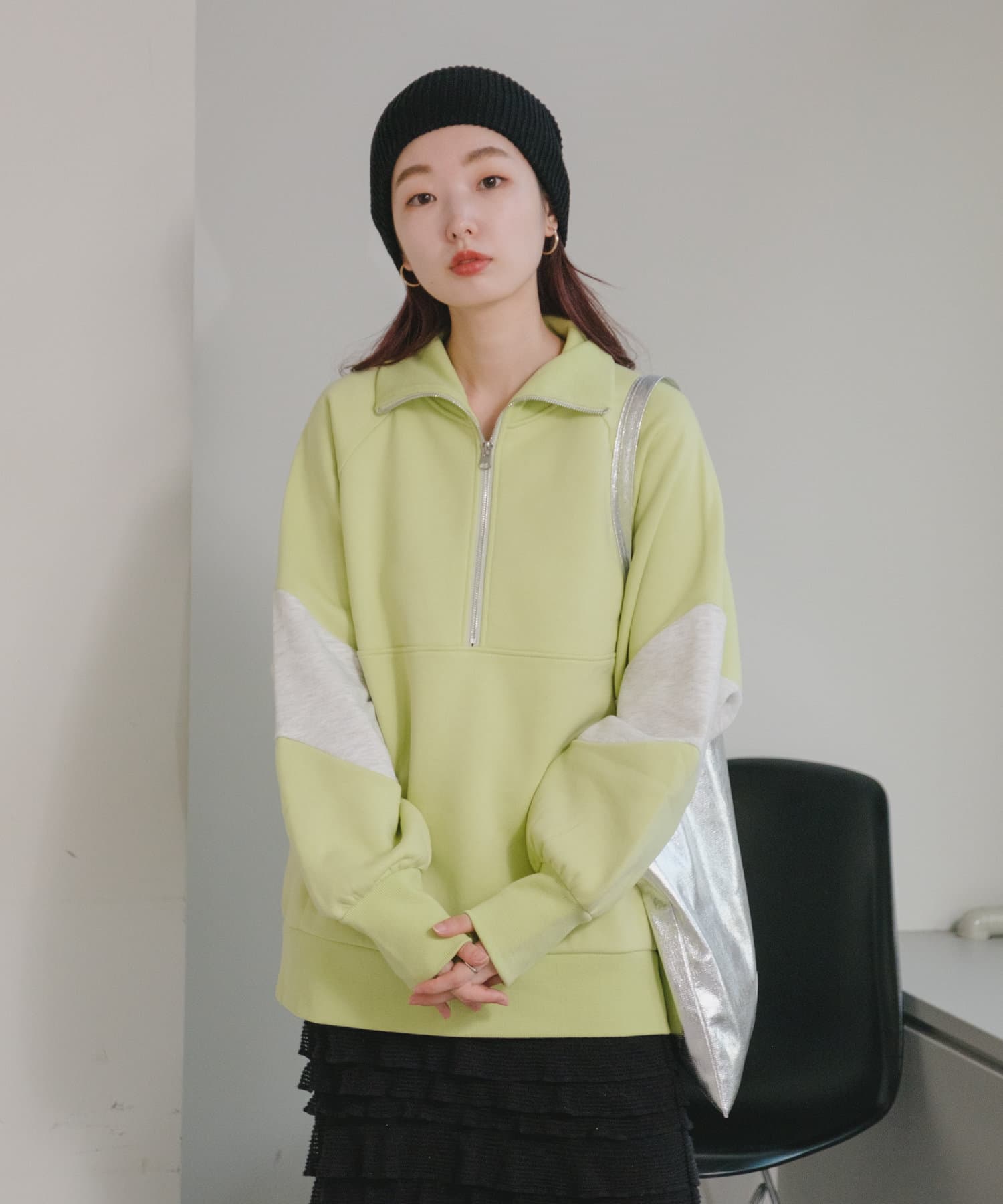 ハーフジップのスウェットでスポーティな雰囲気に仕上がるスウェットが登場。
