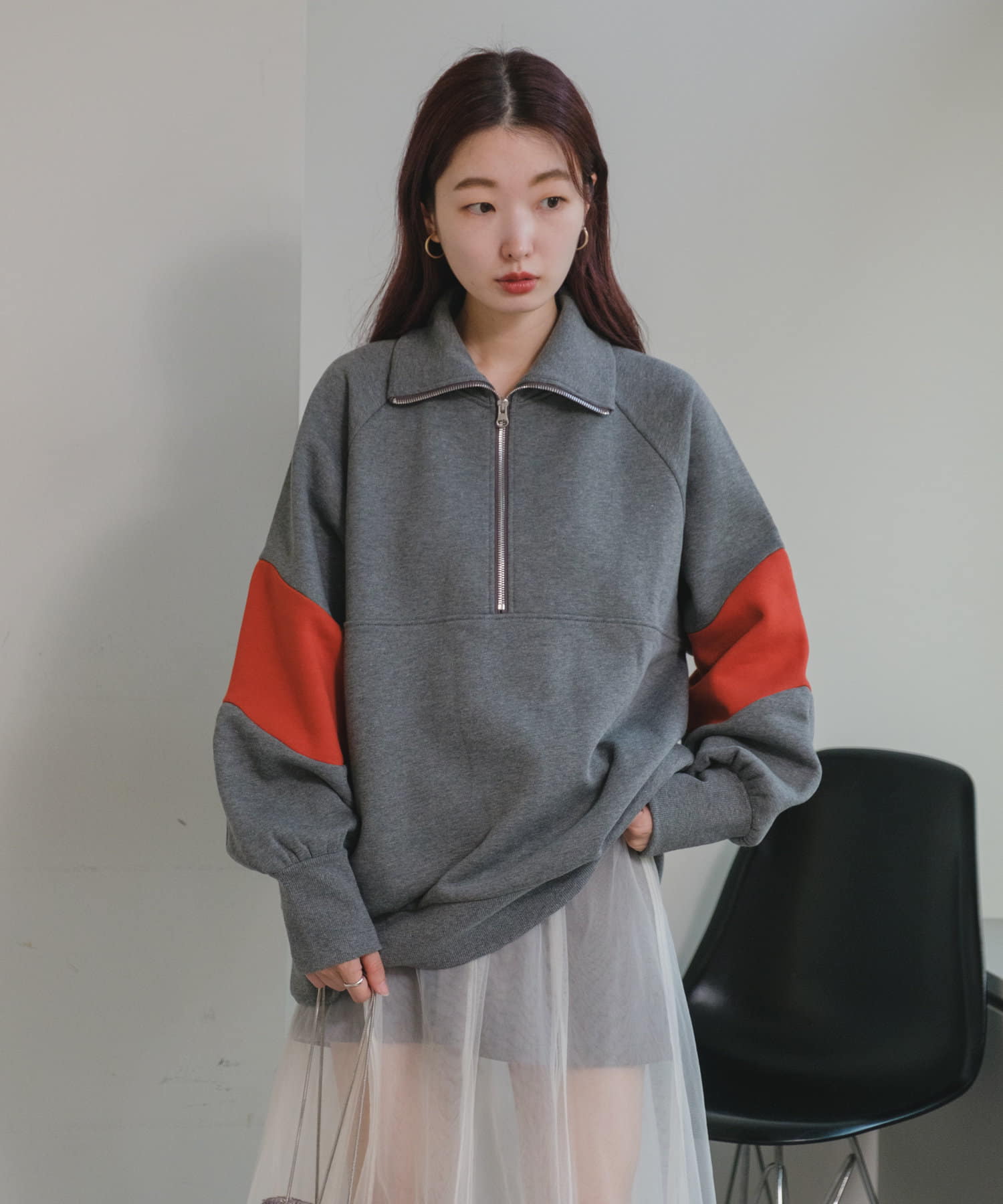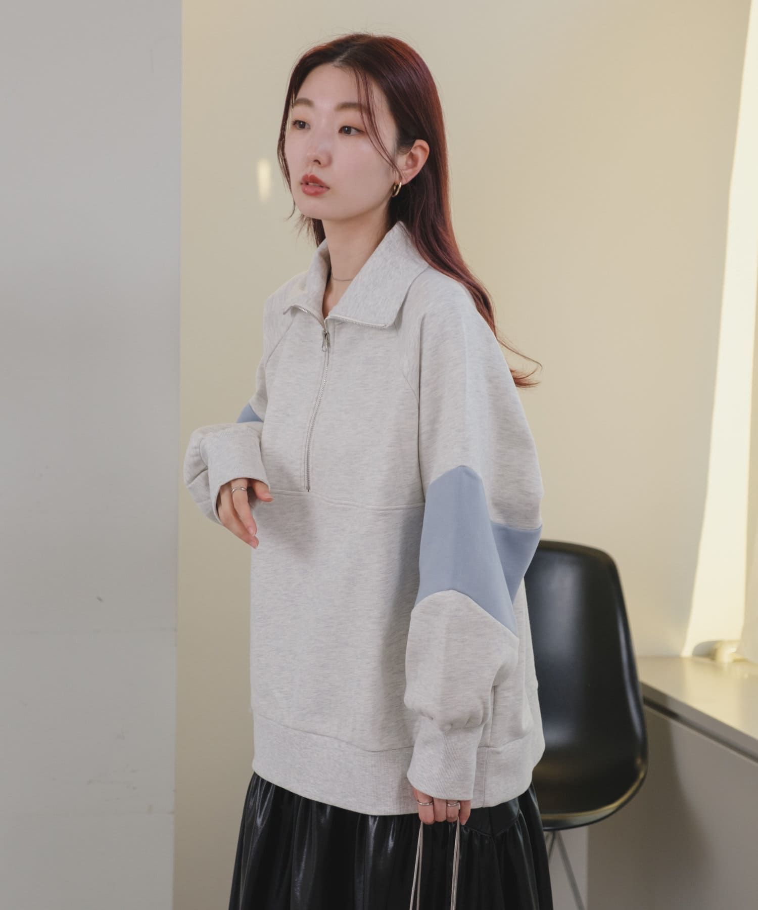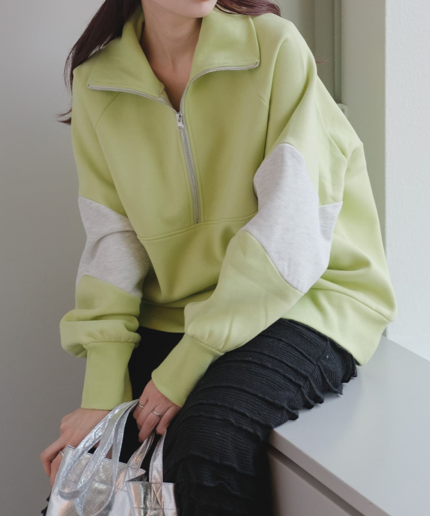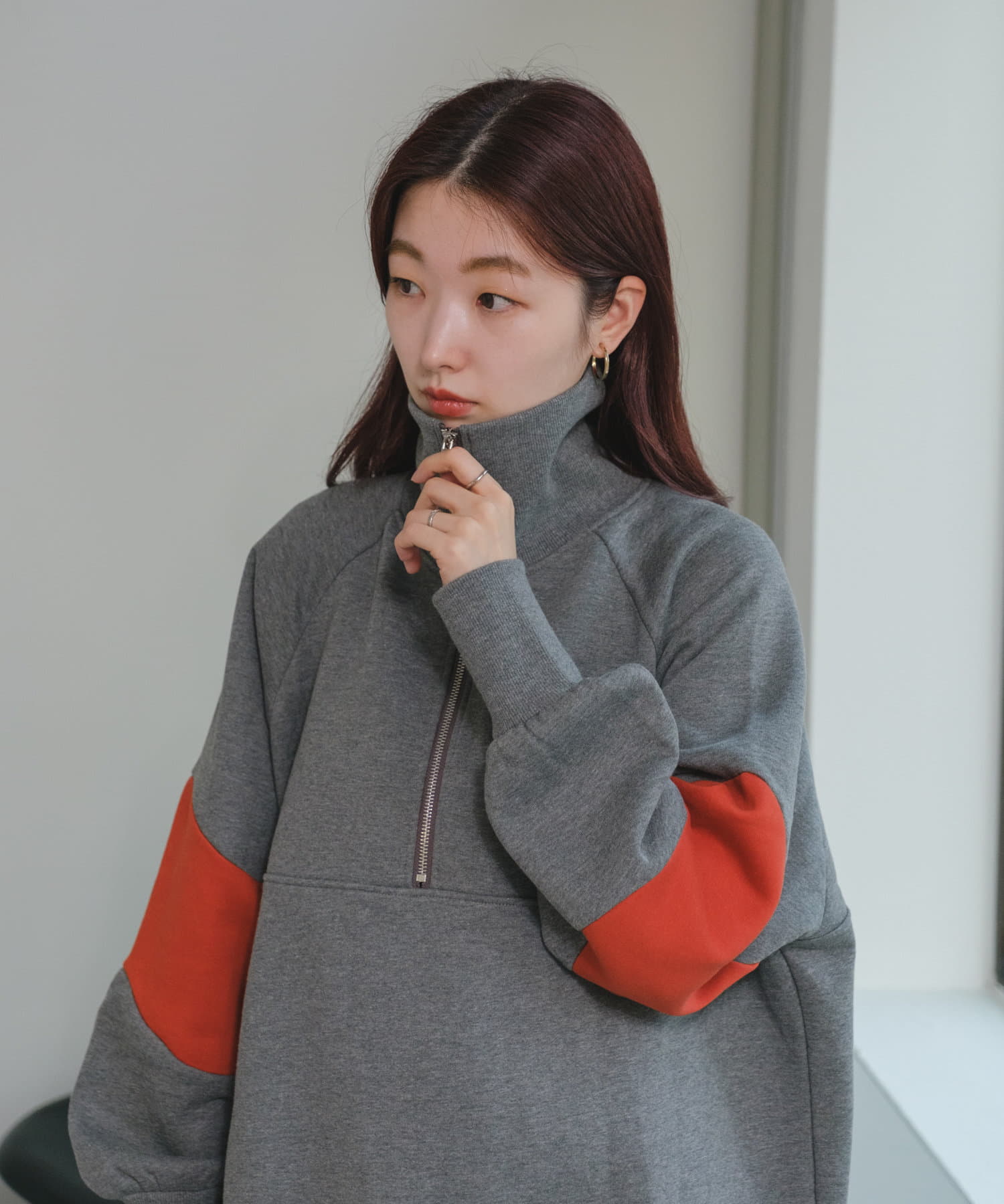 ハーフジップのスウェットでスポーティな雰囲気に仕上がるスウェットが登場。
