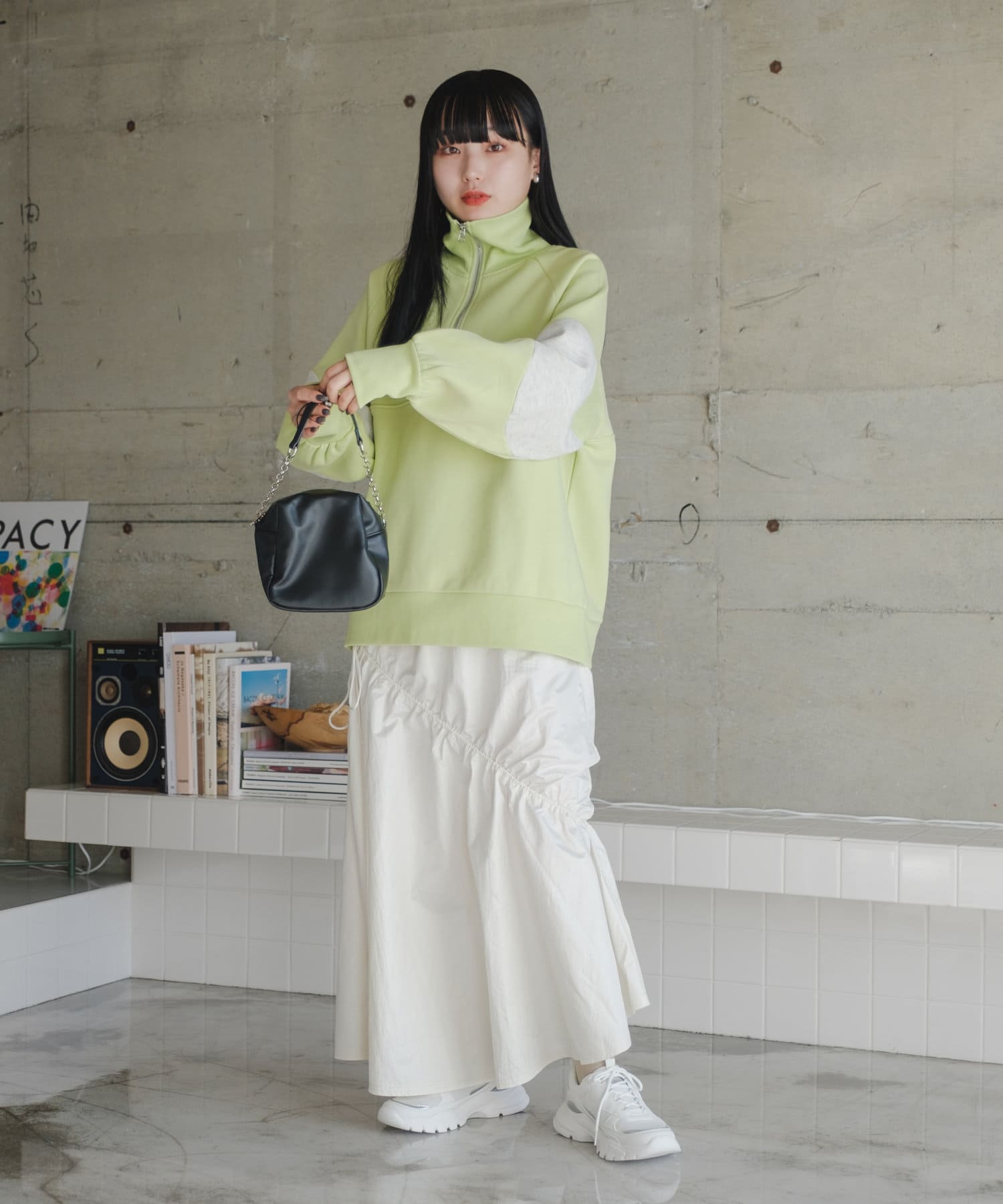 ミニボトムの際はソックスにスニーカー合わせなどスポーティな合わせも好相性。
