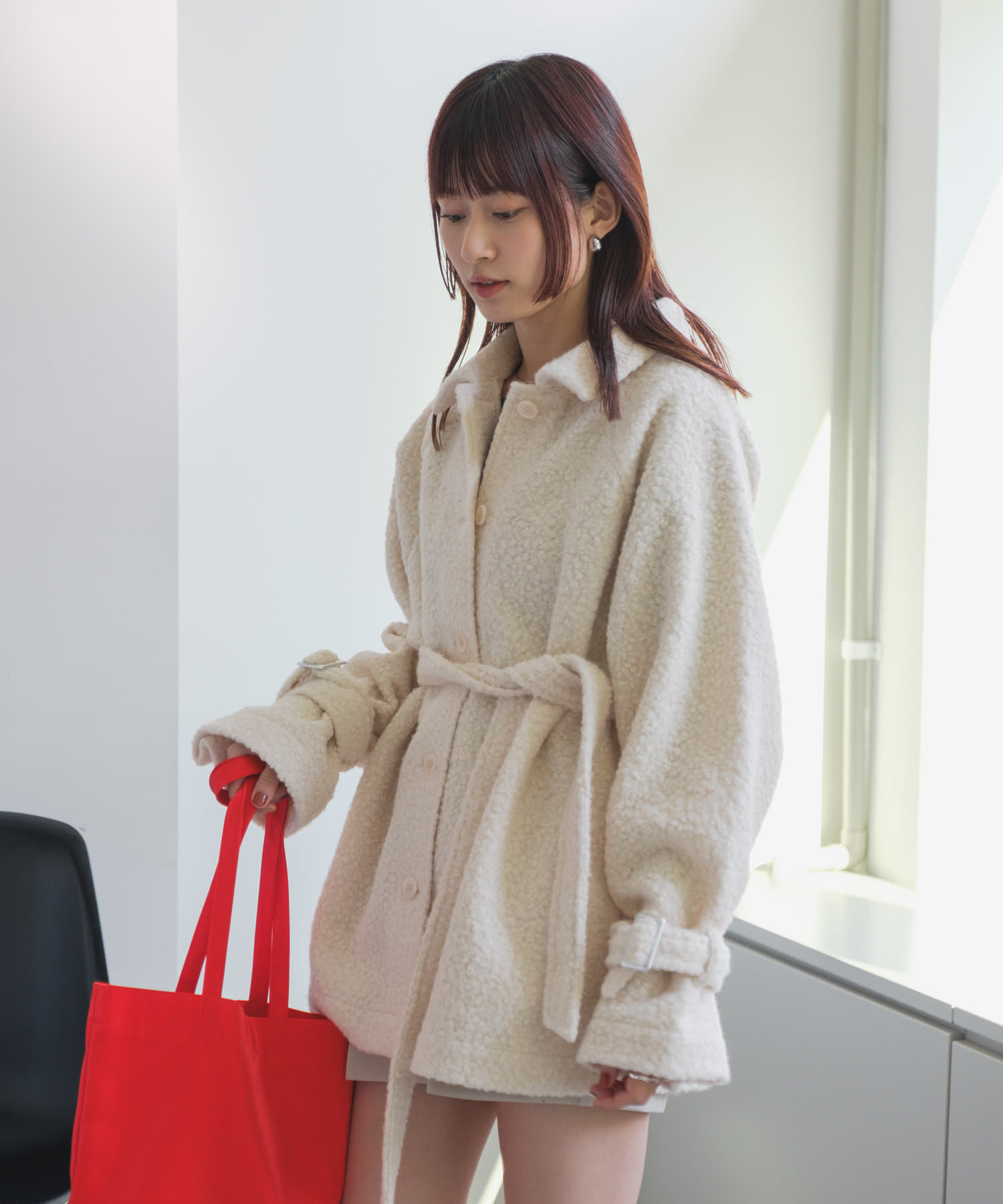 ブークレ素材が軽くて暖かいフレアミドルコート