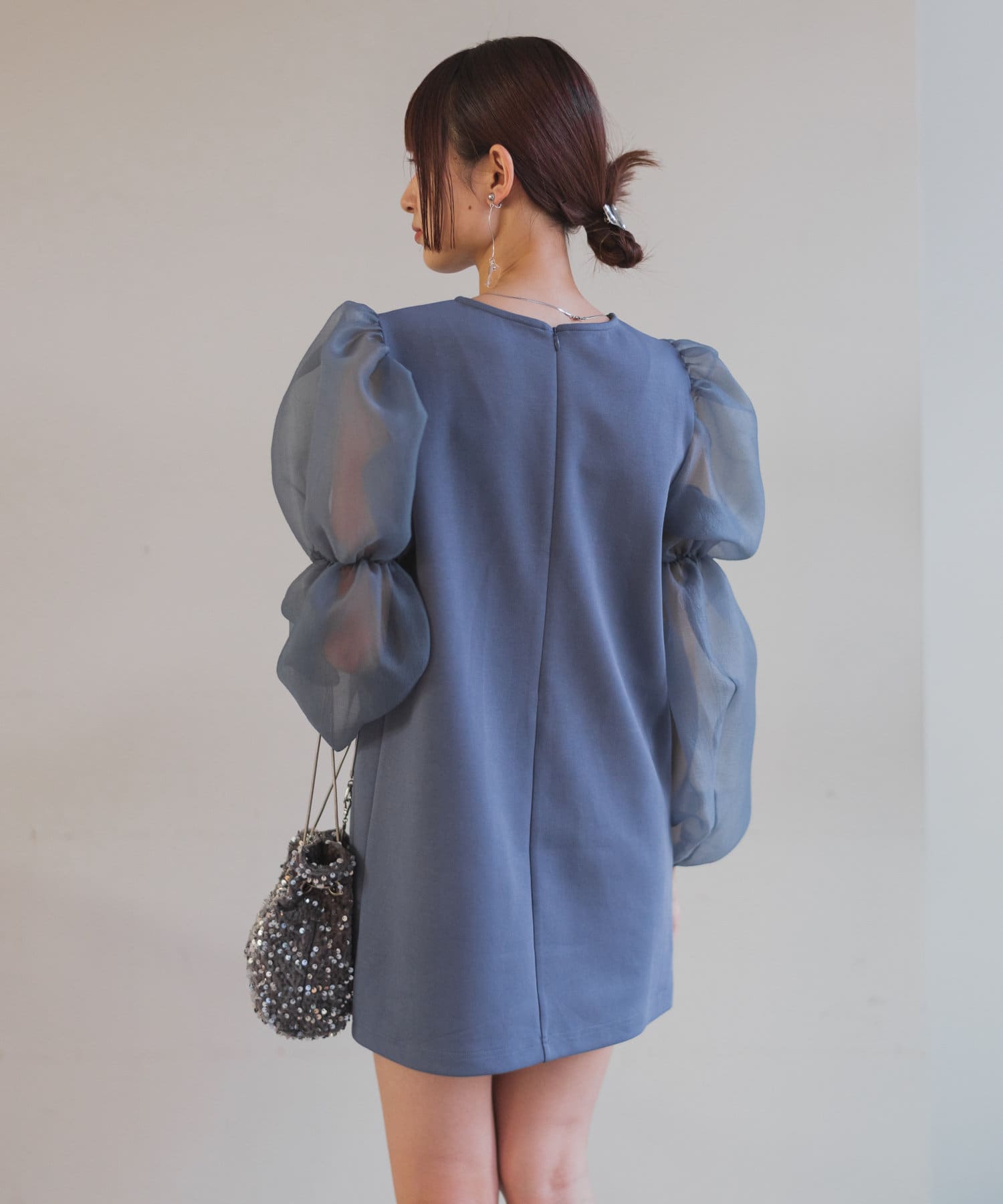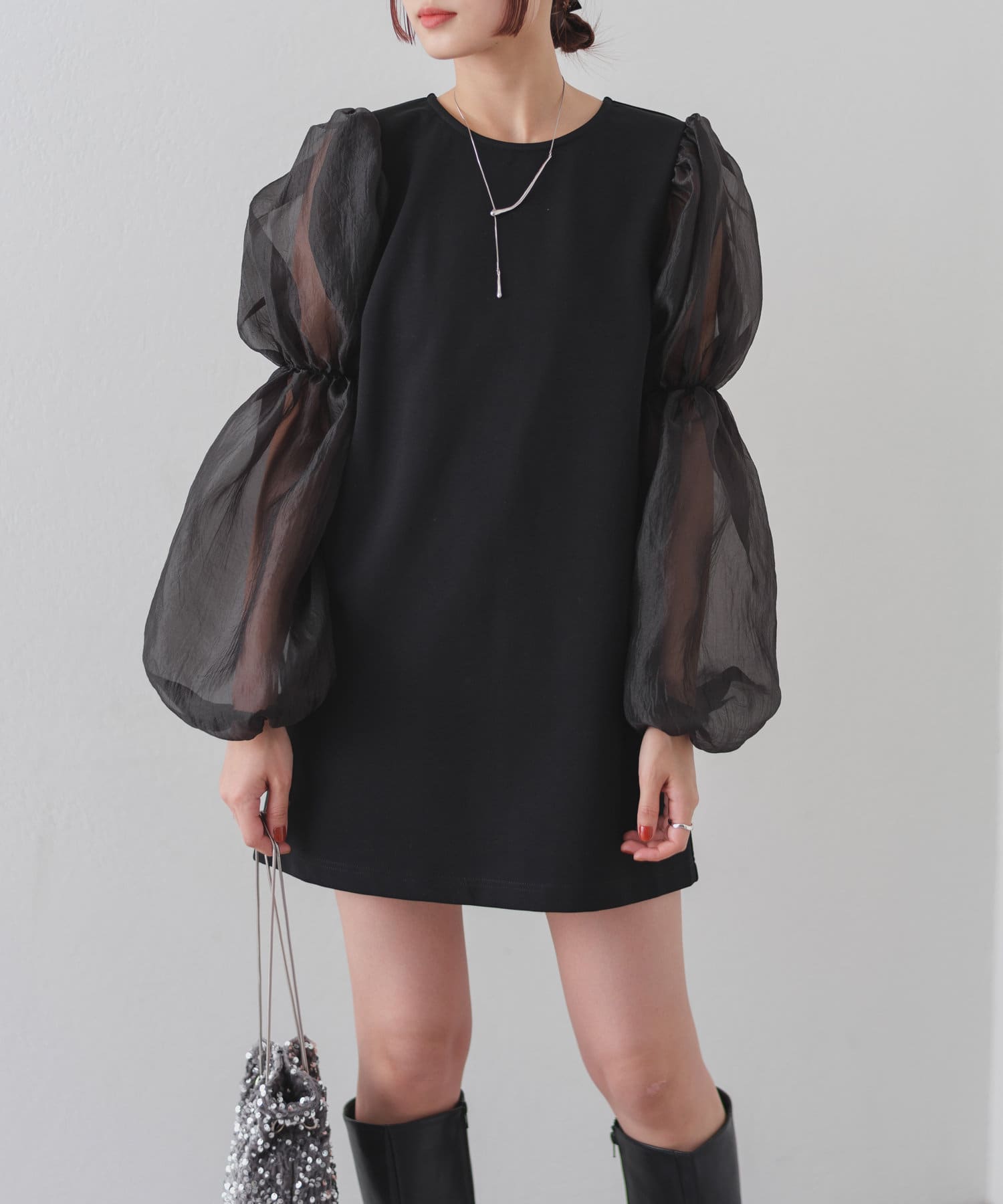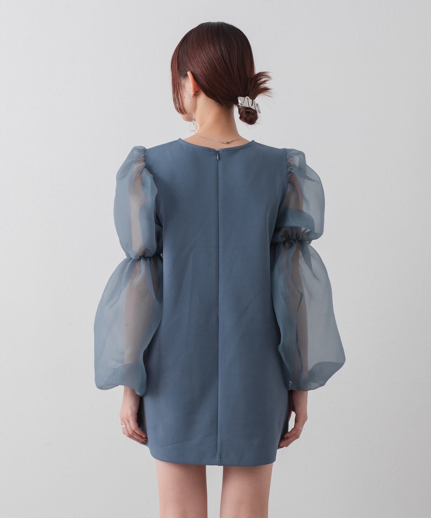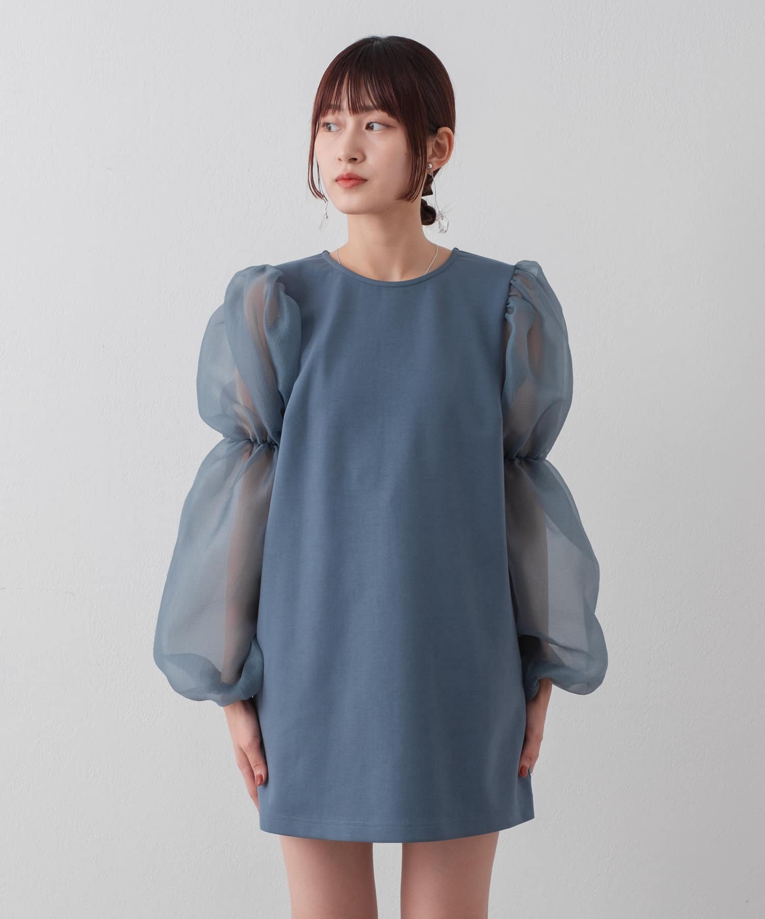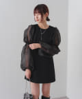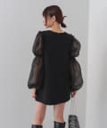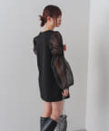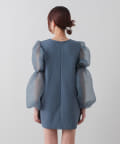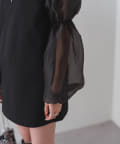 シアーボリューム袖が目を惹くミニワンピース