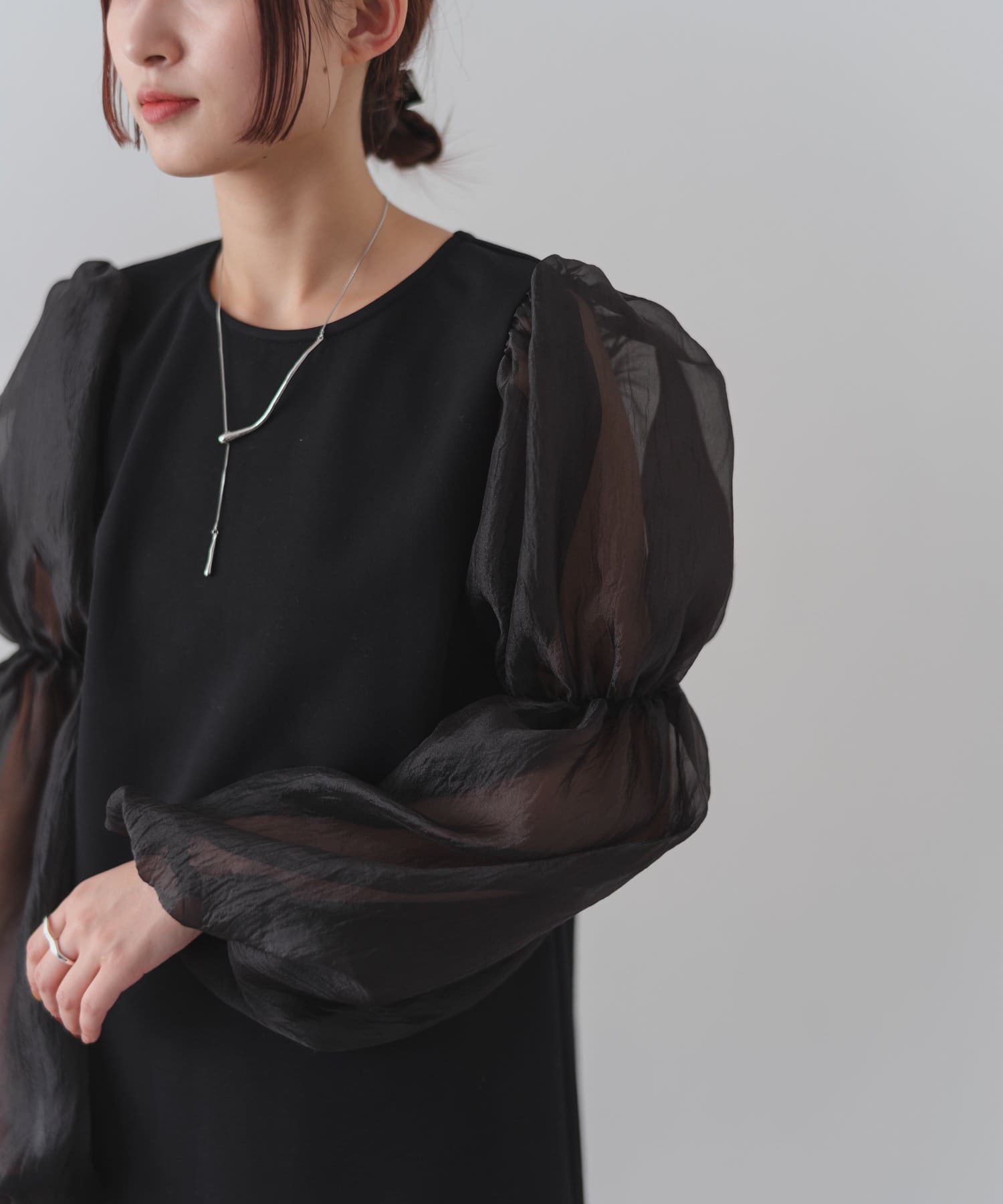 シアー素材が抜け感のある袖ボリュームワンピース。