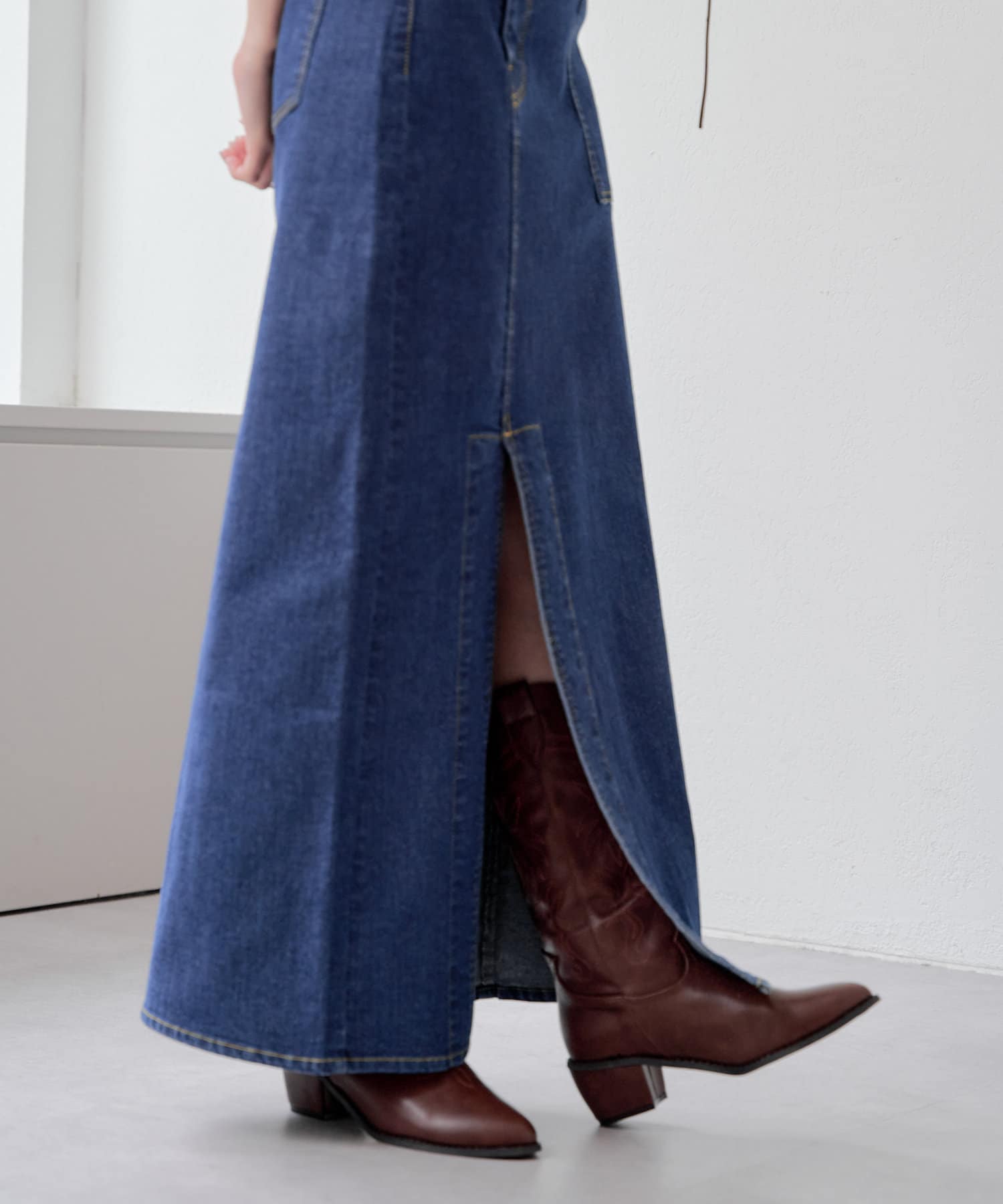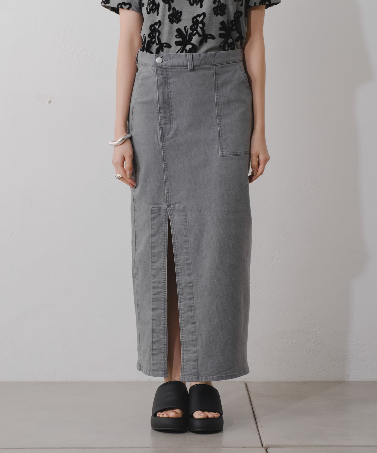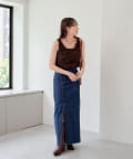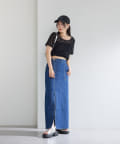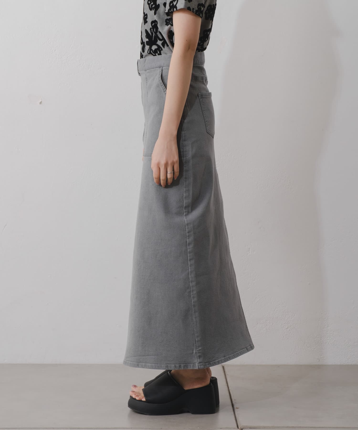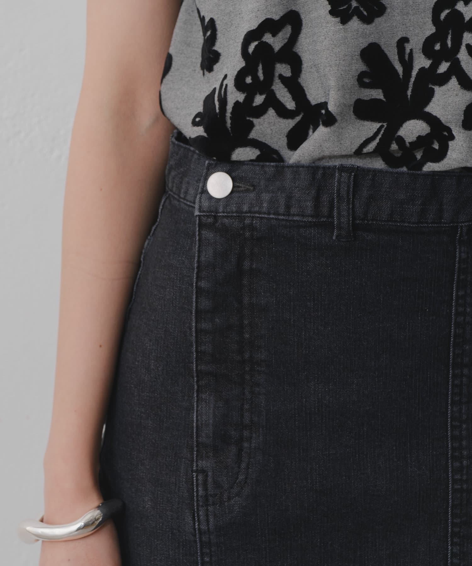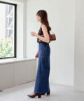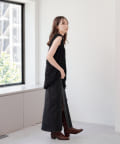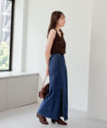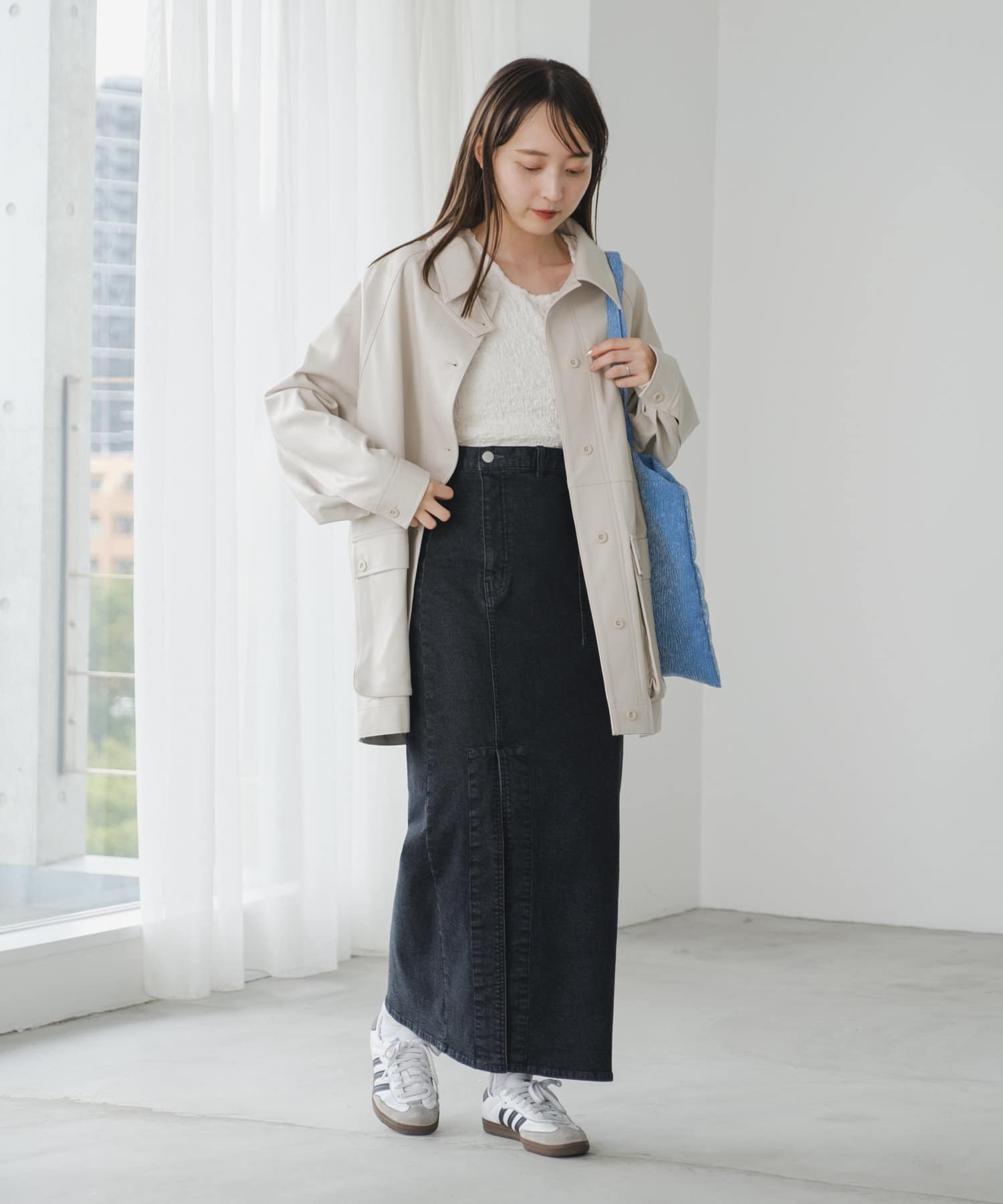 Iラインのシルエットなので、ジャケットやデザインのあるトップスと合わせると、バランスよく着ていただけます。
