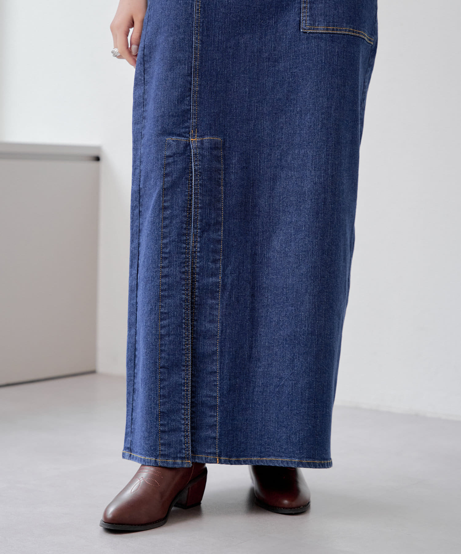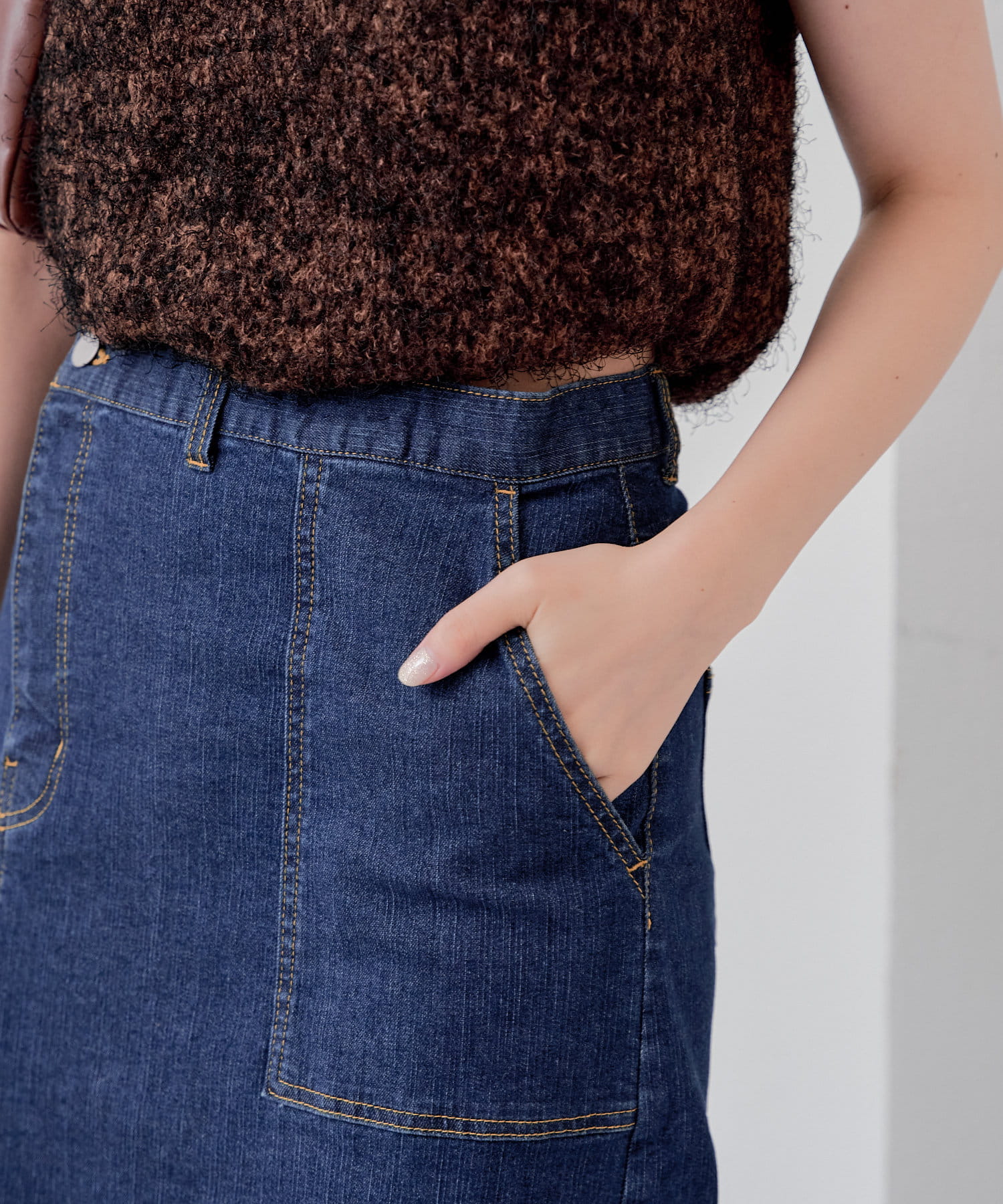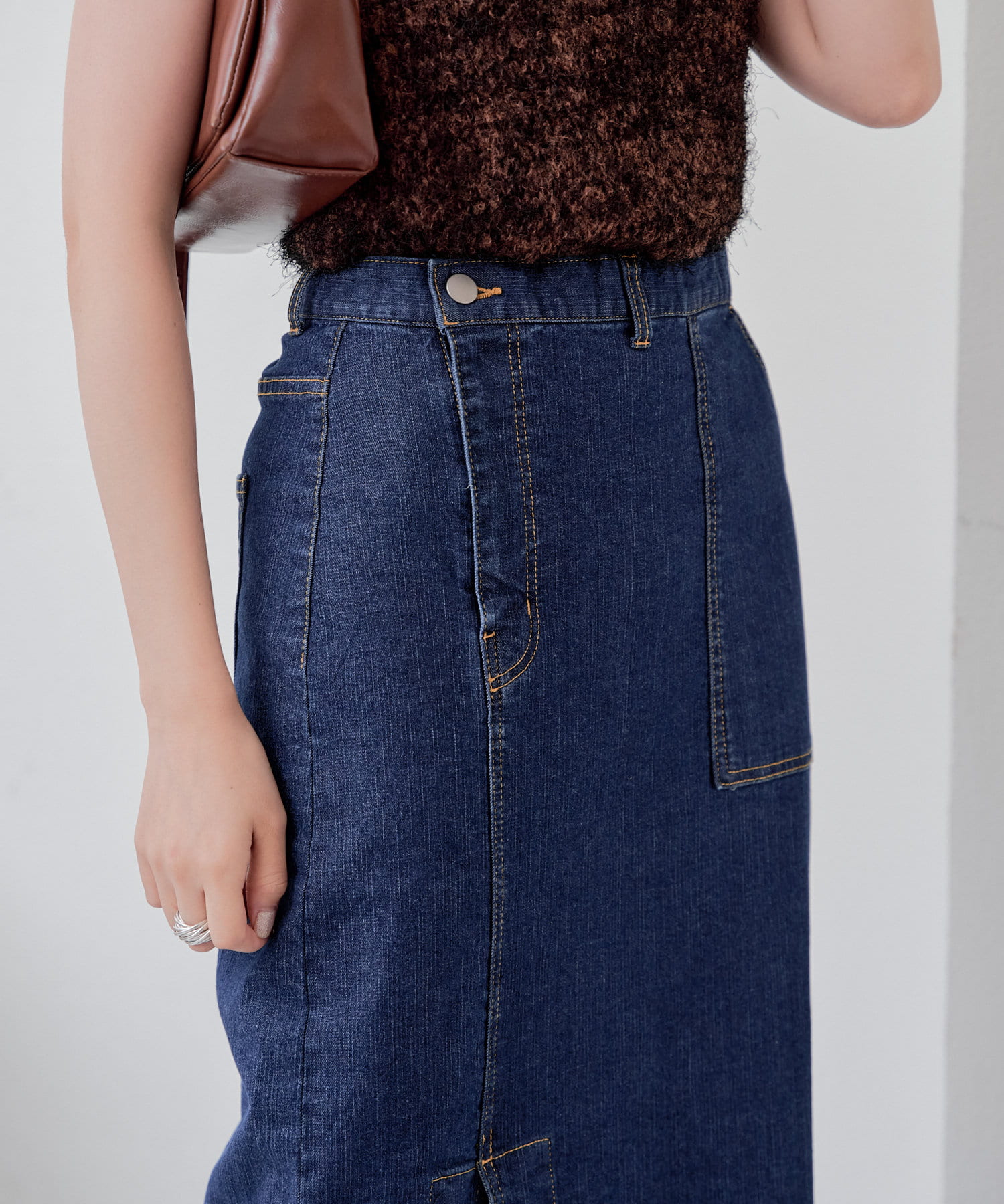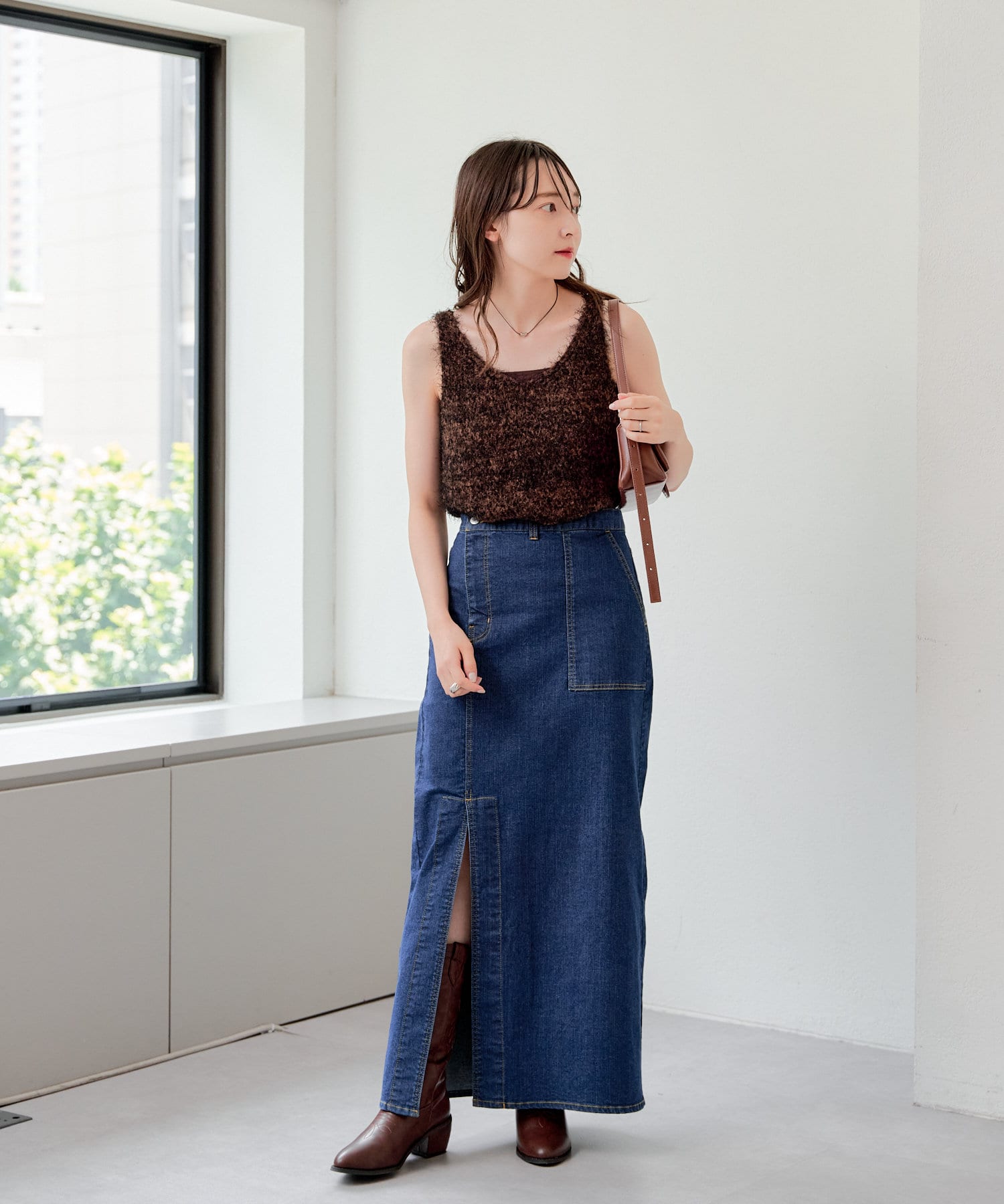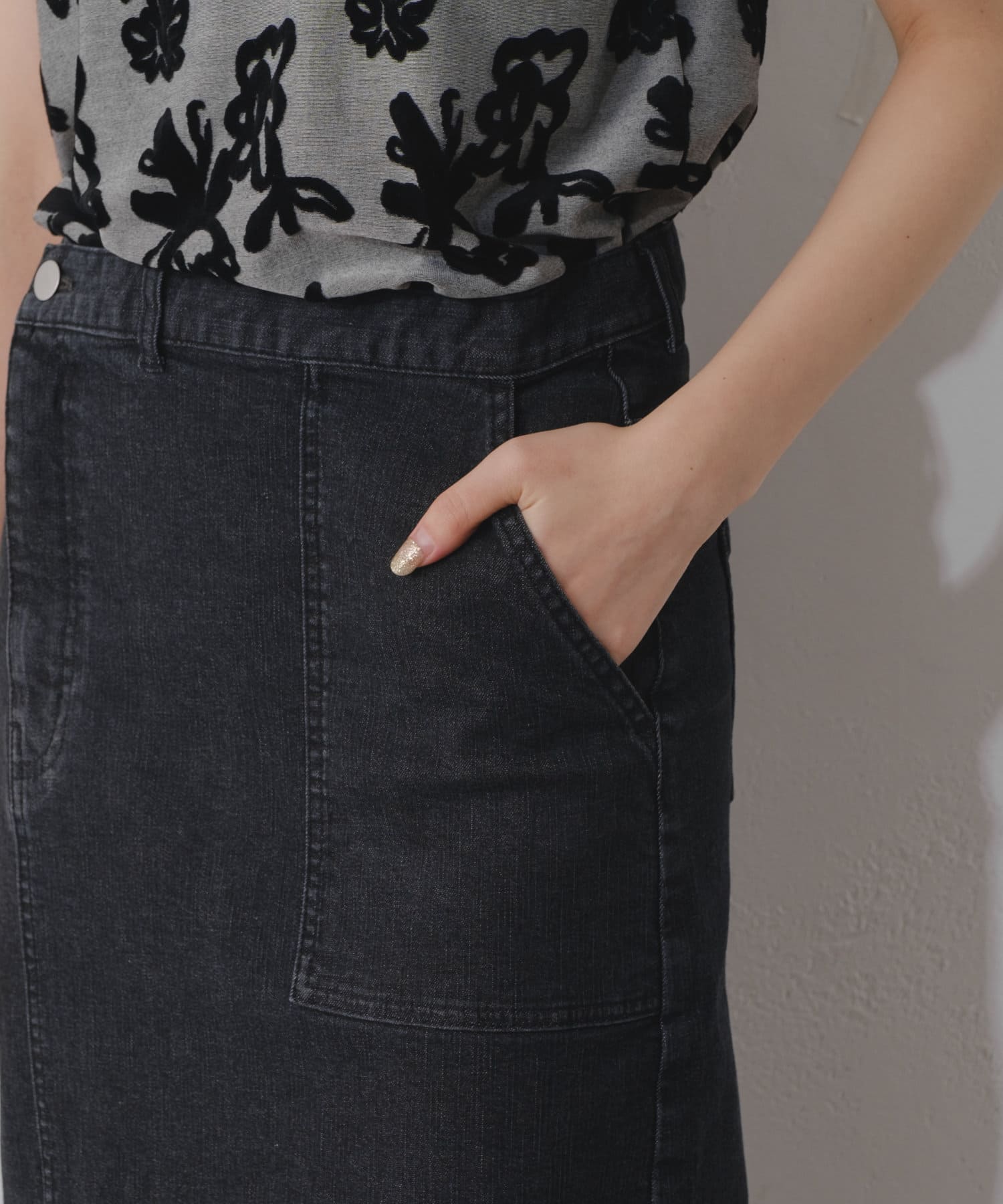 Iラインのシルエットなので、ジャケットやデザインのあるトップスと合わせると、バランスよく着ていただけます。