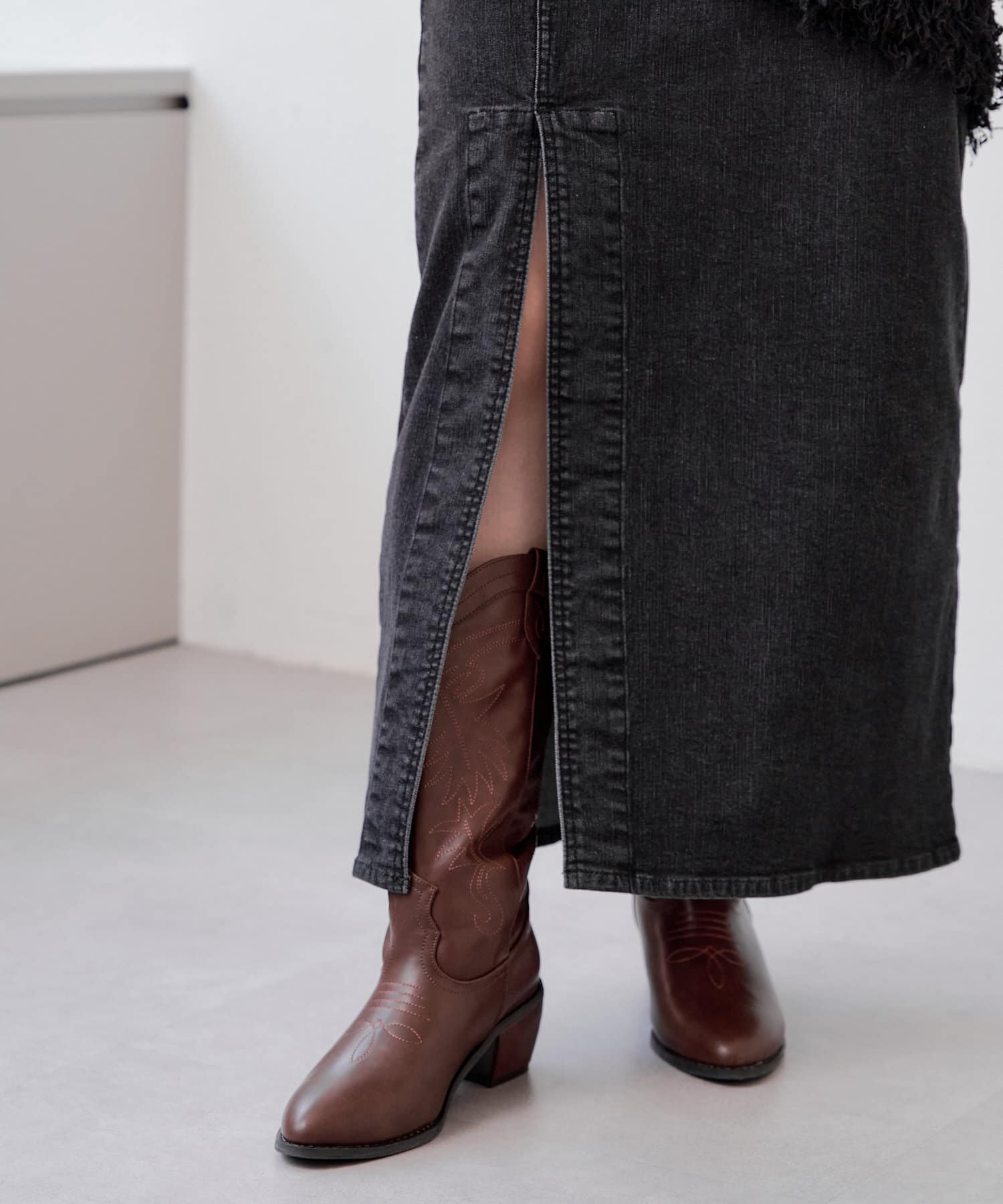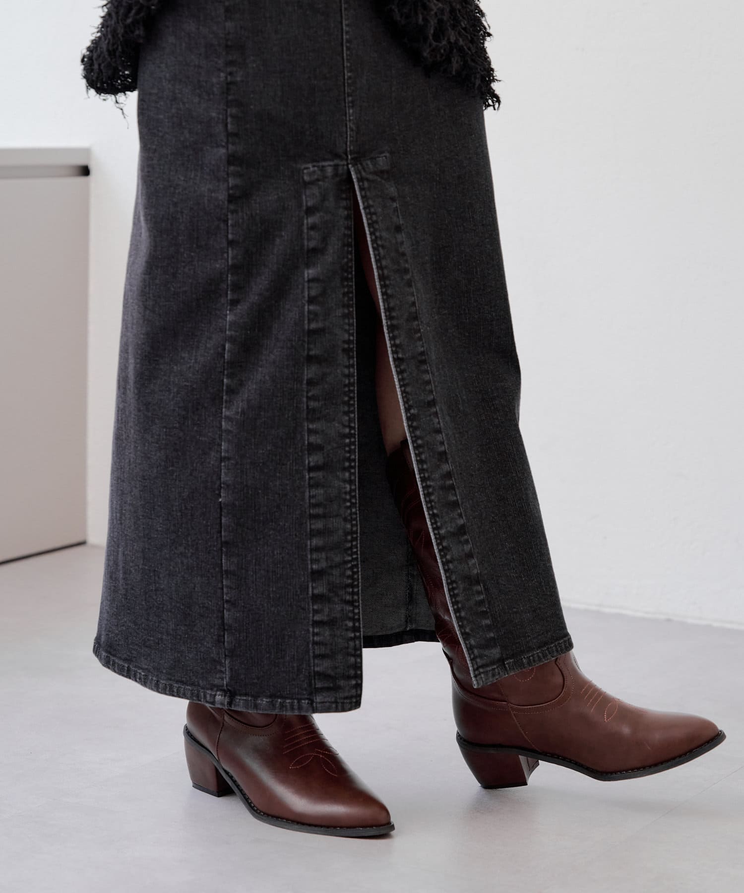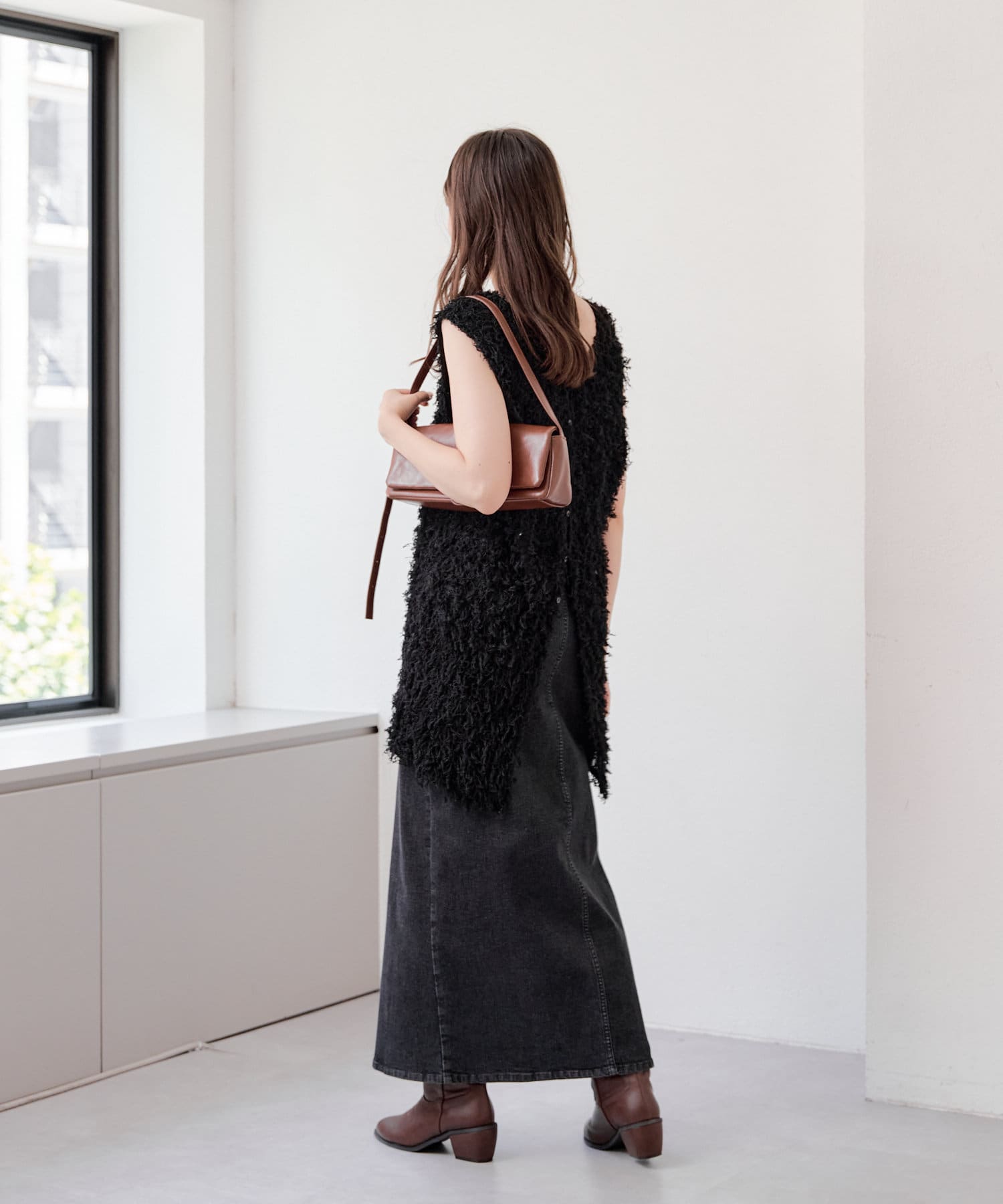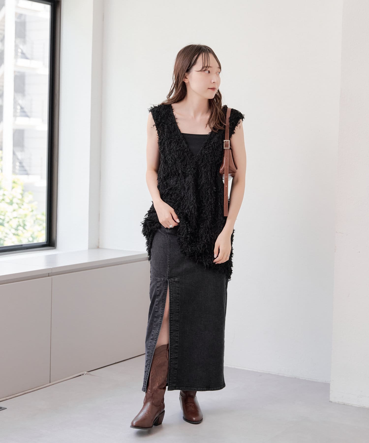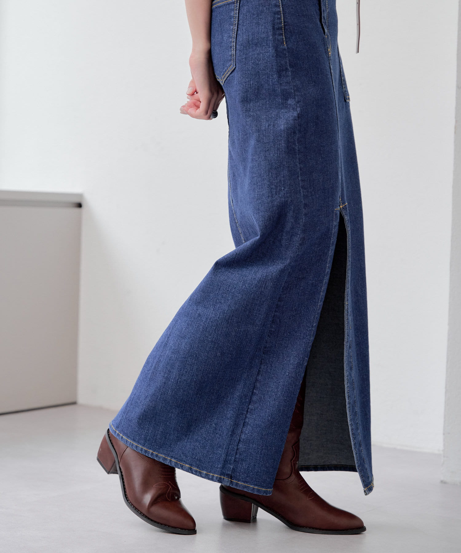 Iラインのシルエットなので、ジャケットやデザインのあるトップスと合わせると、バランスよく着ていただけます。