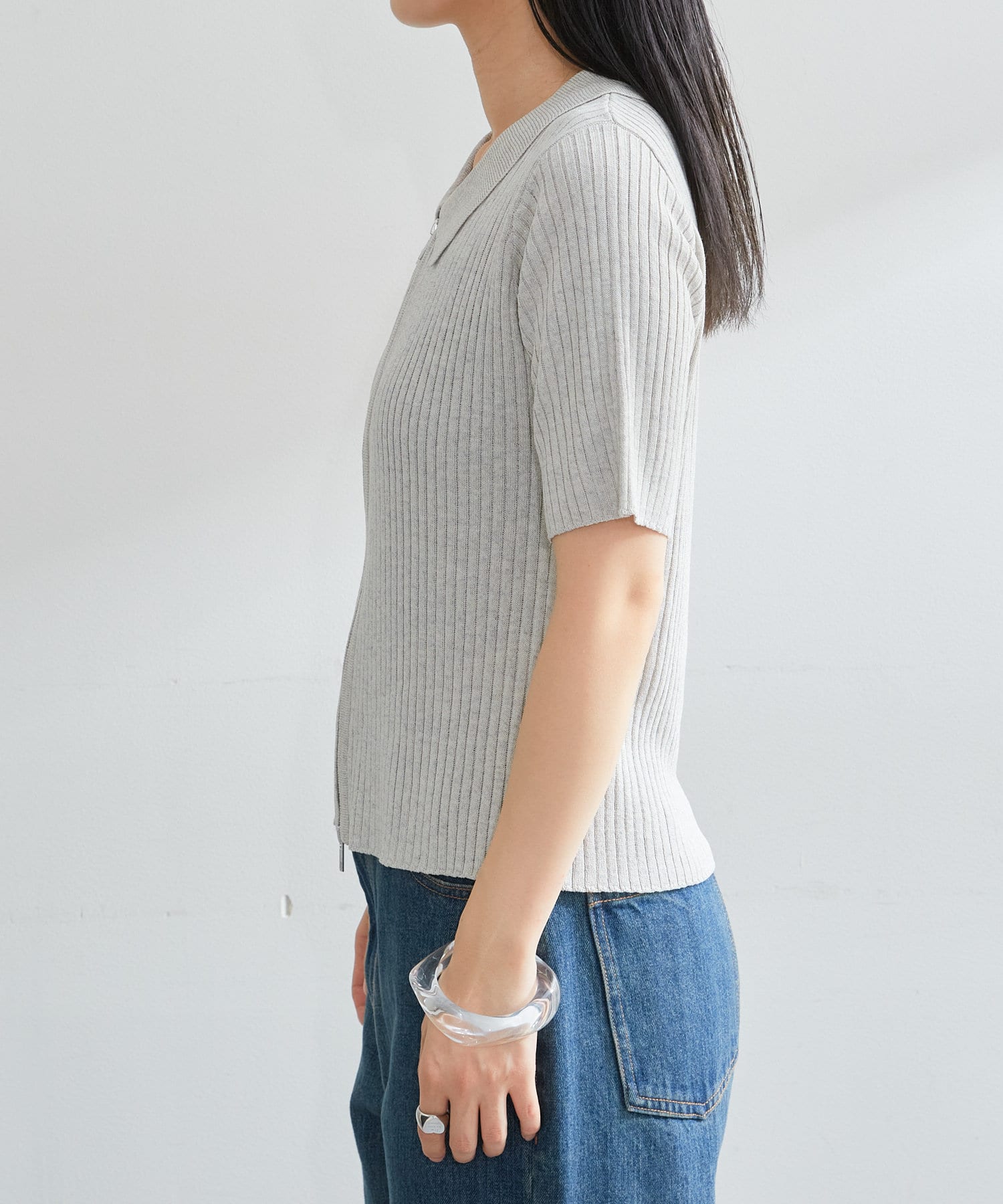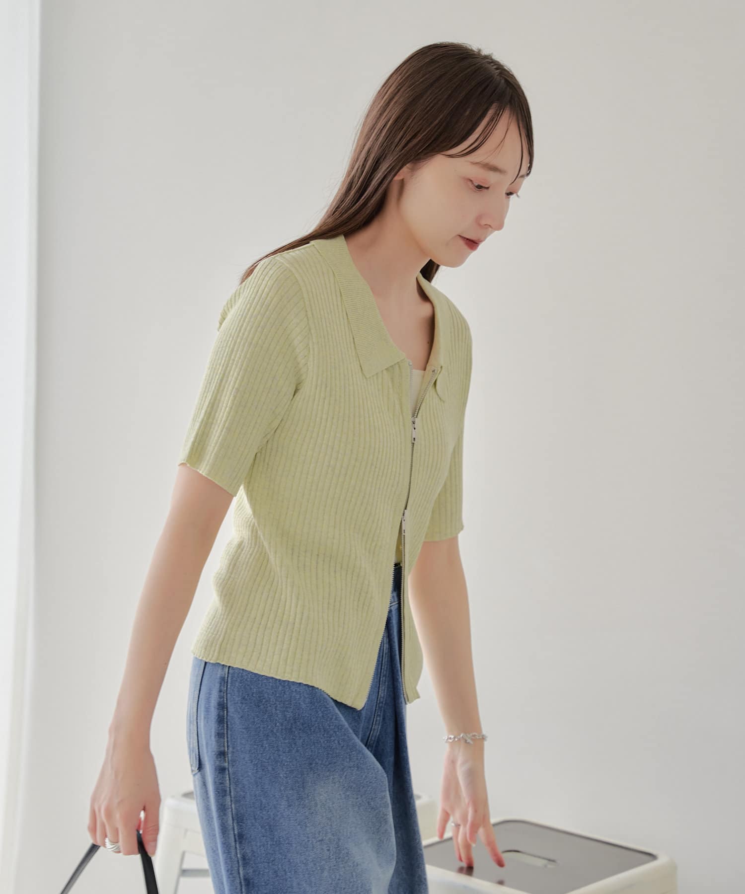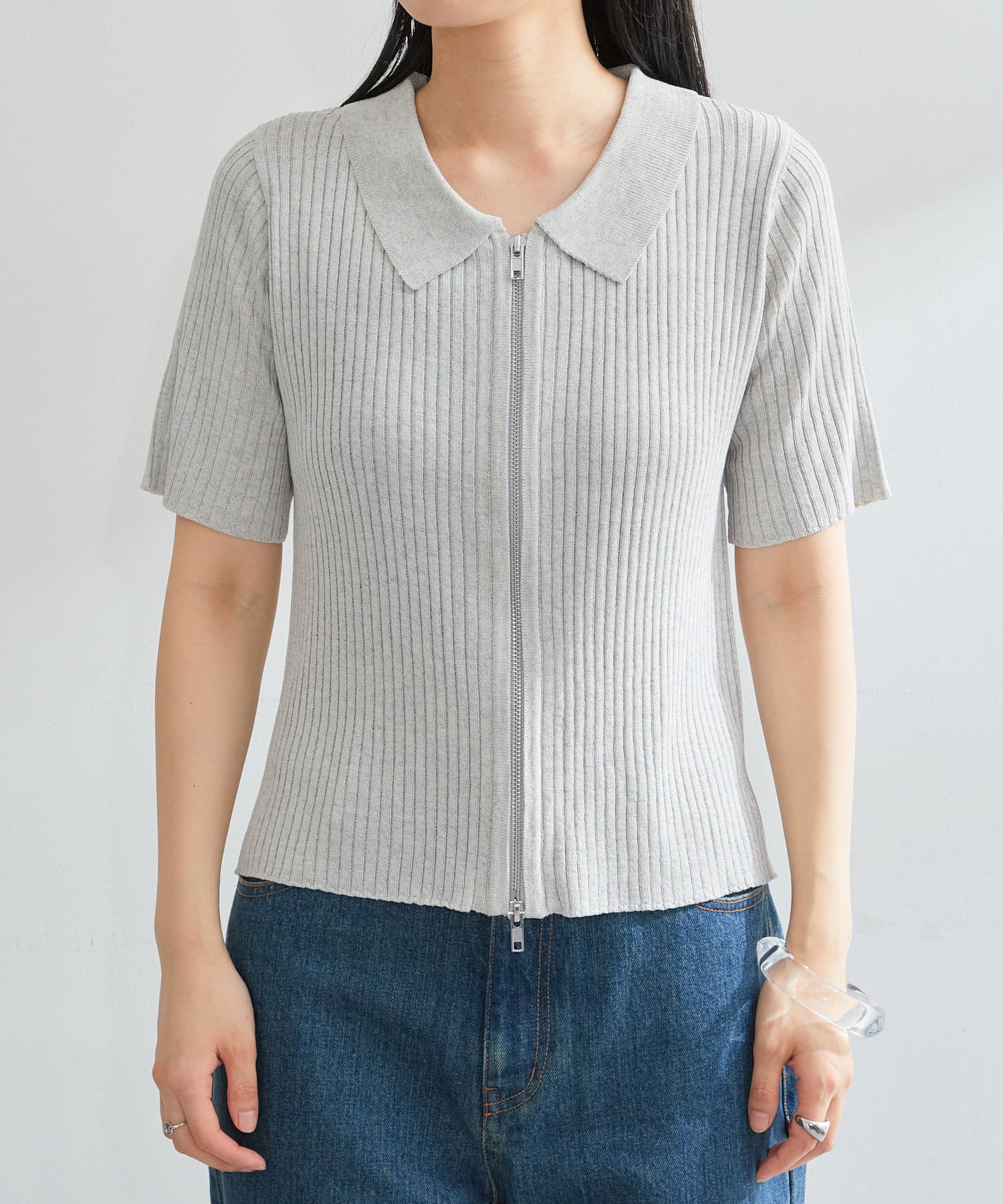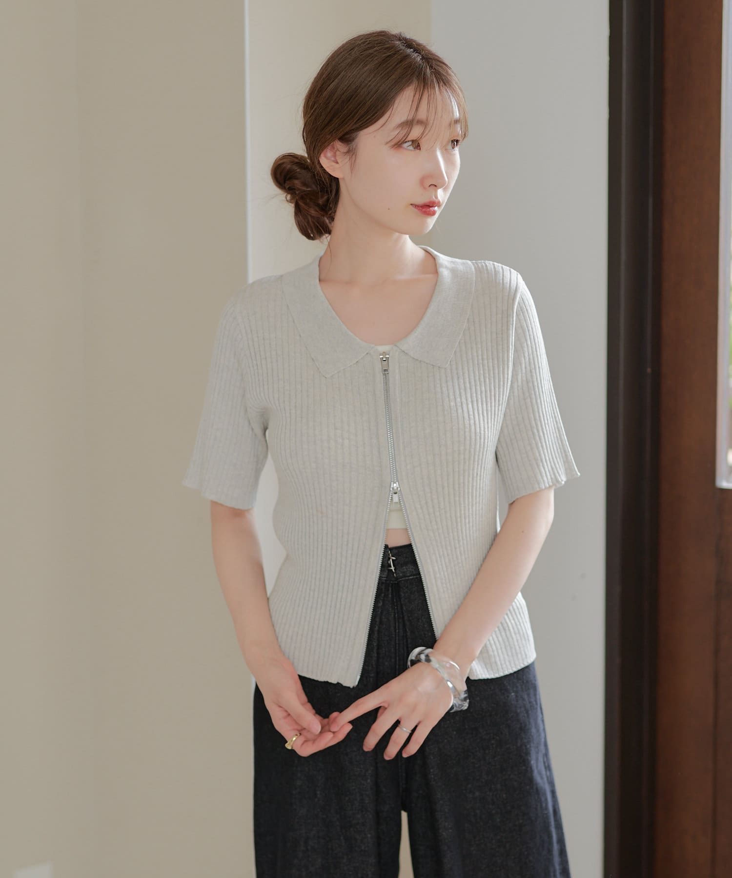 今季トレンドなダブルジップ仕様のリブニットカーディガンに半袖が登場しました。