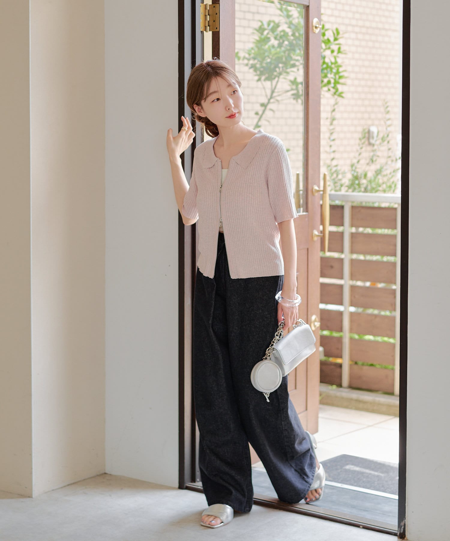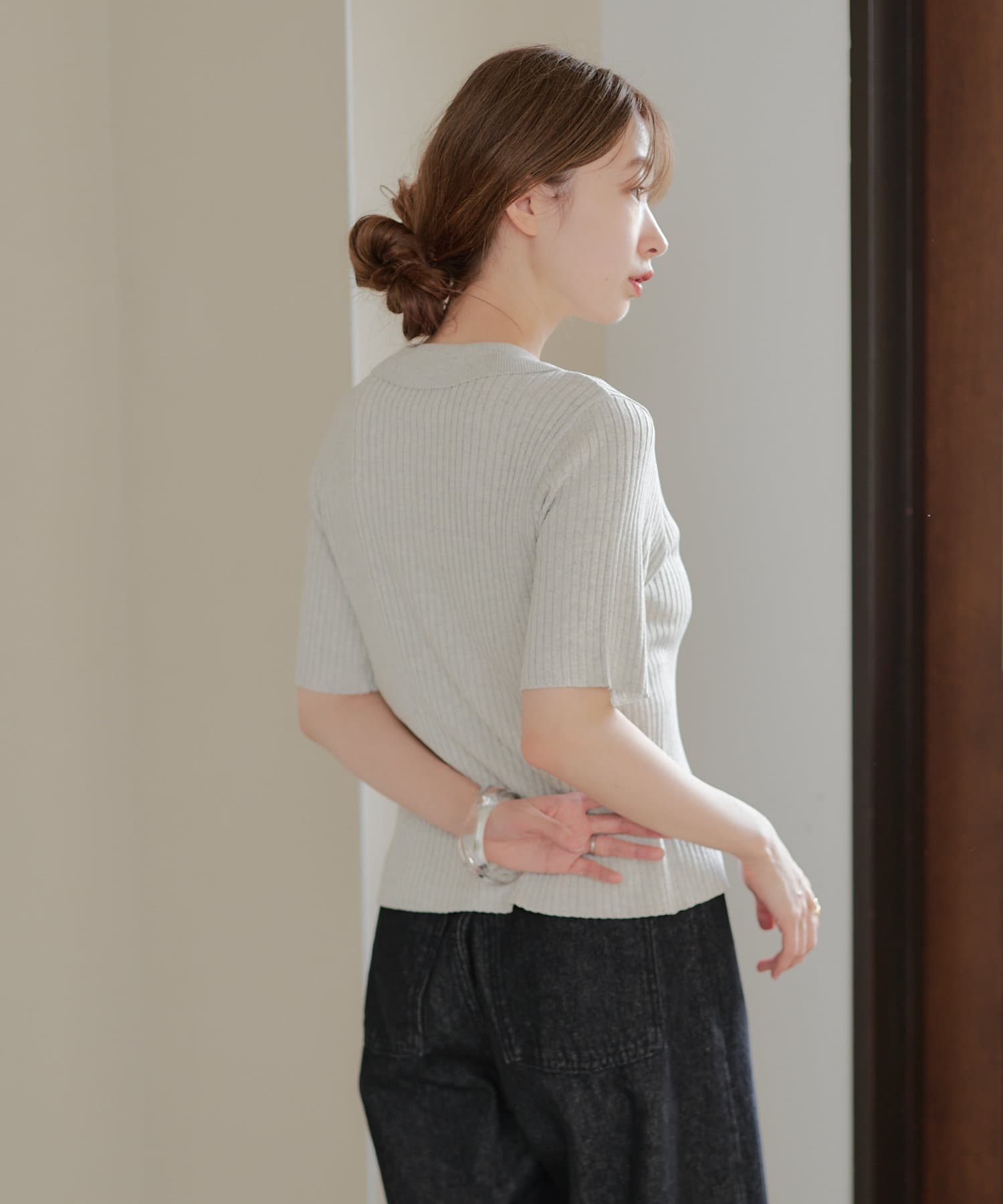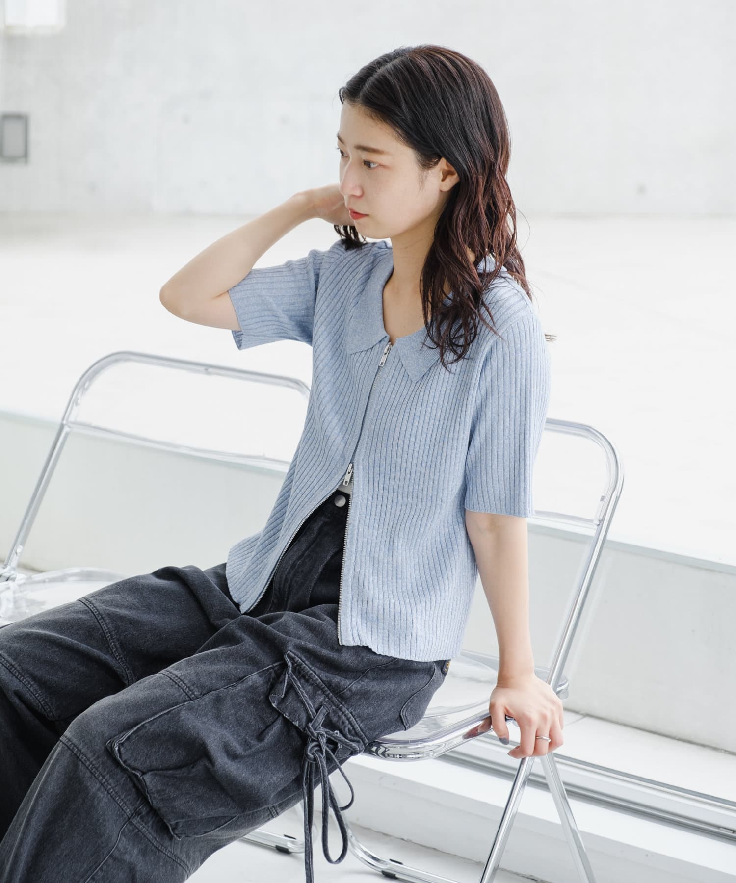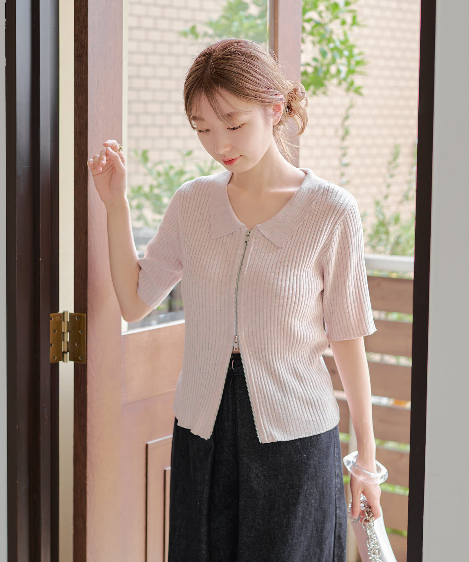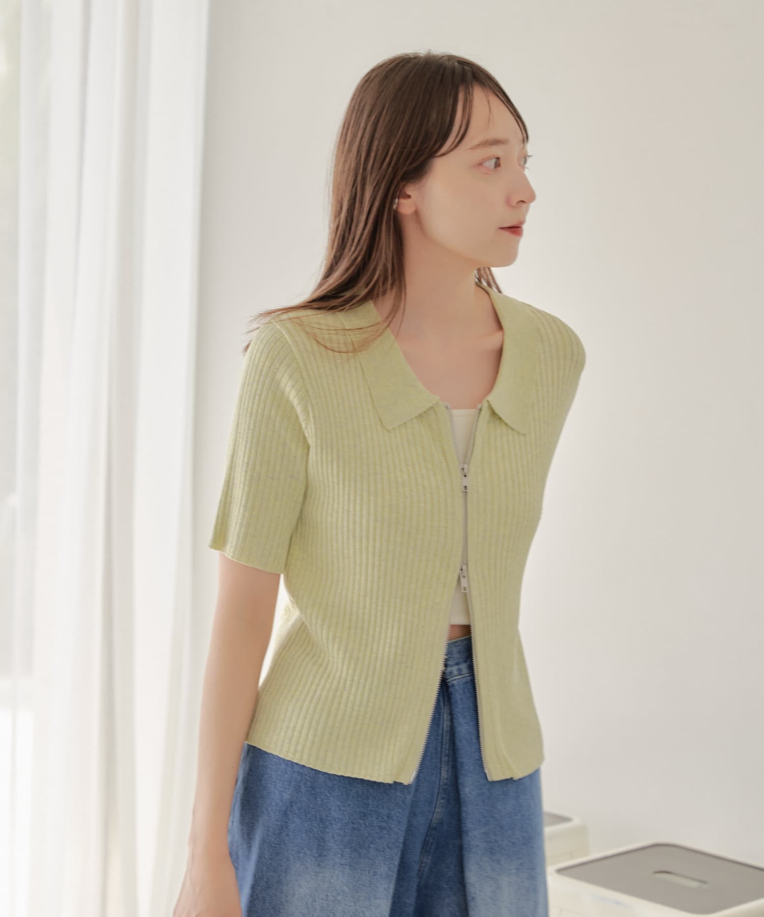 今季トレンドなダブルジップ仕様のリブニットカーディガンに半袖が登場しました。