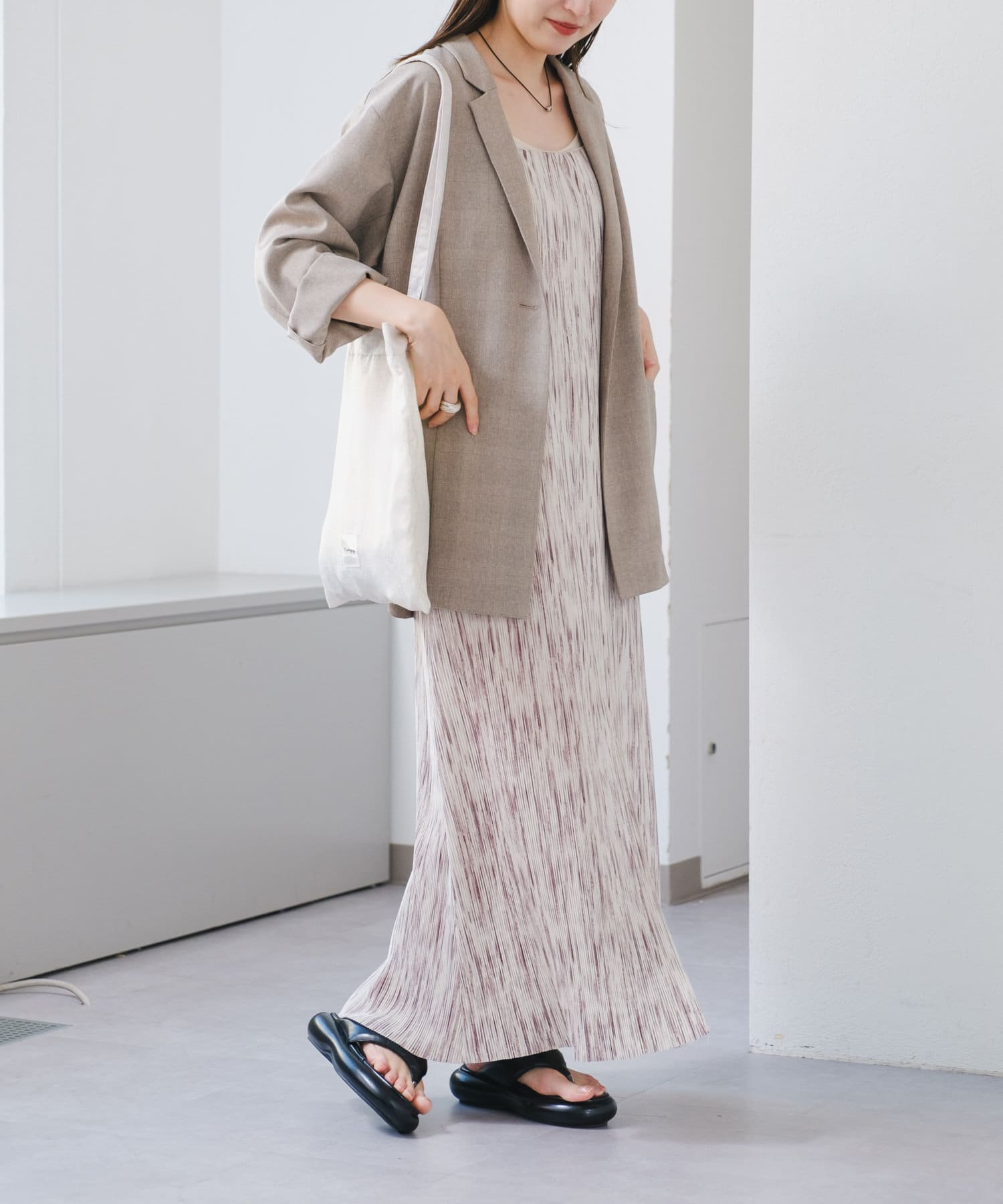 ワンピースの羽織やロングスカートとの相性も抜群です。