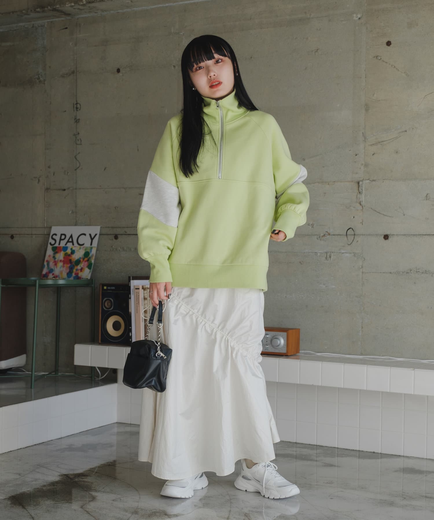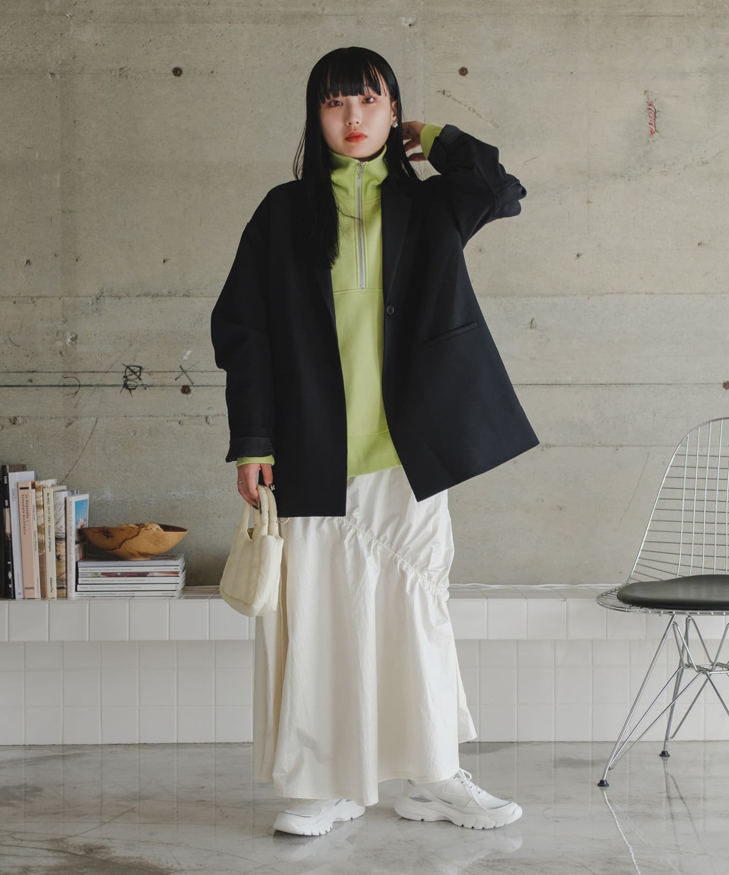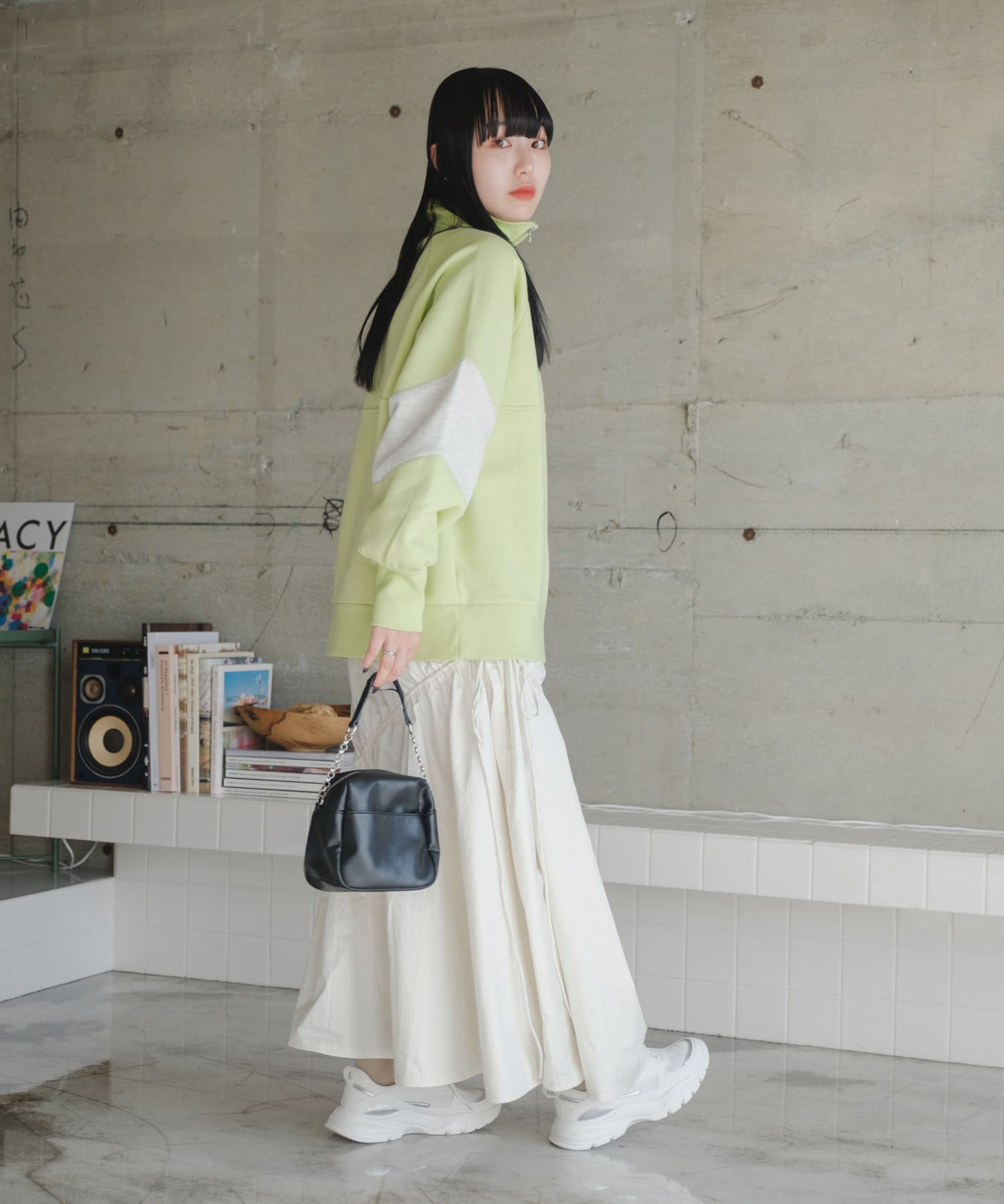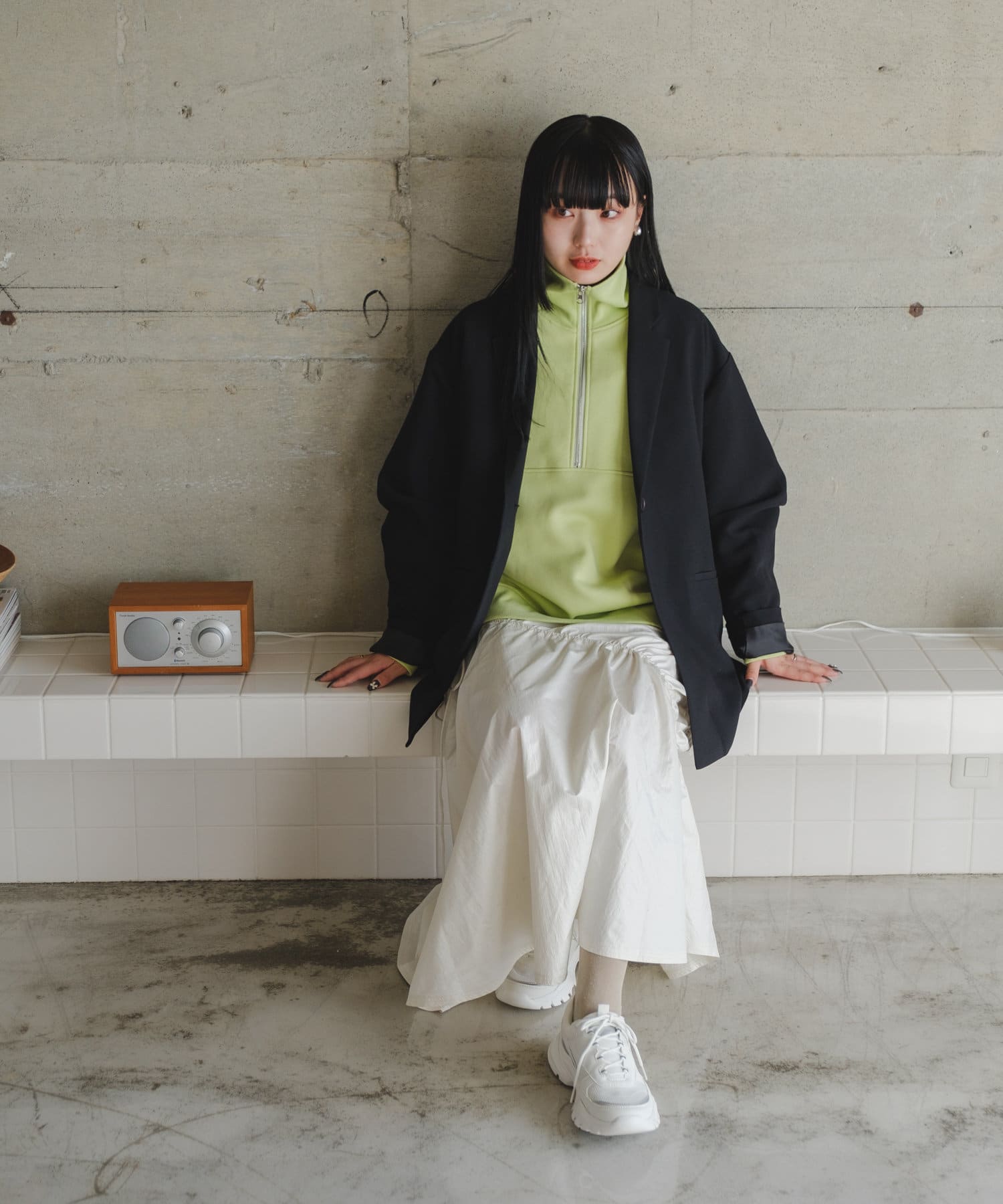 肌寒い時期にはオーバーサイズのスウェットやニットを上から被ると〇