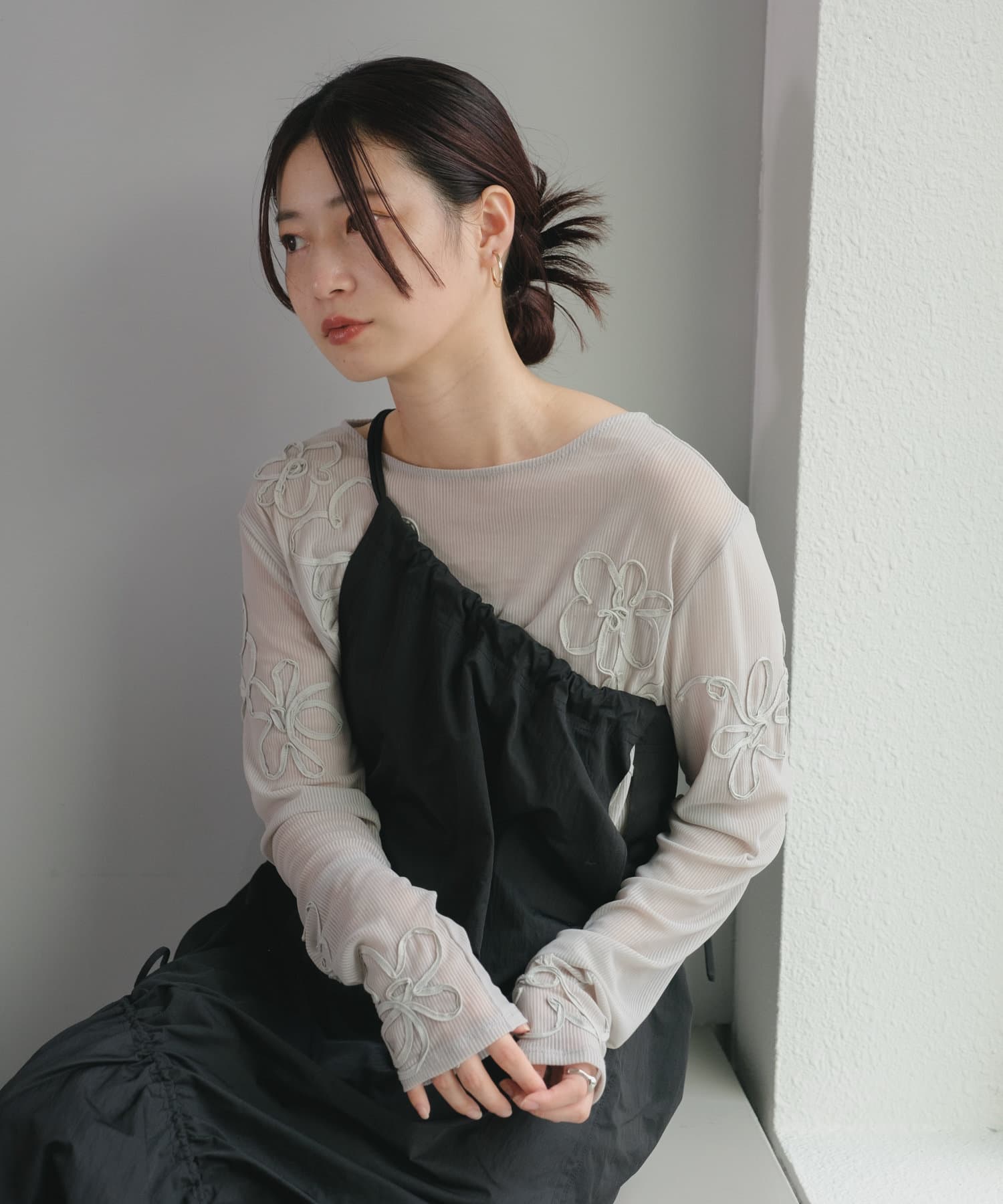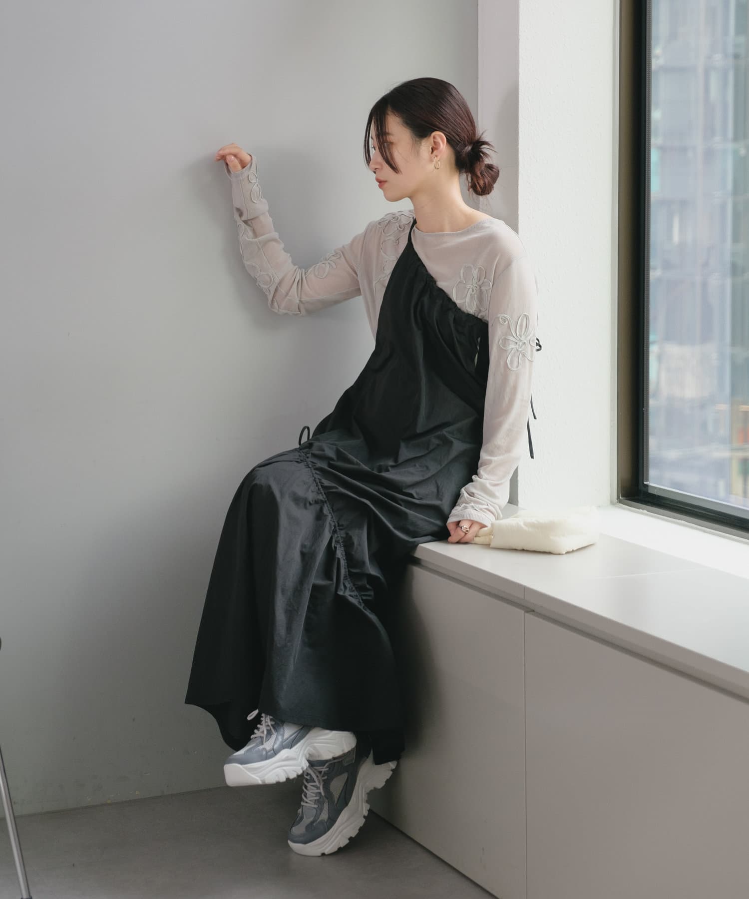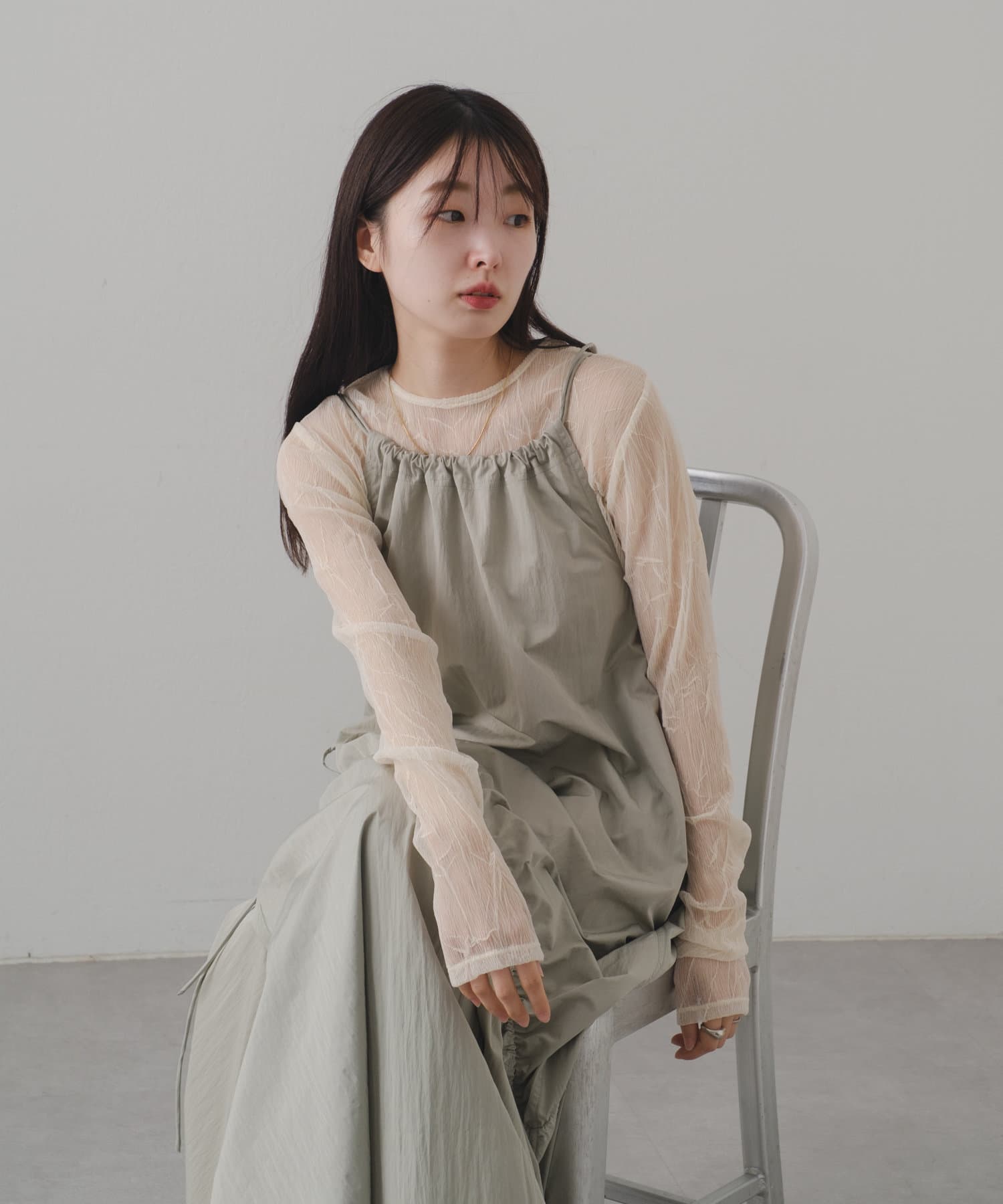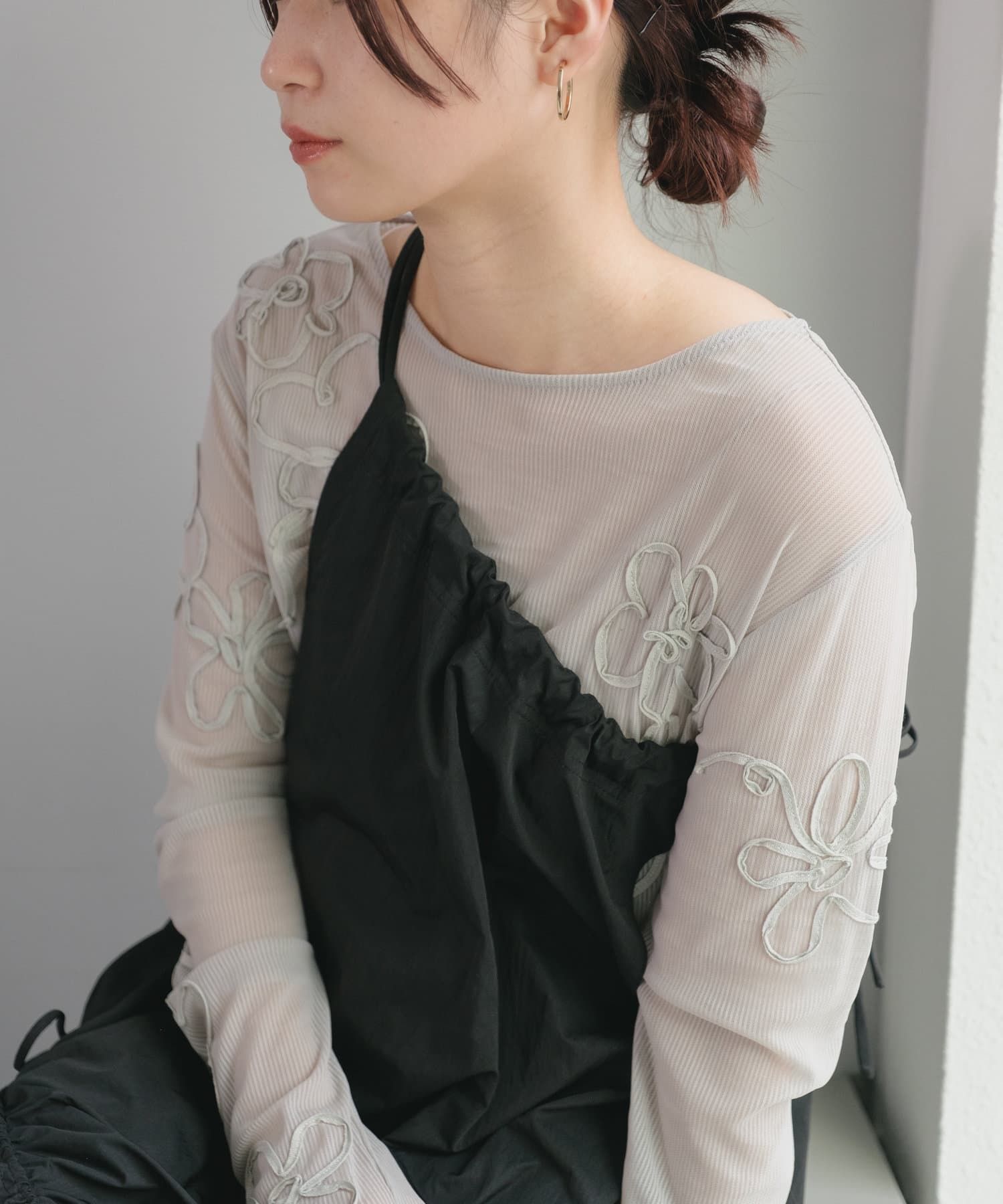 コンパクトなカットソーやシアーインナー合わせがおススメ。