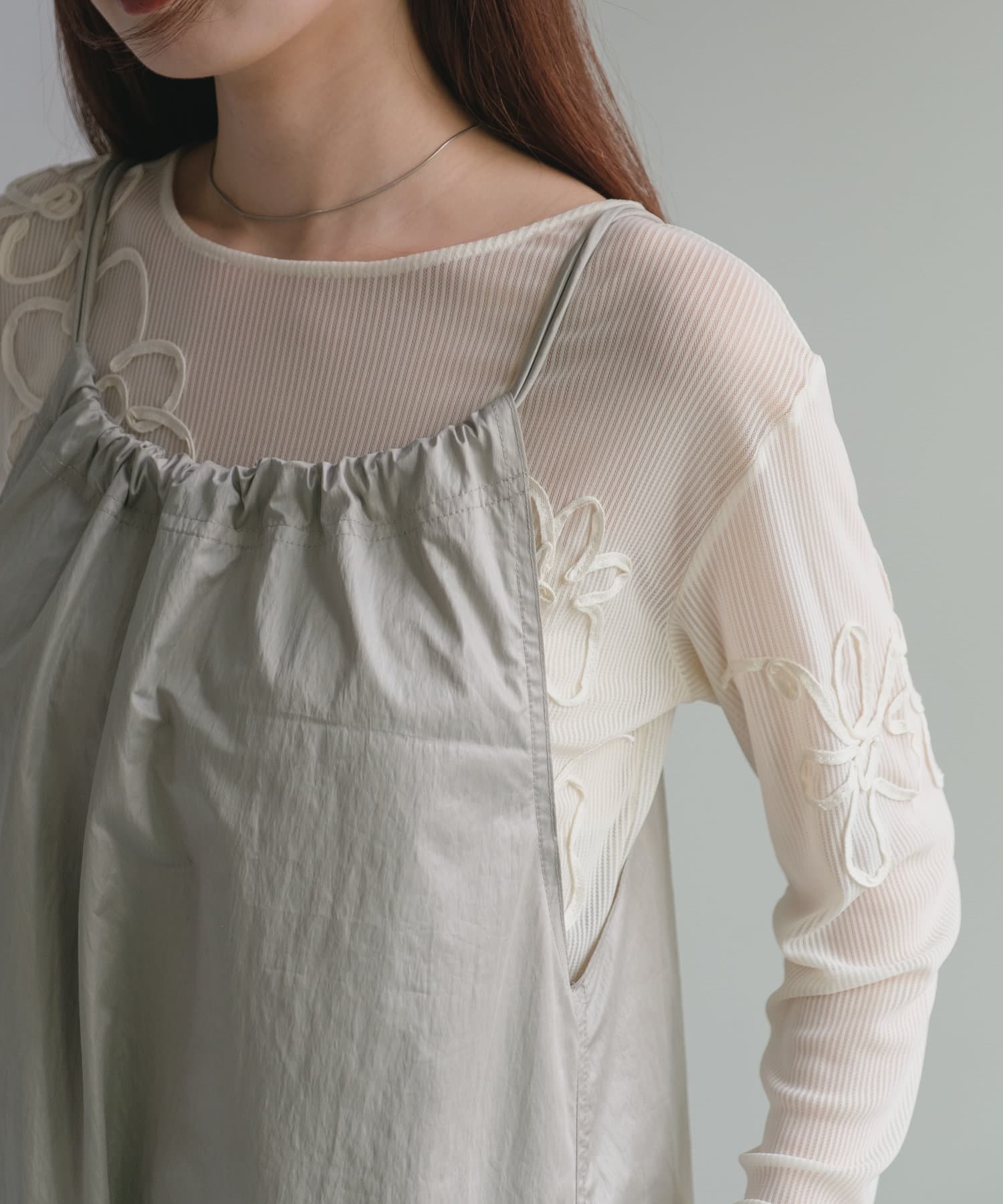 ホワイトのみ裏地付きなので透け感を気にせず着用いただけます。