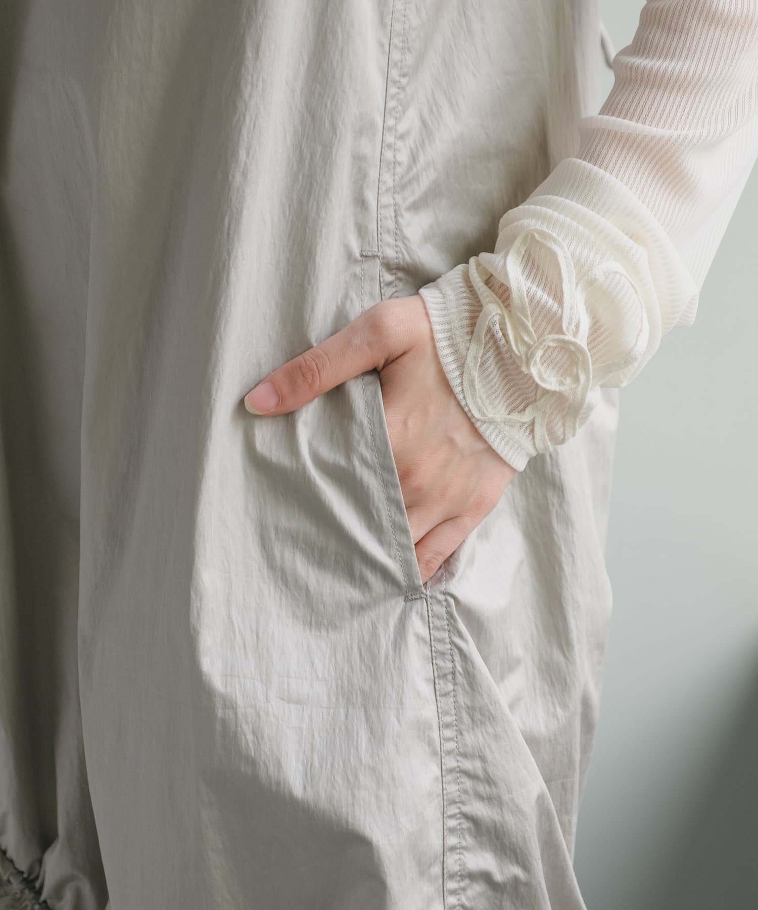 肩紐で着丈調節が可能で、ポケット付きなのも嬉しいポイント。