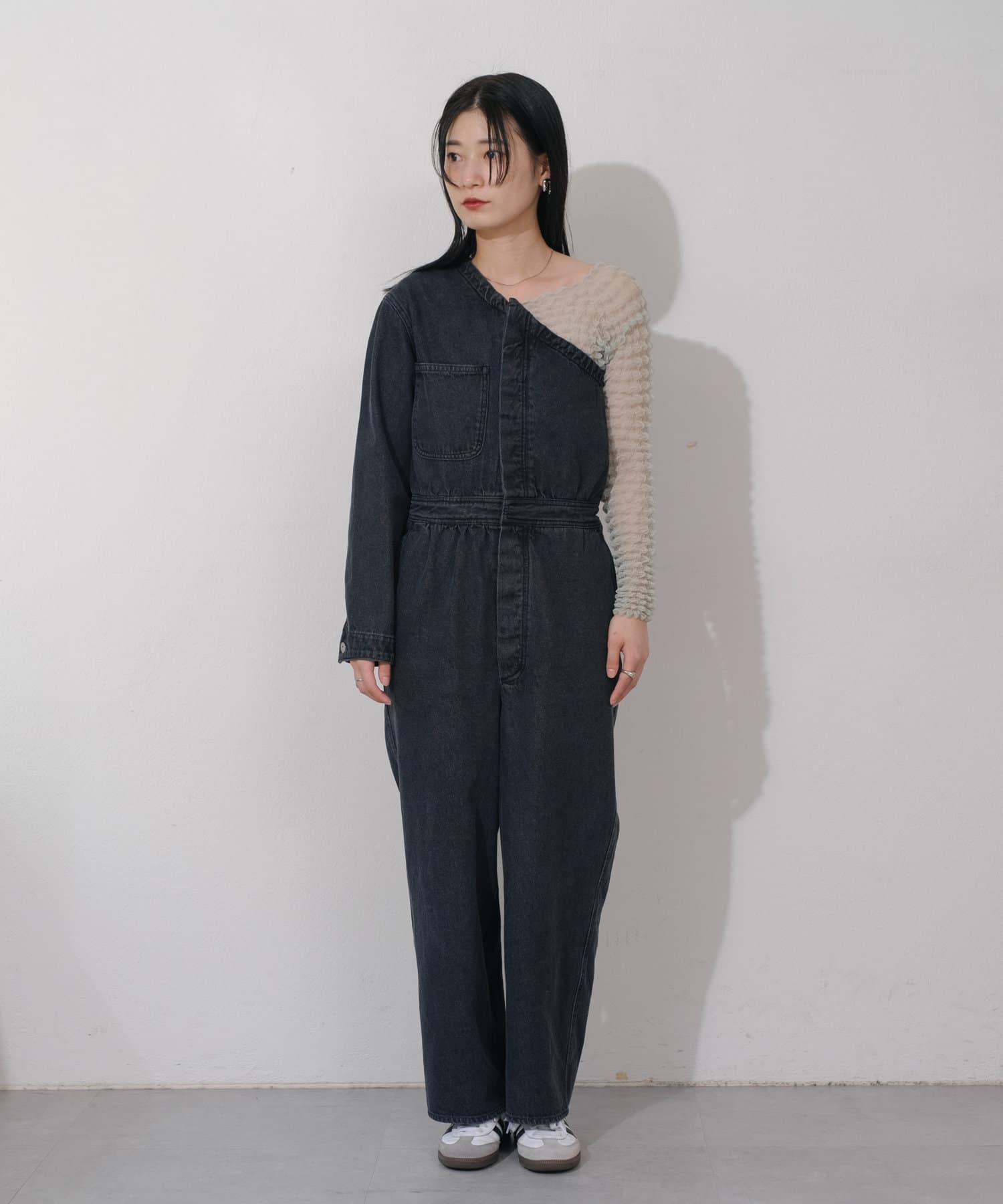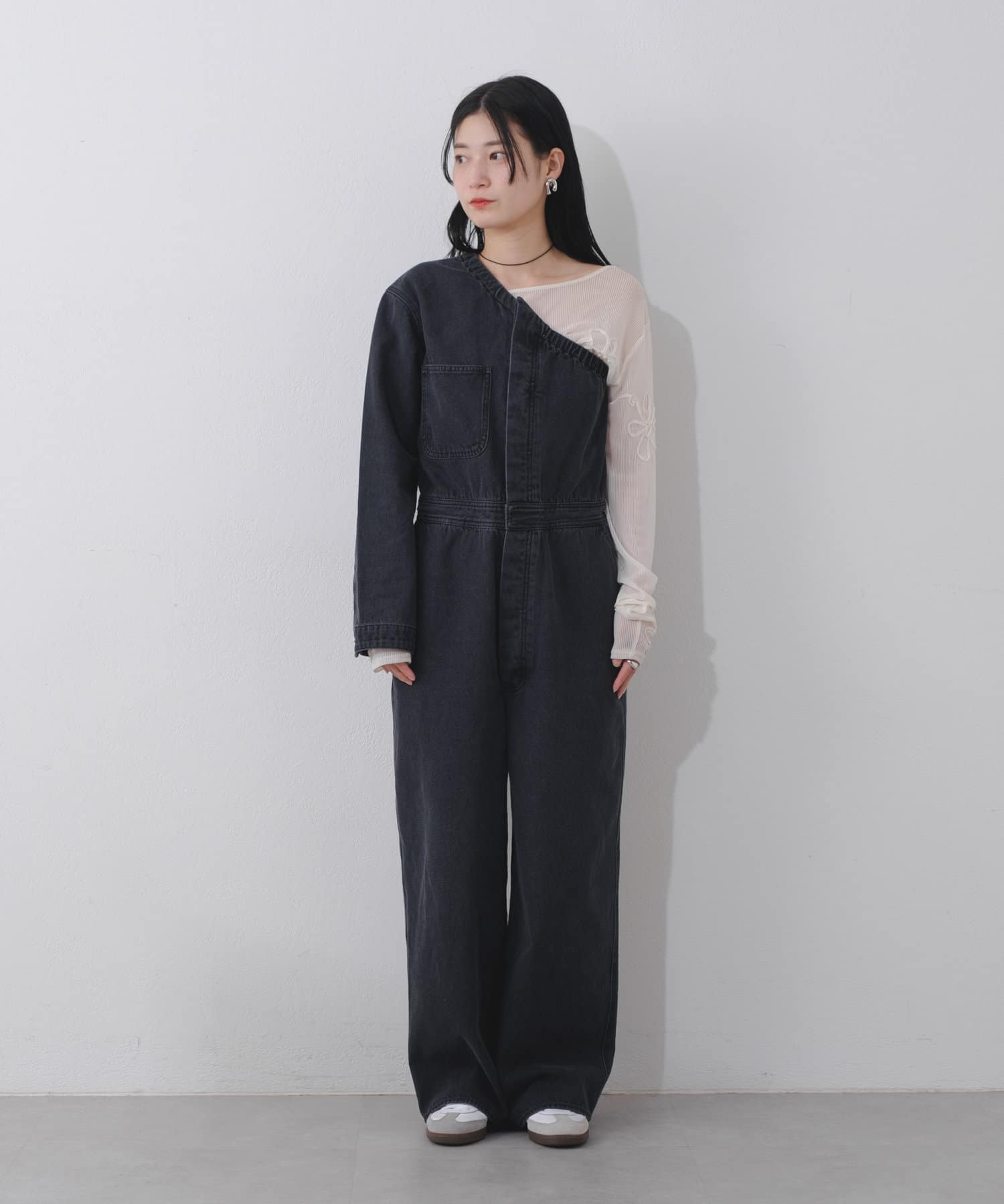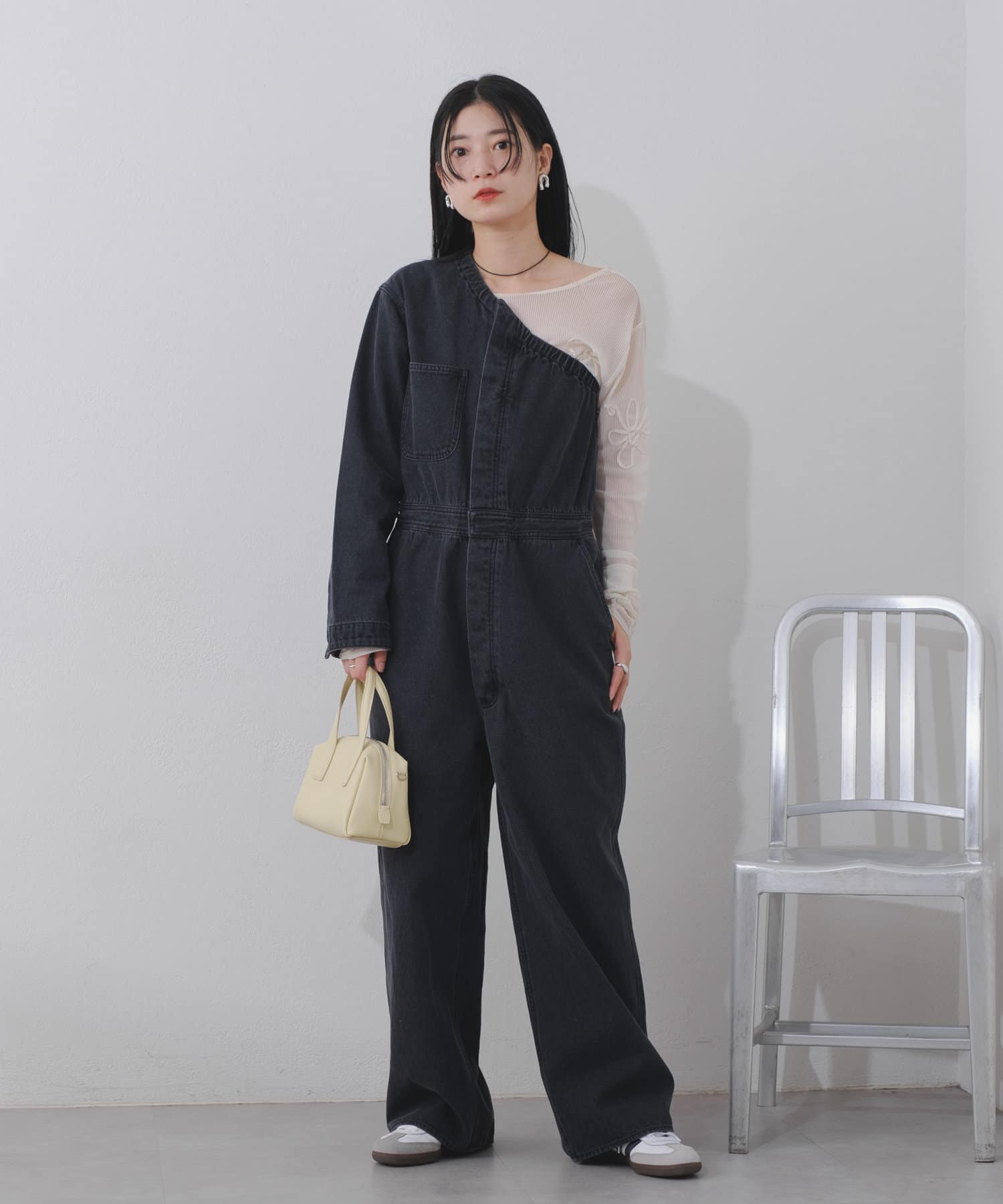 ワンショルデザインが他と差のつくジャンプスーツ。