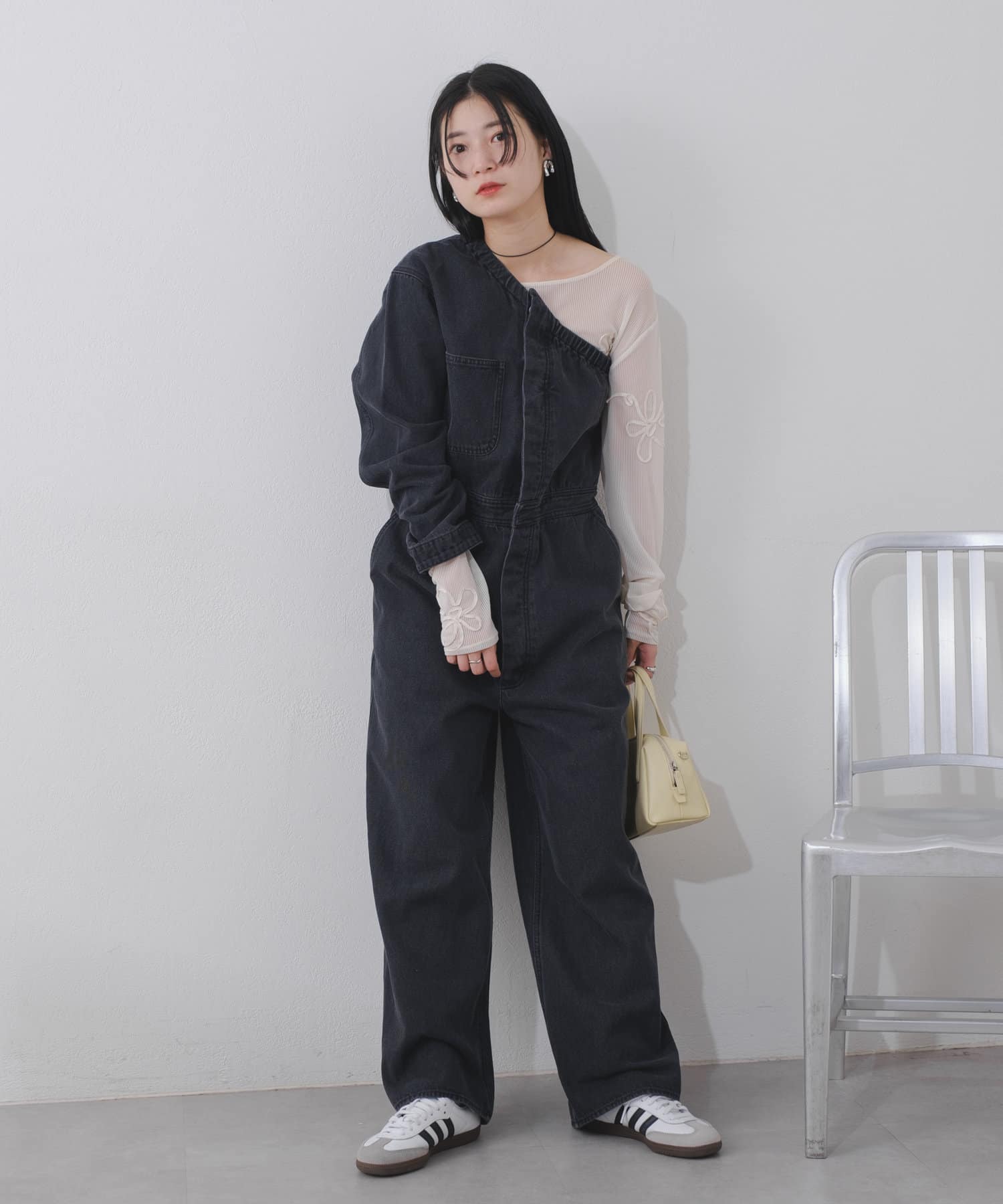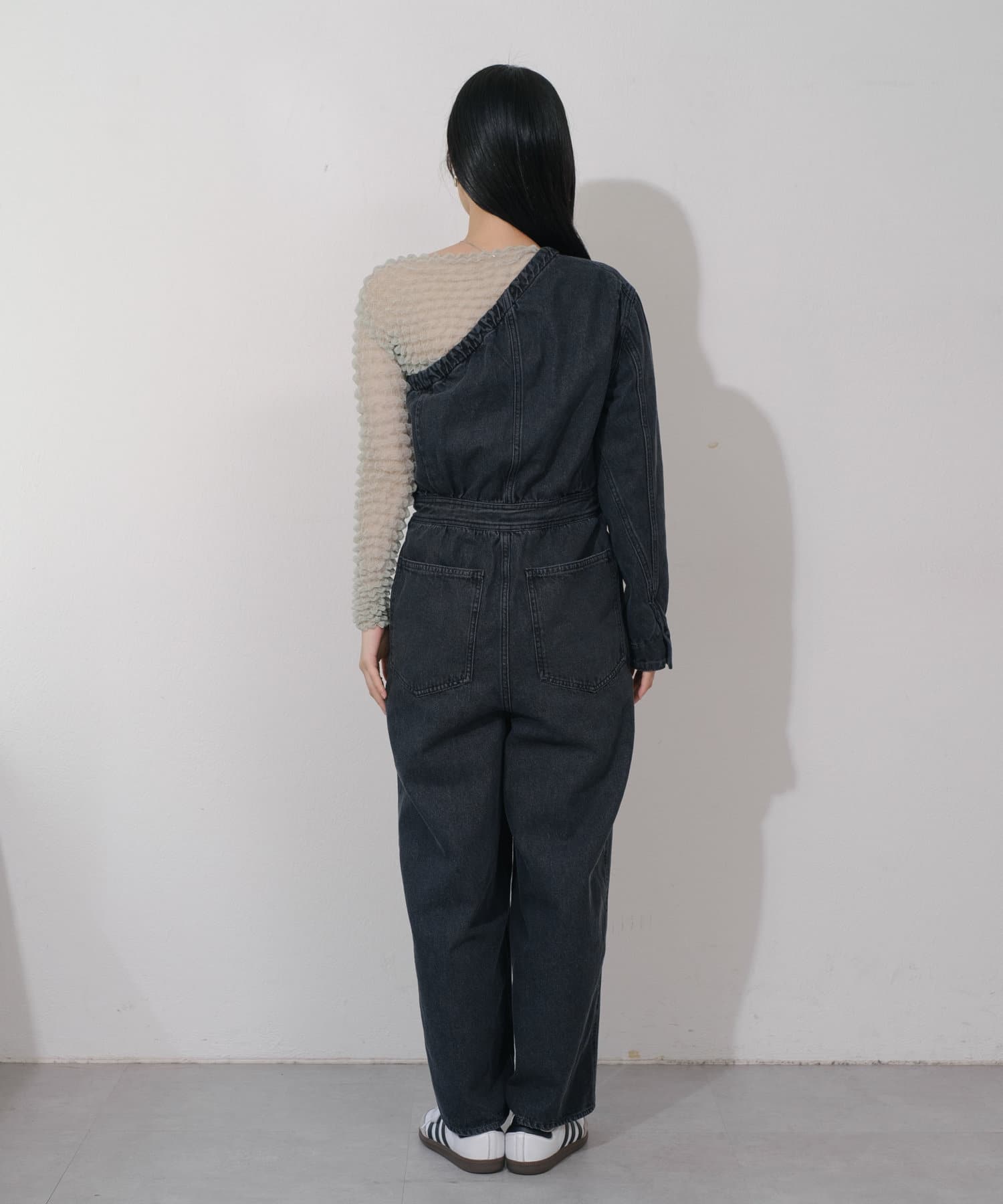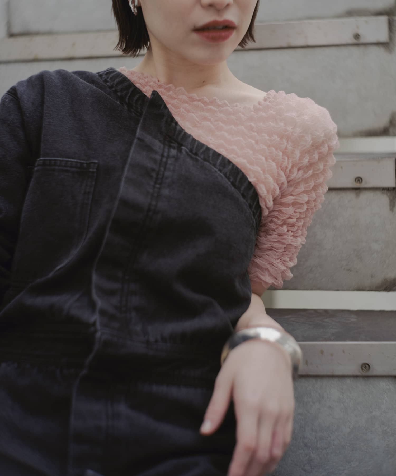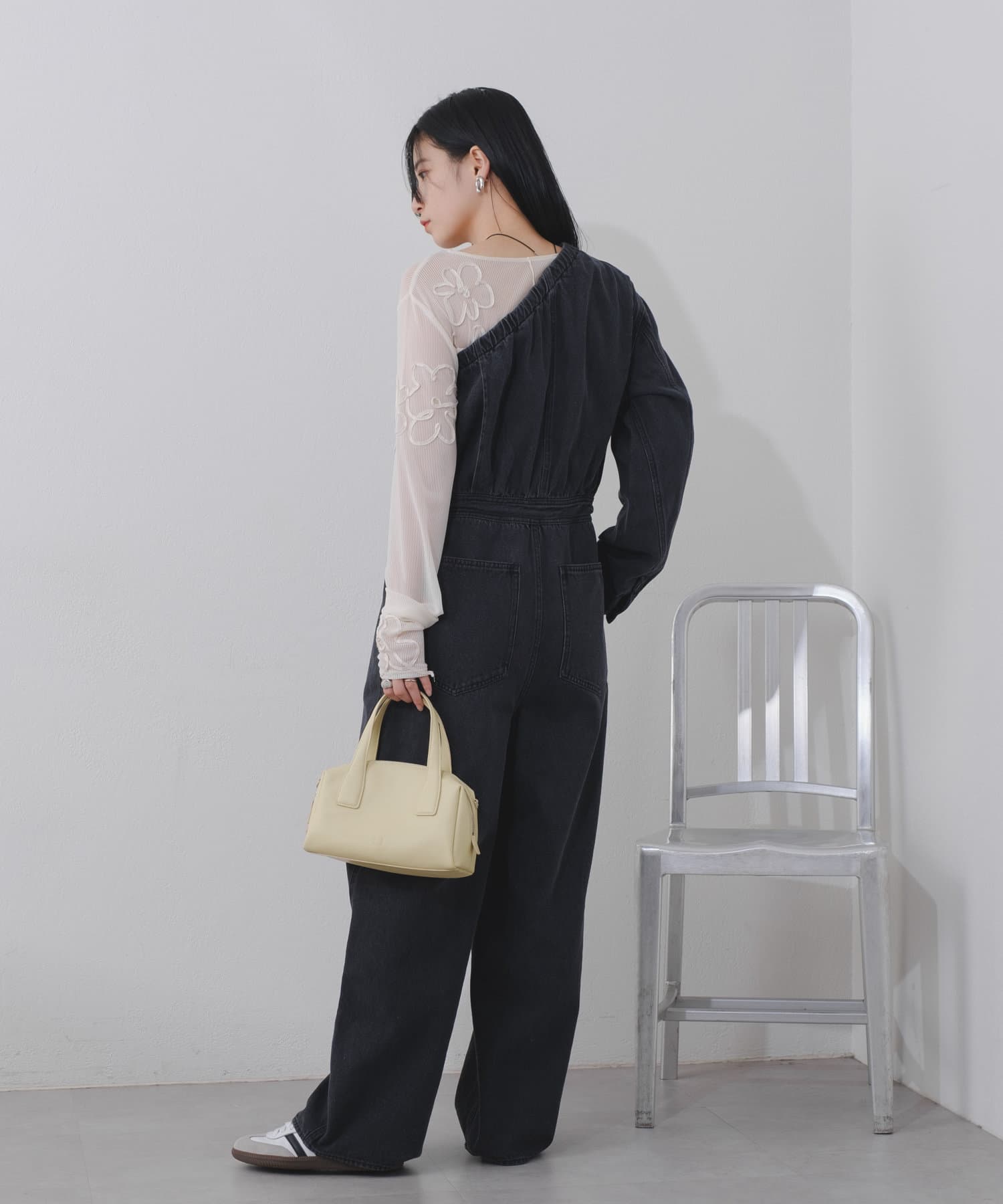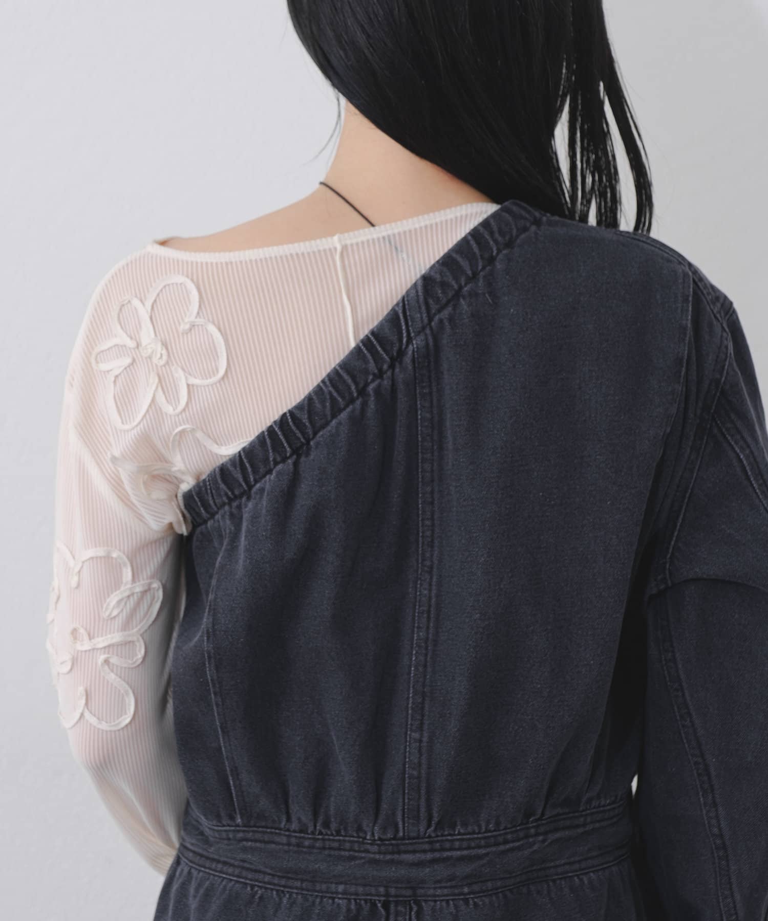 デニム素材でカジュアルになりがちですがワンショルダーなので女性らしく着ていただけます。