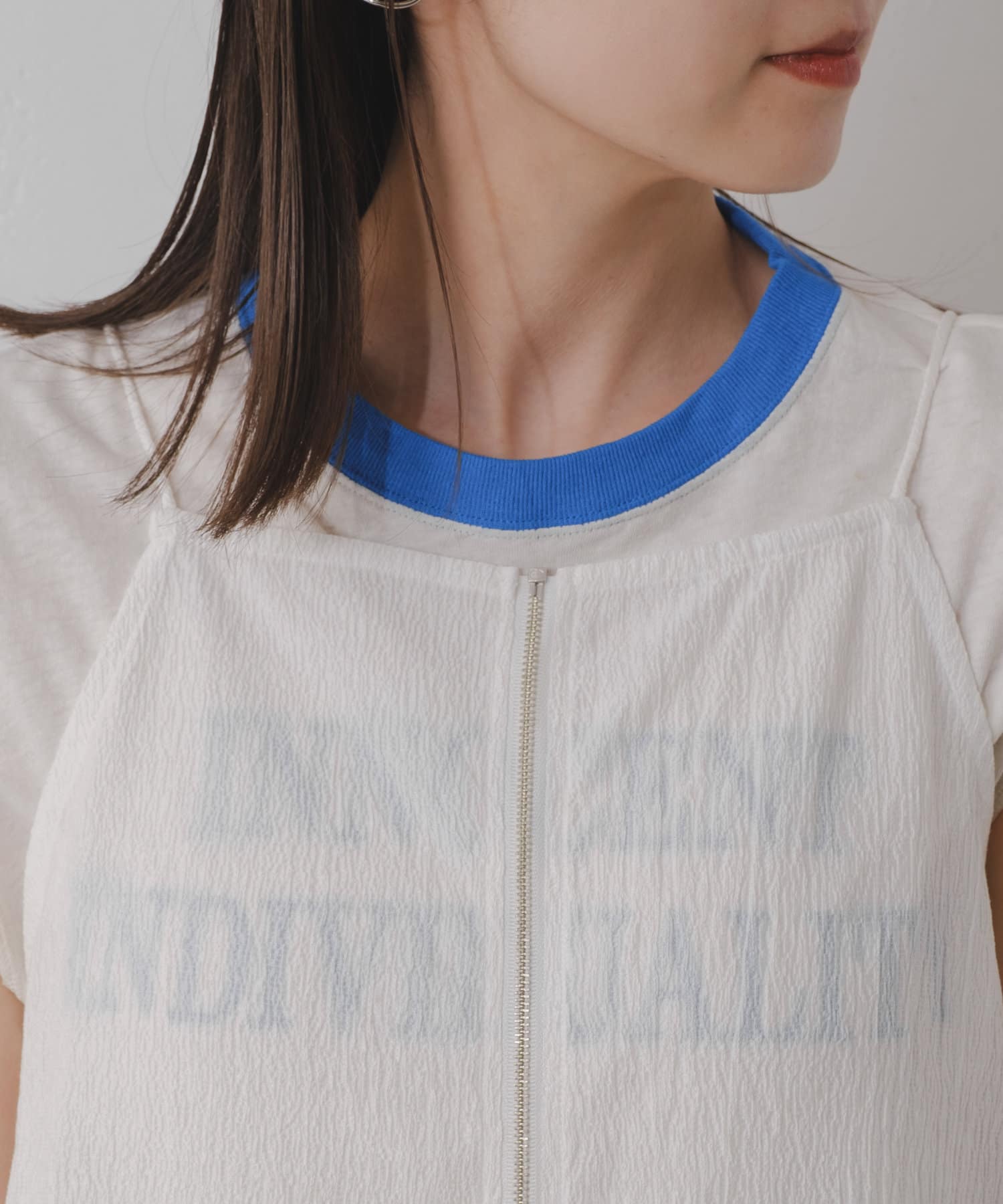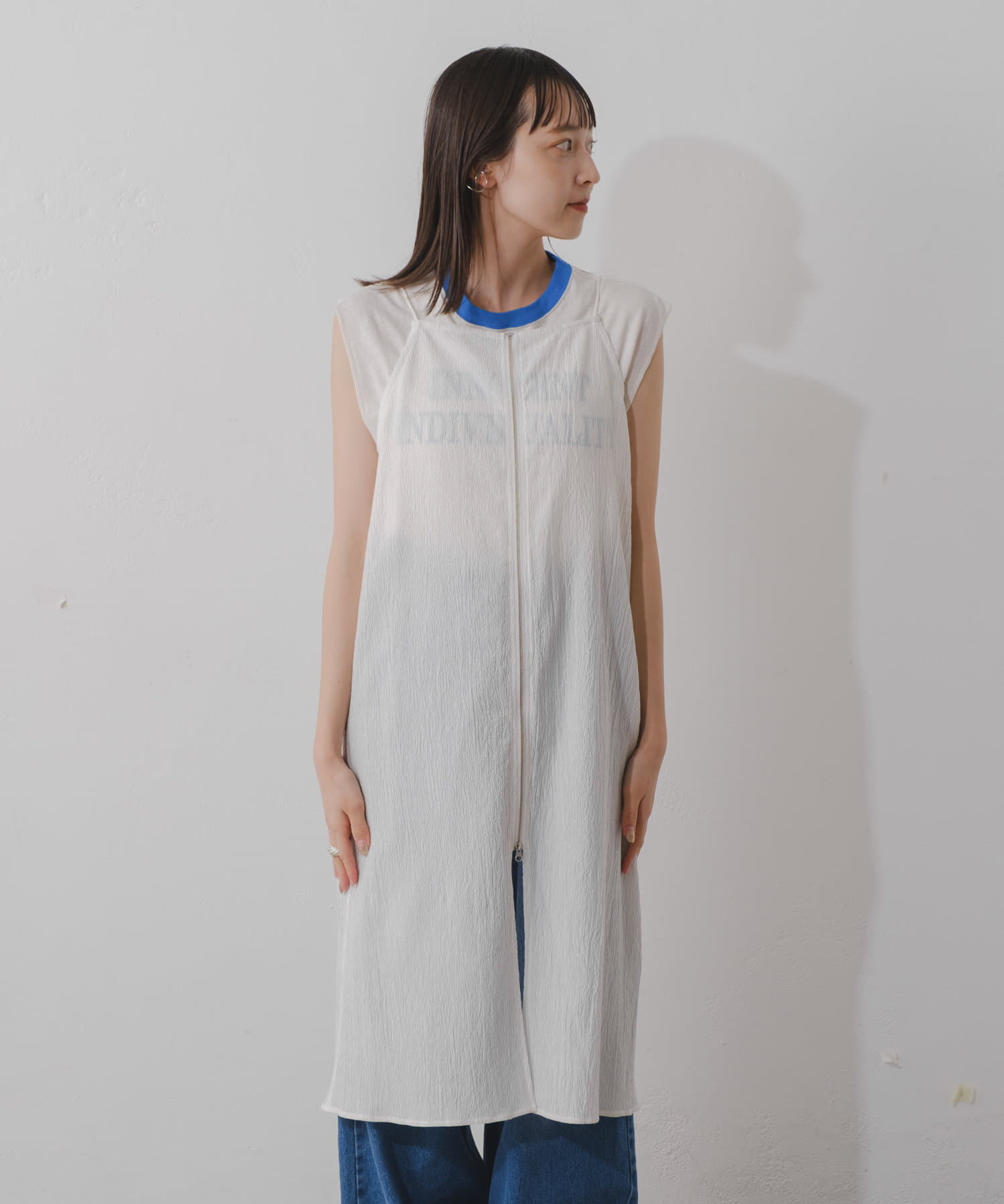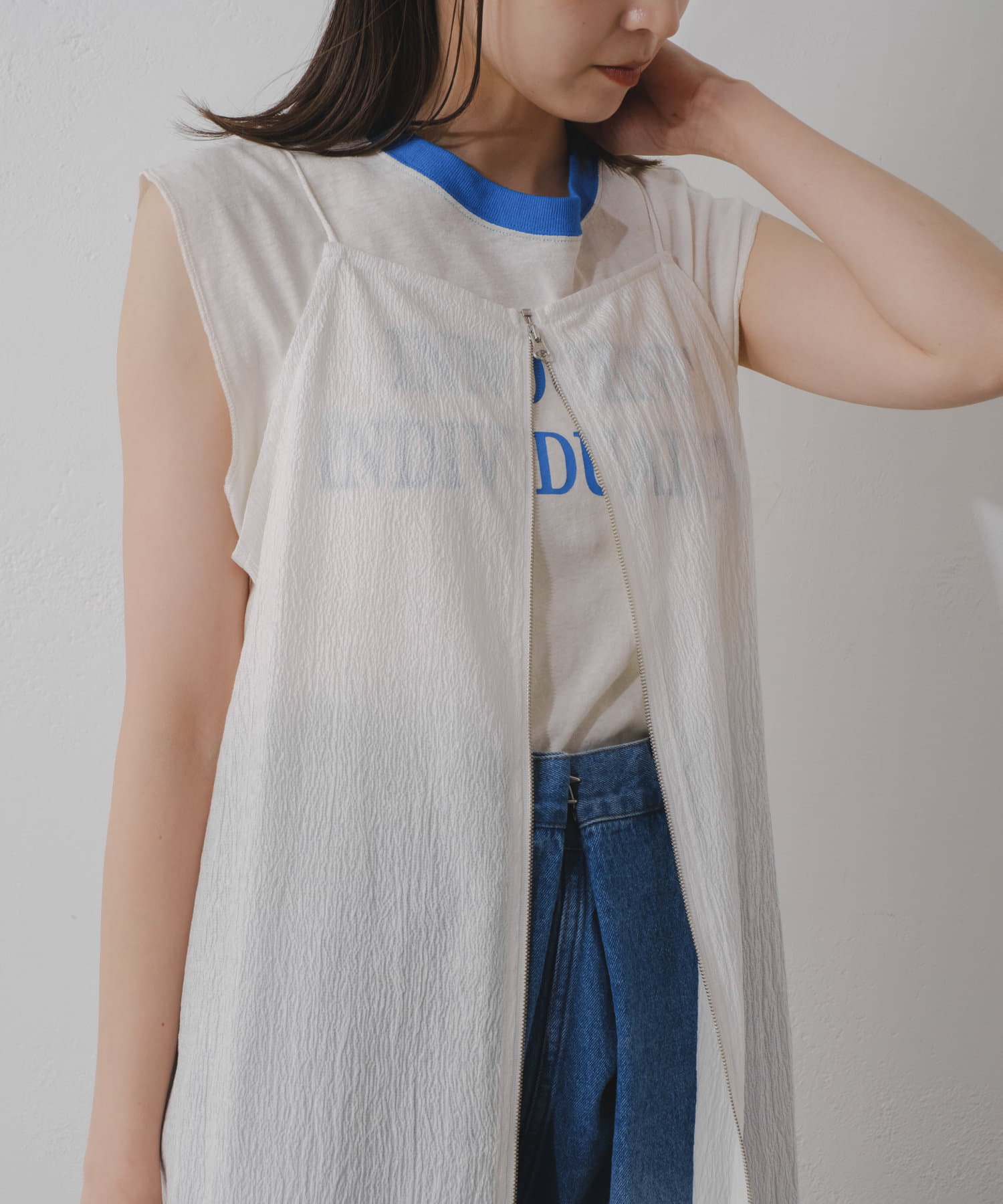 透け感があるのでパンツとのレイヤードスタイルがオススメです。