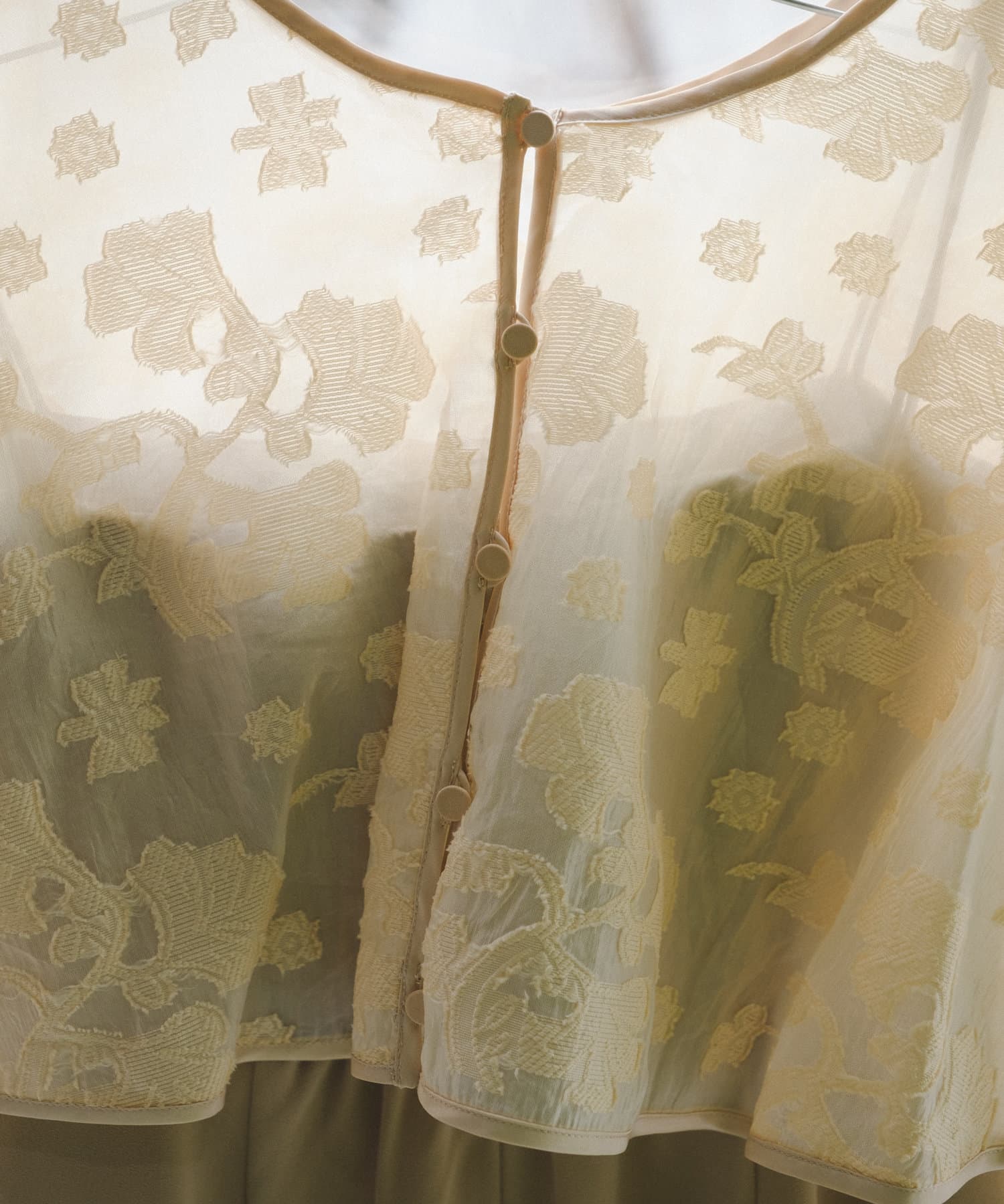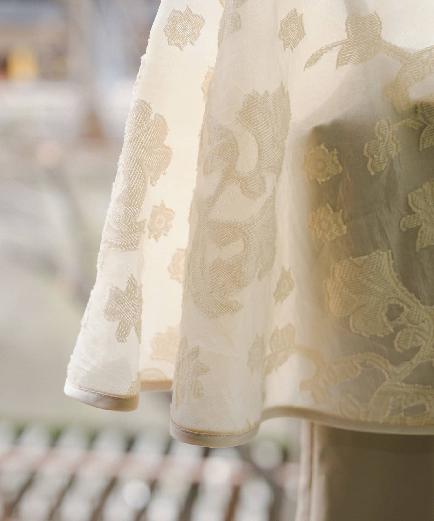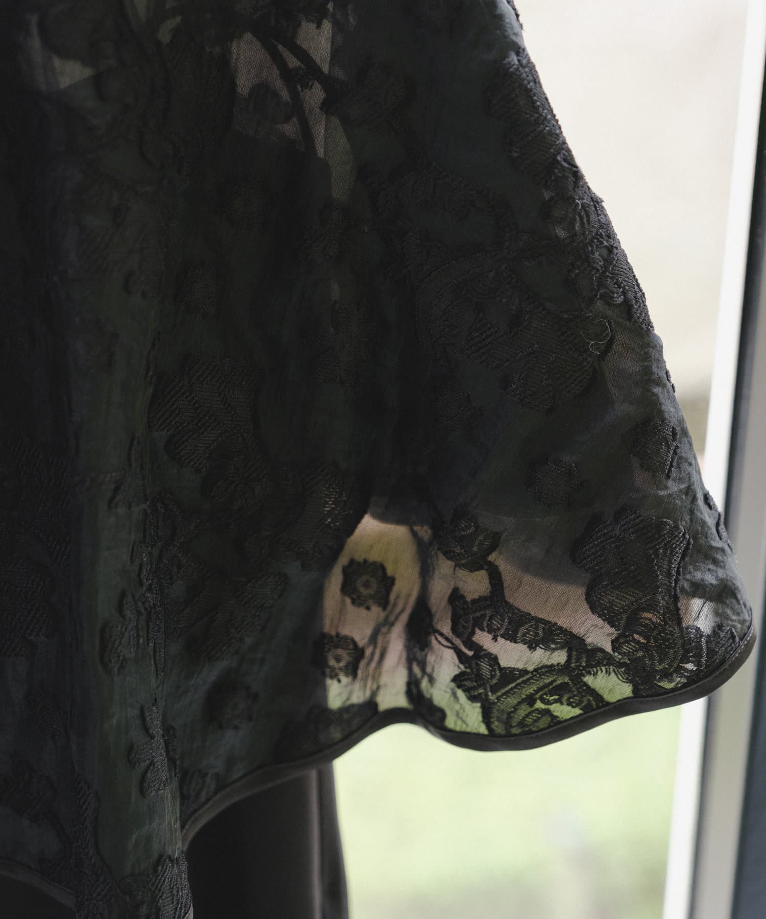 ケープには裏地がついている為、高級感ある透け感です。