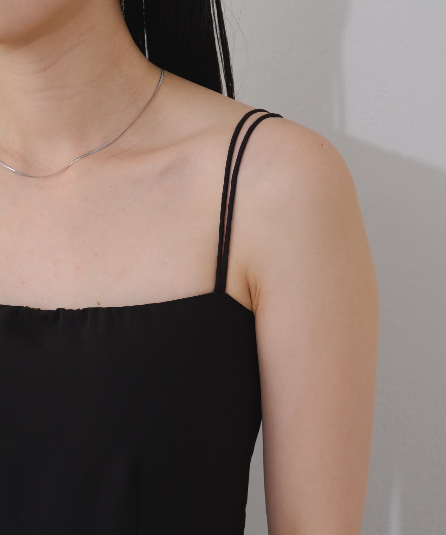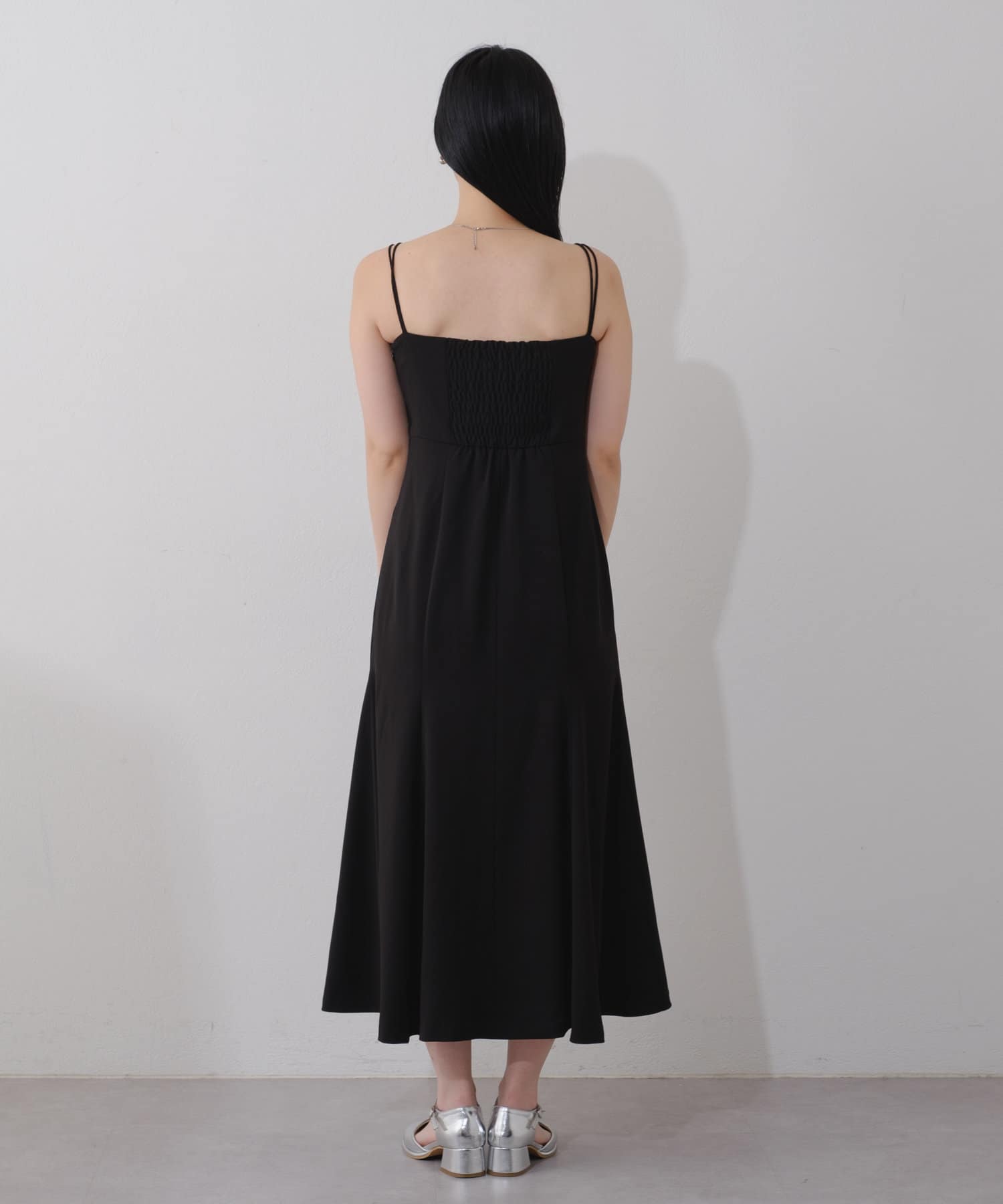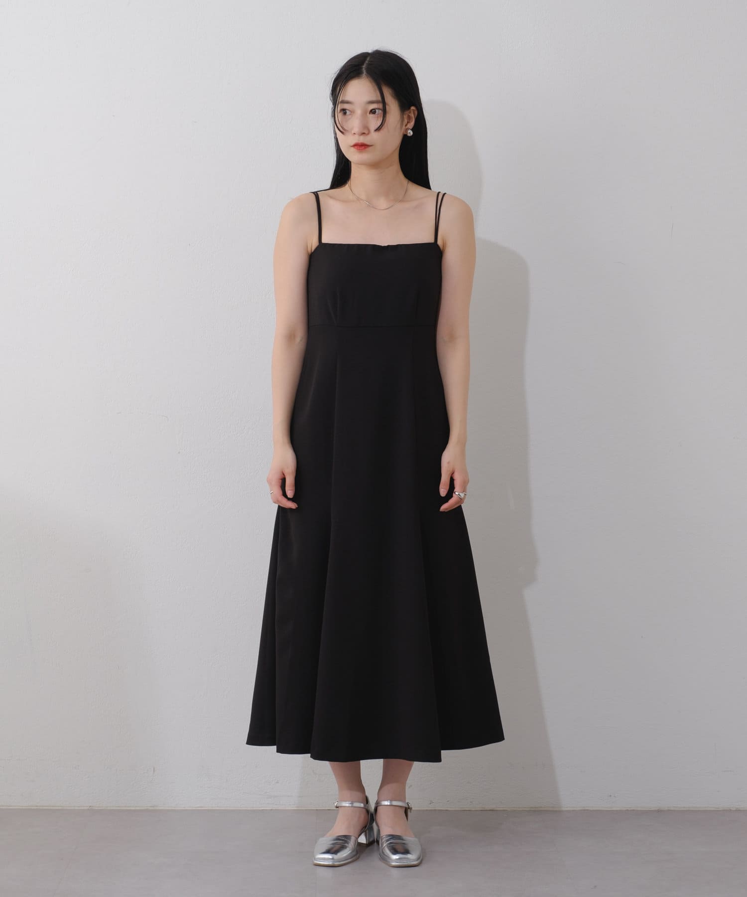 適度な光沢感が高見えするキャミソールワンピース。