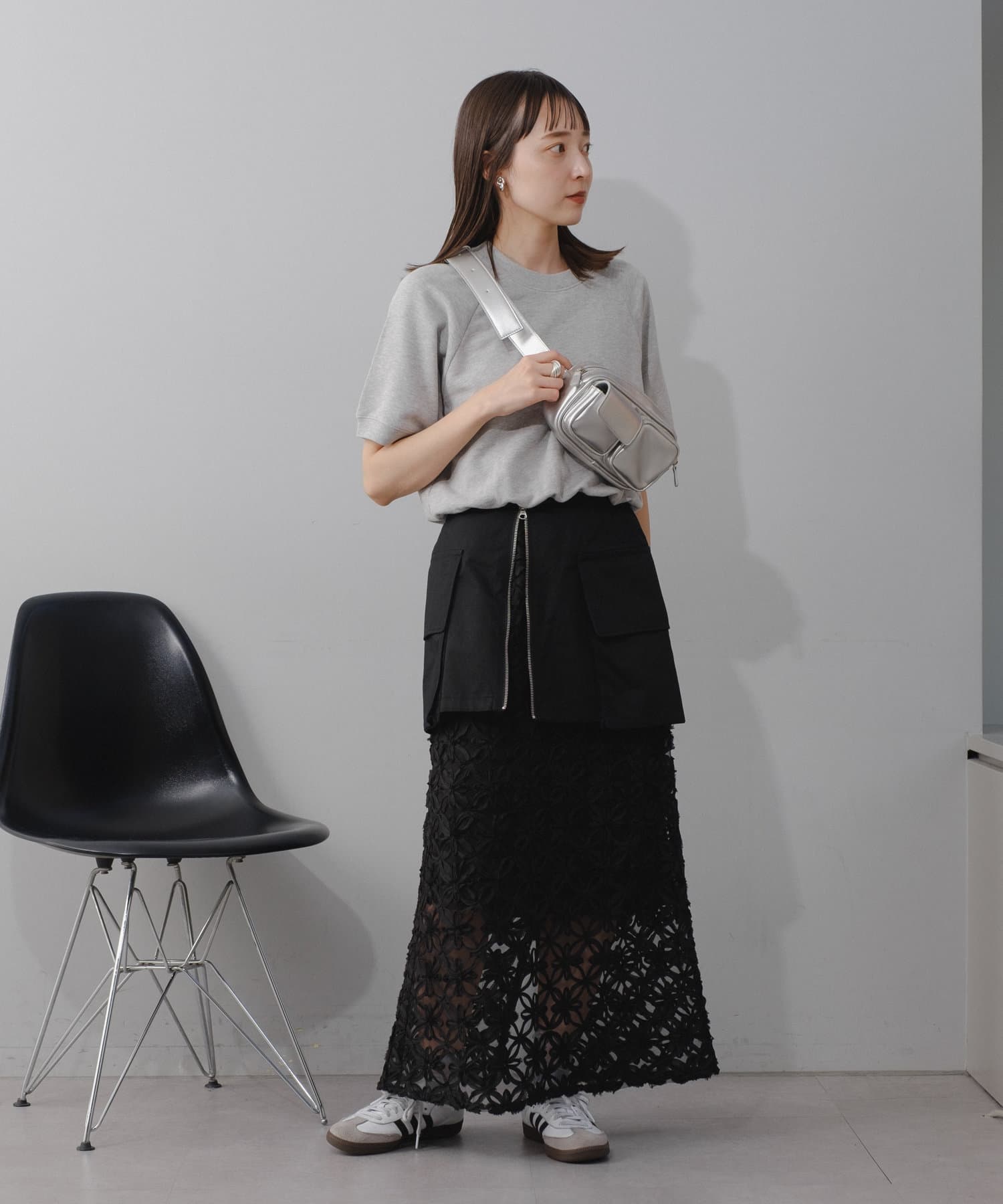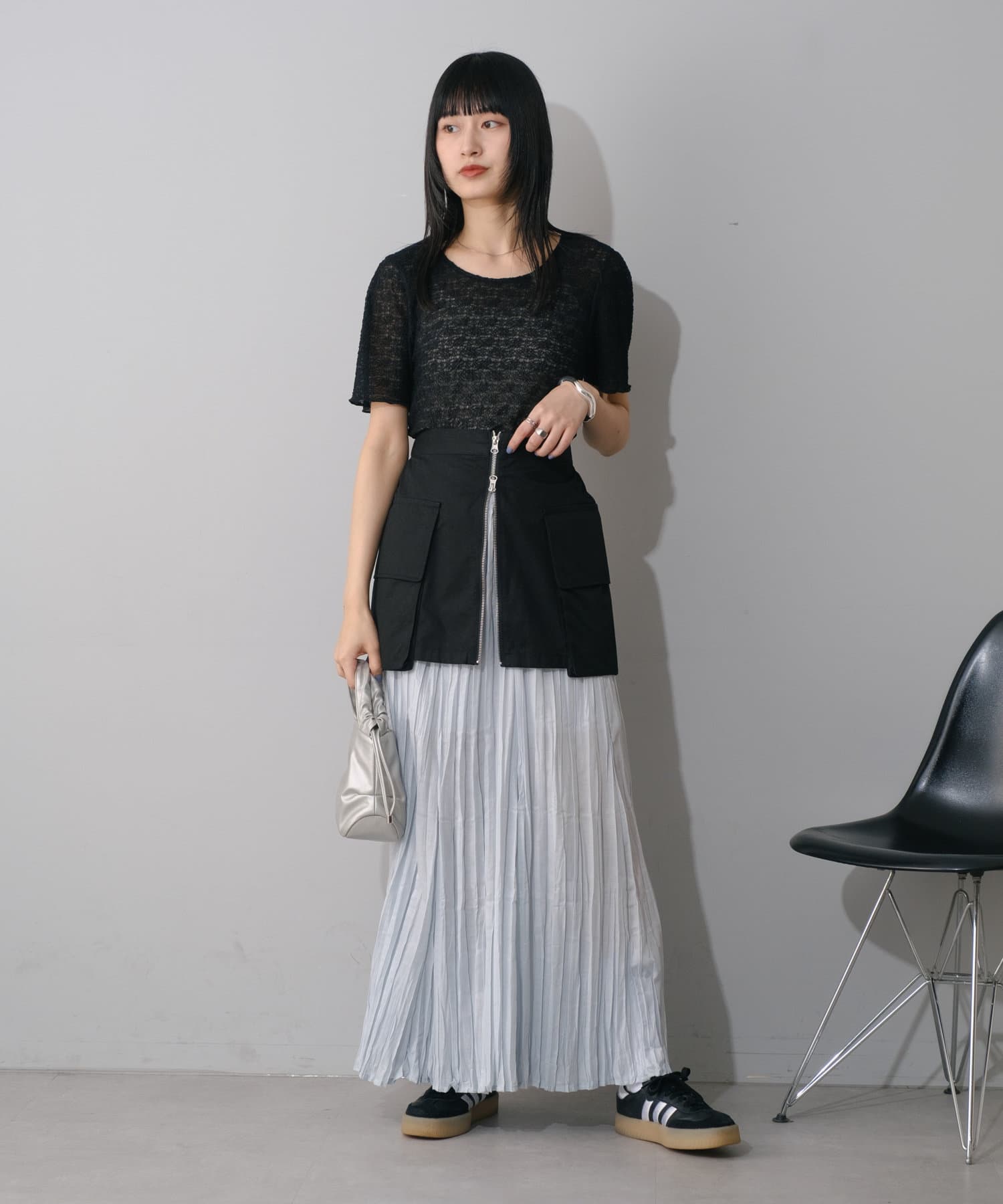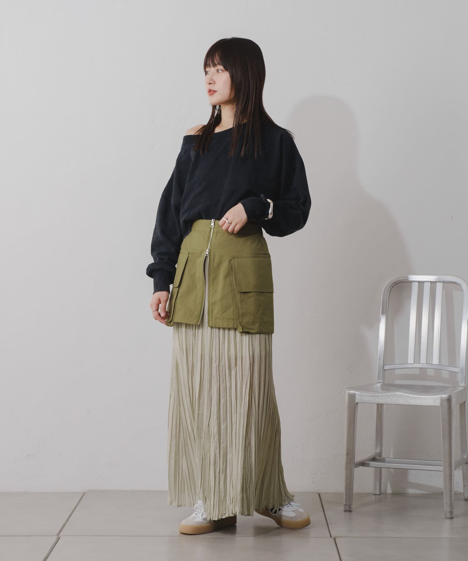 ダブルファスナーなのでお好みのスリット丈でアレンジが可能です。