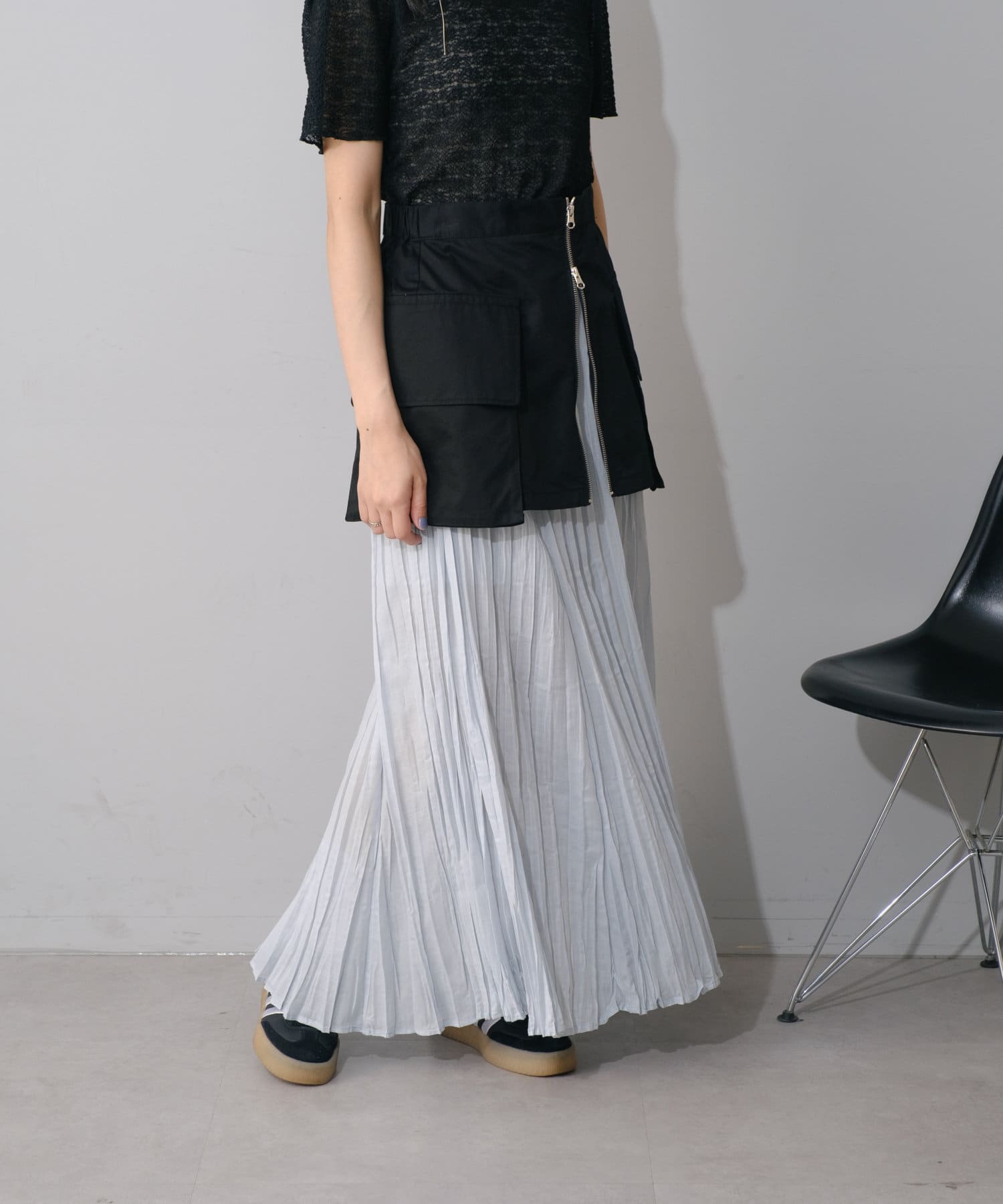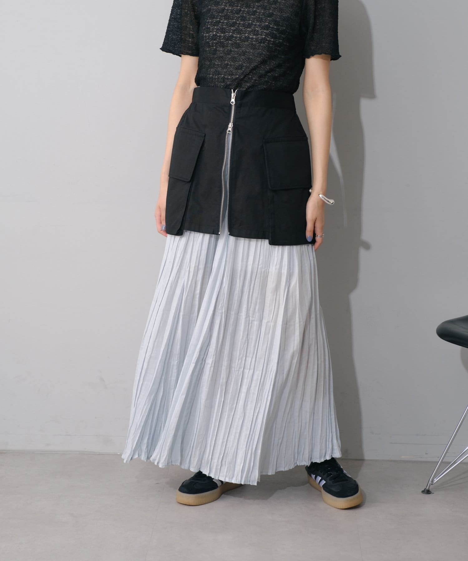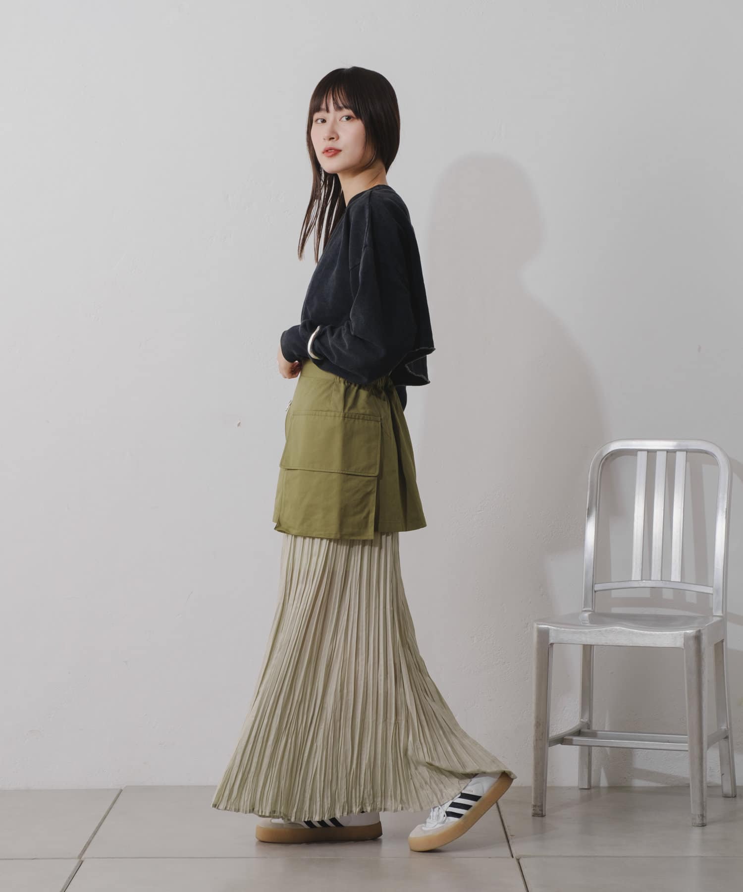 持っているスカートに合わせて重ねるとおしゃれ度がアップします!デニムパンツの上にも使えそうです!