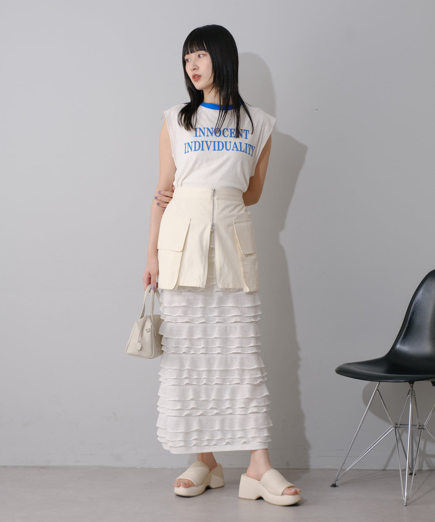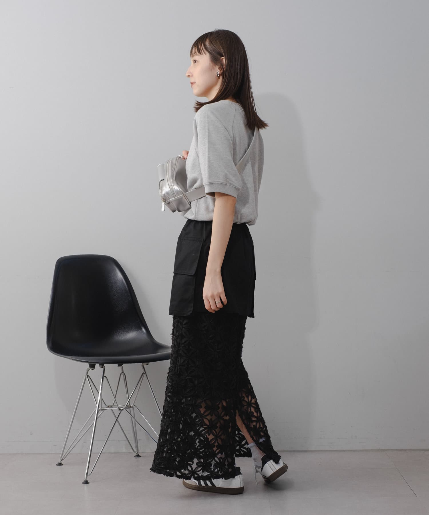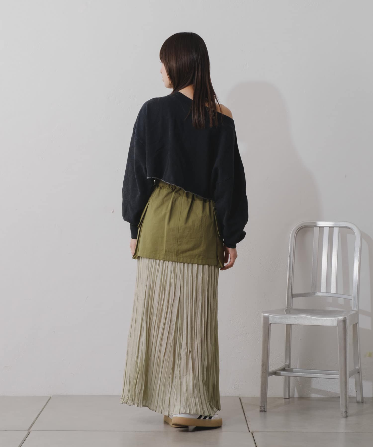 持っているスカートに合わせて重ねるとおしゃれ度がアップします!デニムパンツの上にも使えそうです!
