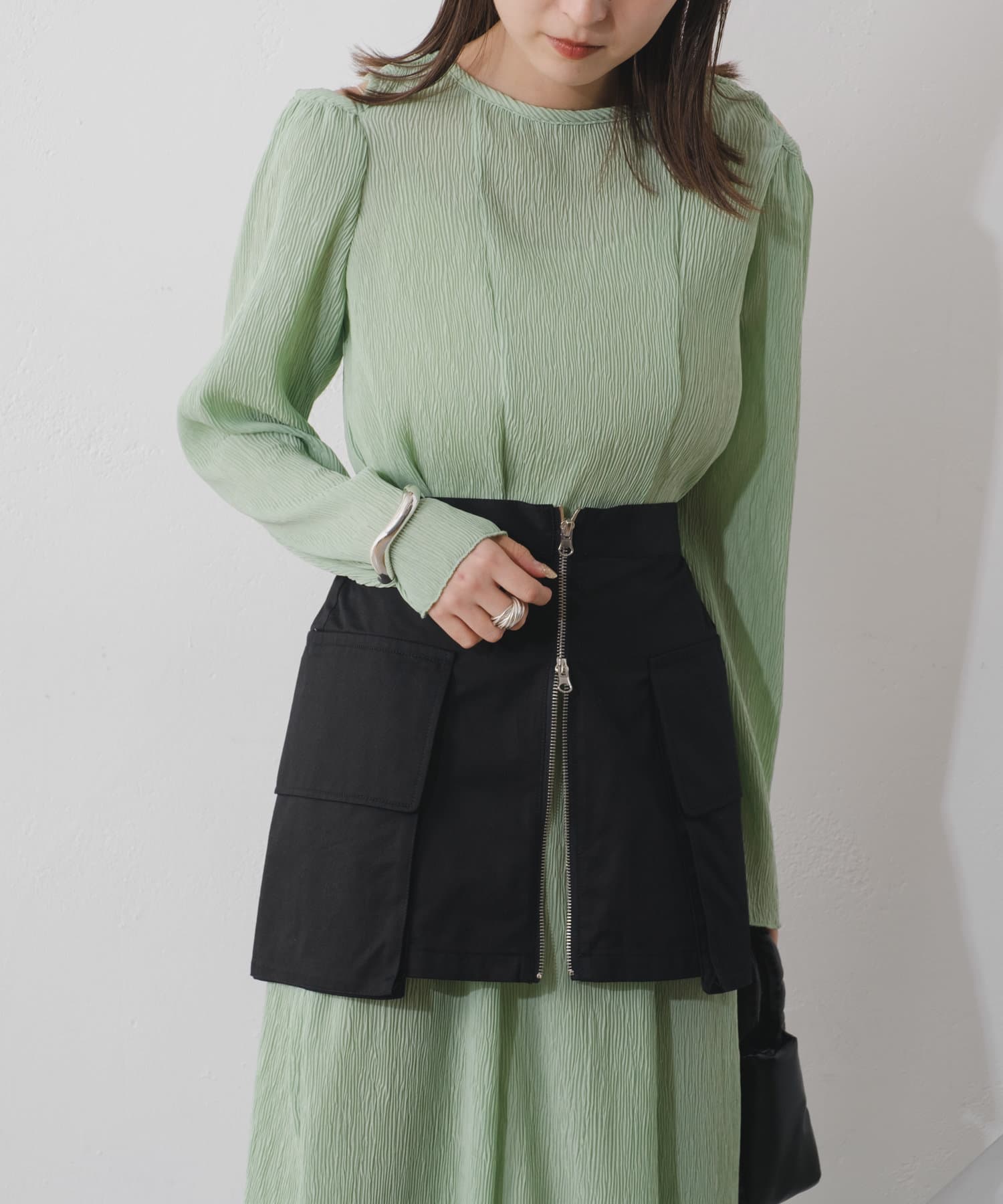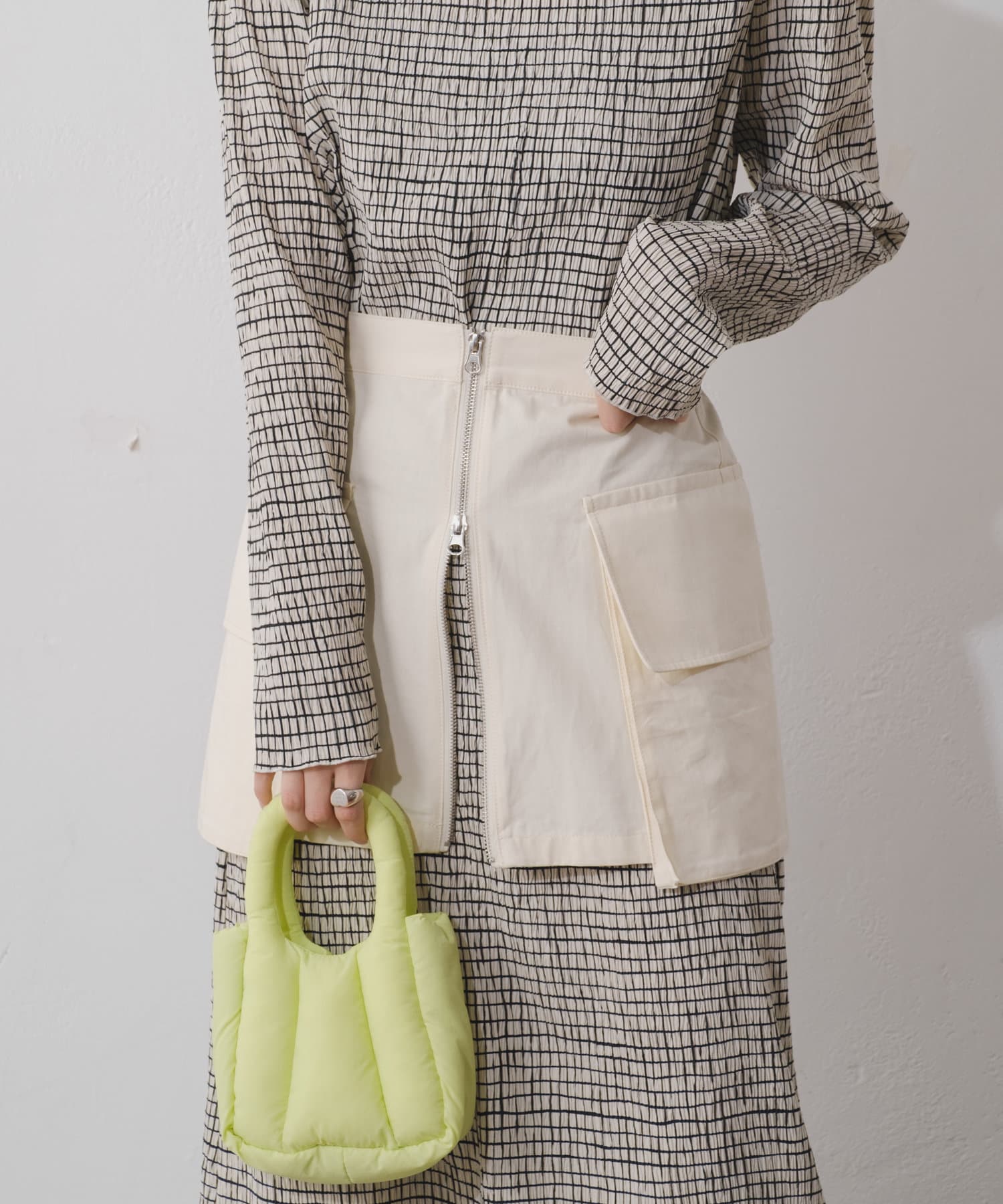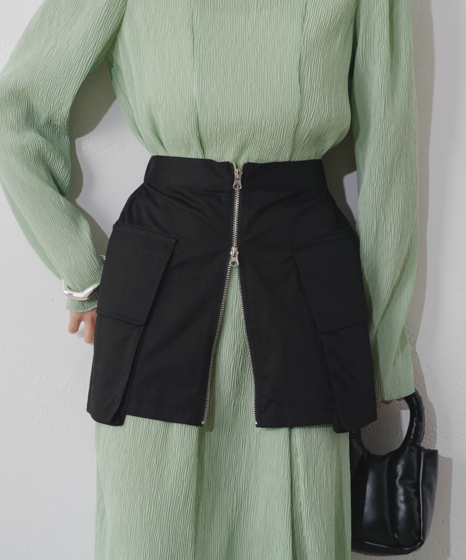 ミニ丈なのでファスナーを全て閉めることでミニスカート風にもお楽しみいただけます。