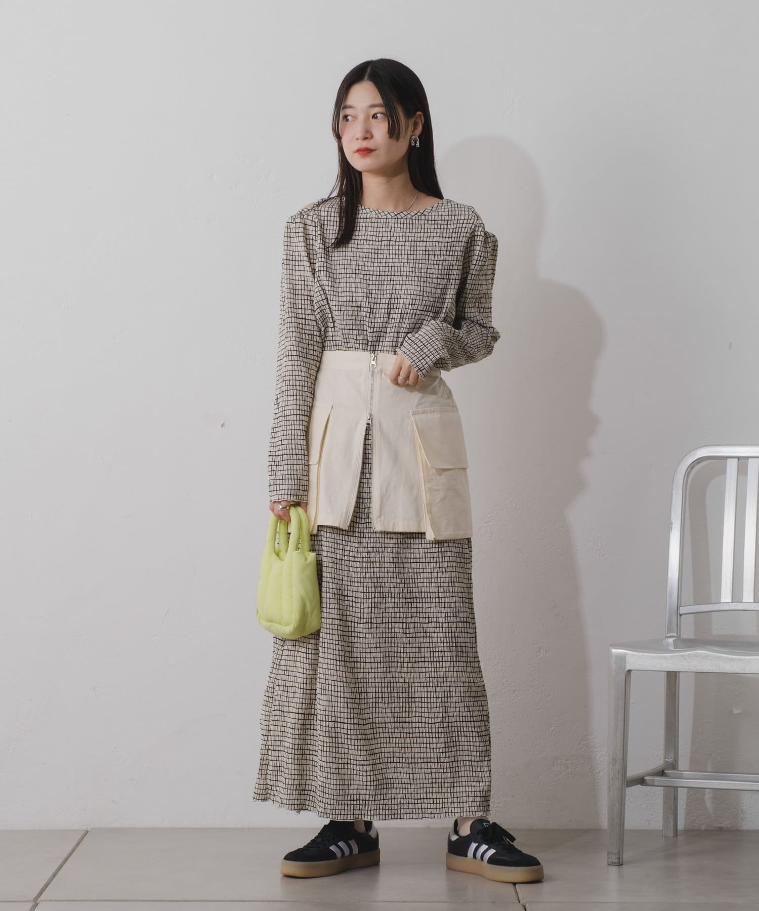 Iラインスカートやワンピースの上から巻いてアクセントに。