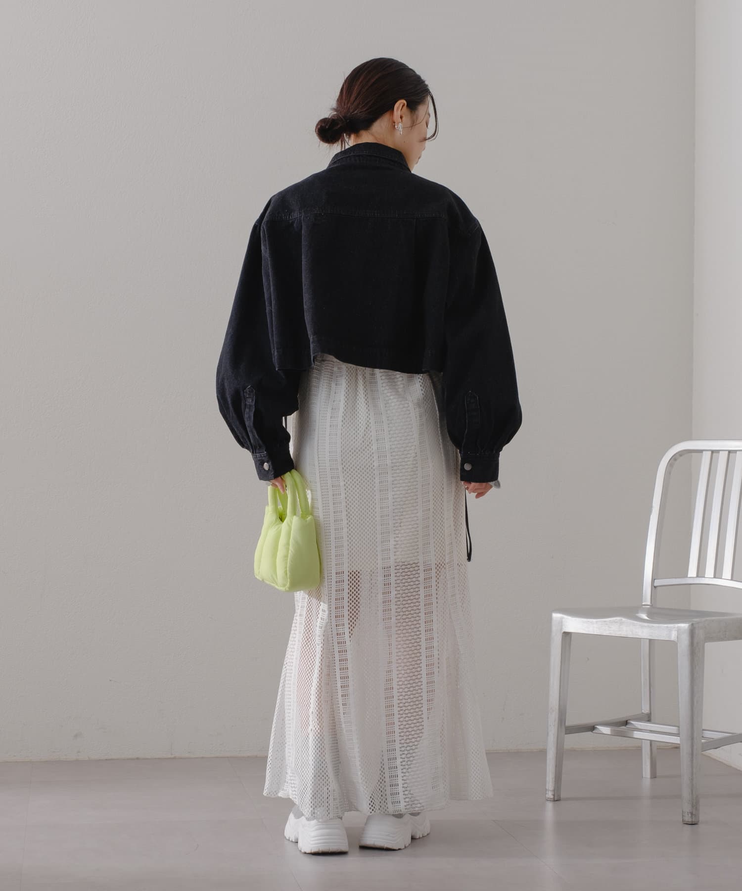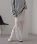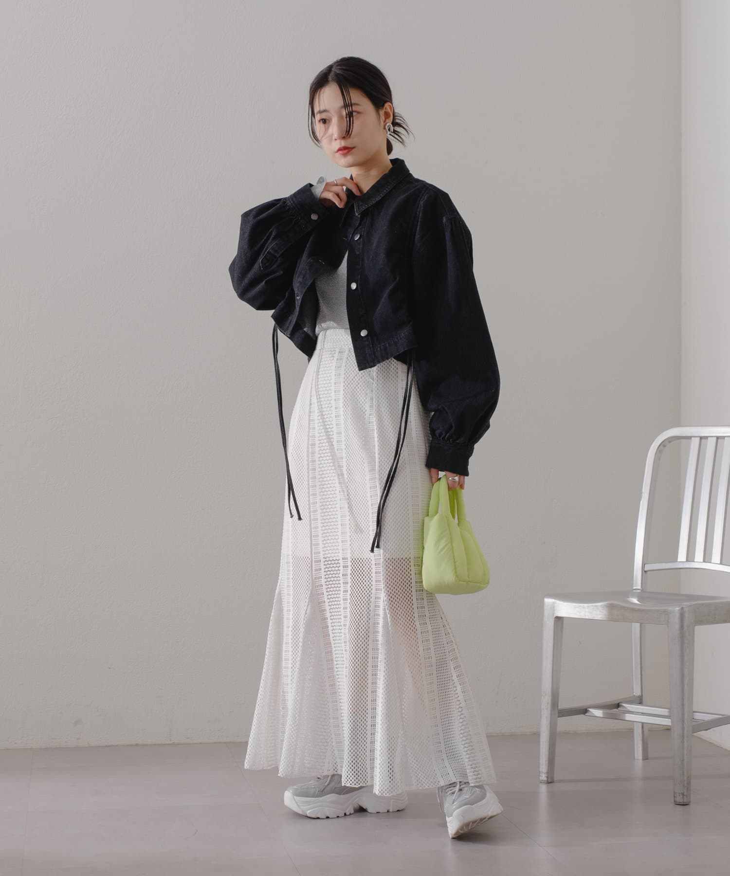 レースで軽い印象なので、ジャケットやスウェットのような生地感のあるアイテムともバランス良く着ていただけます。
