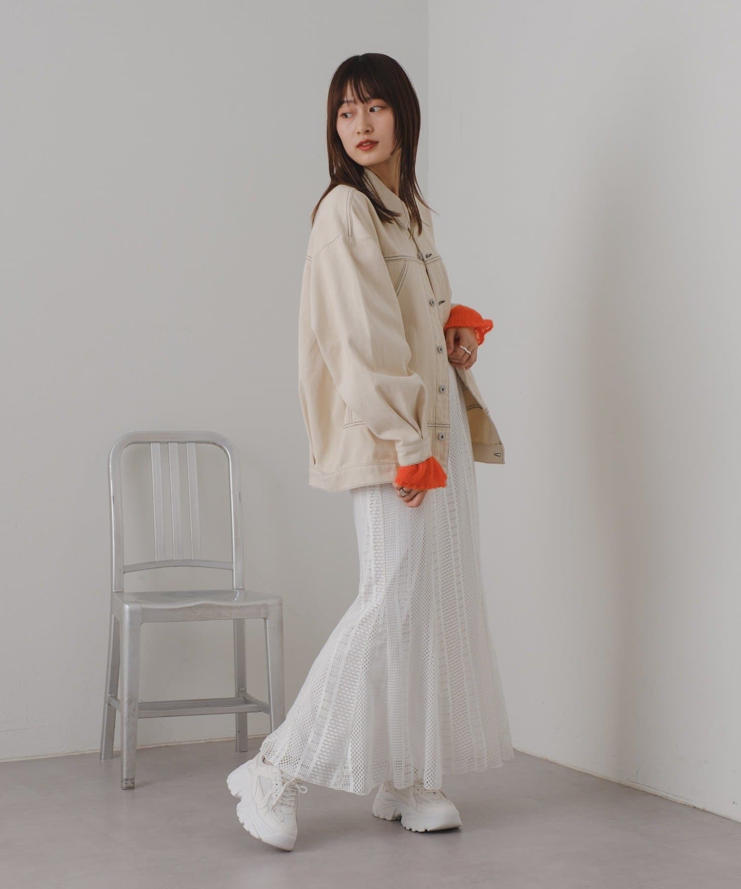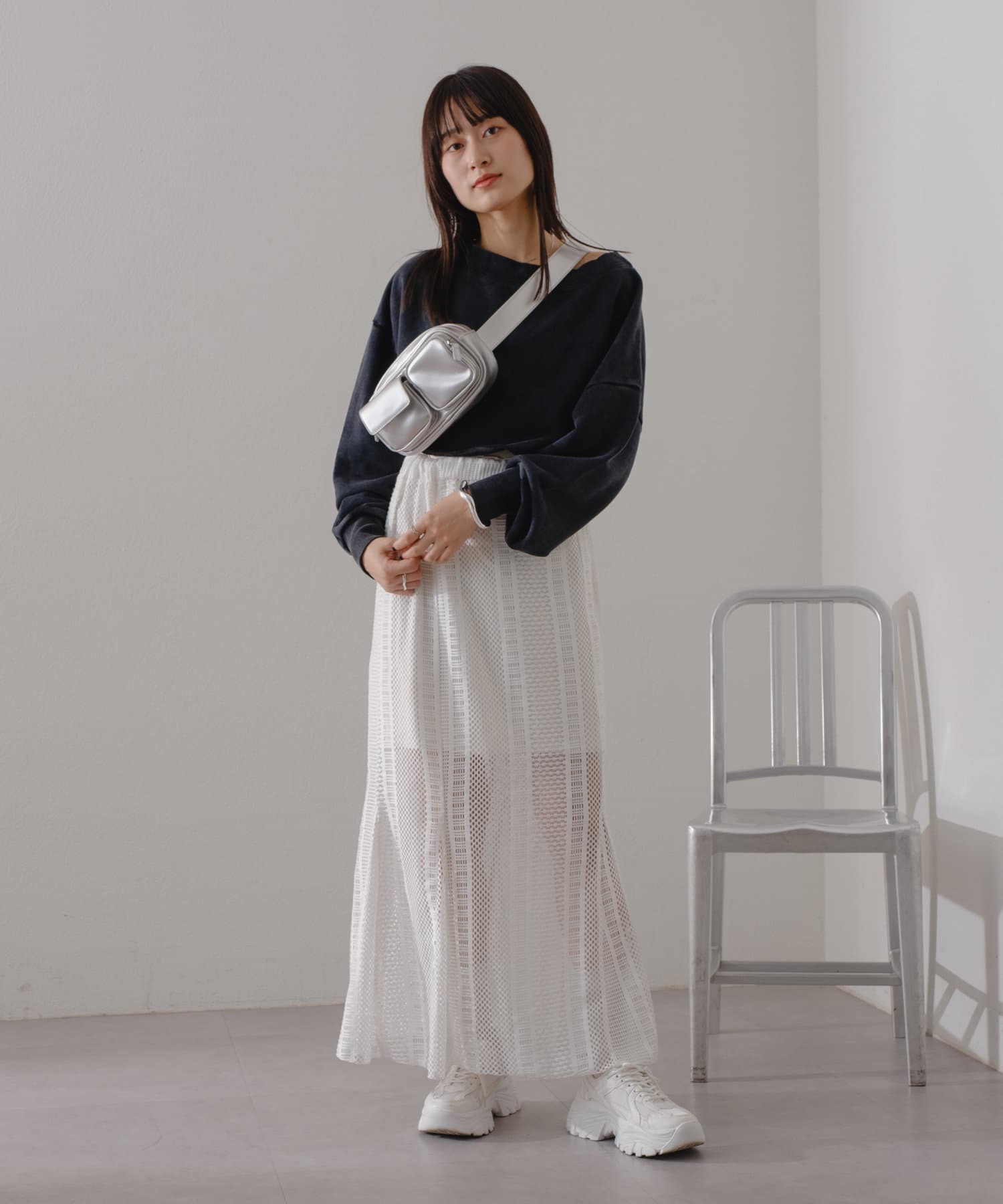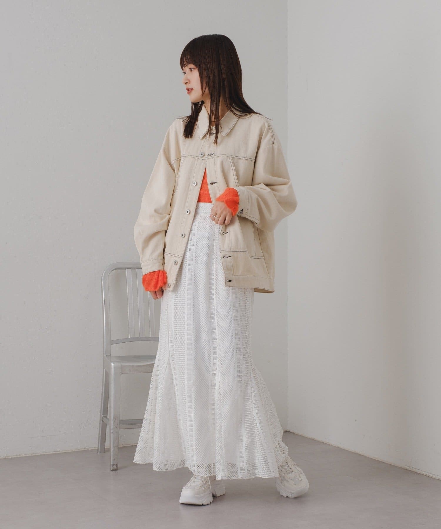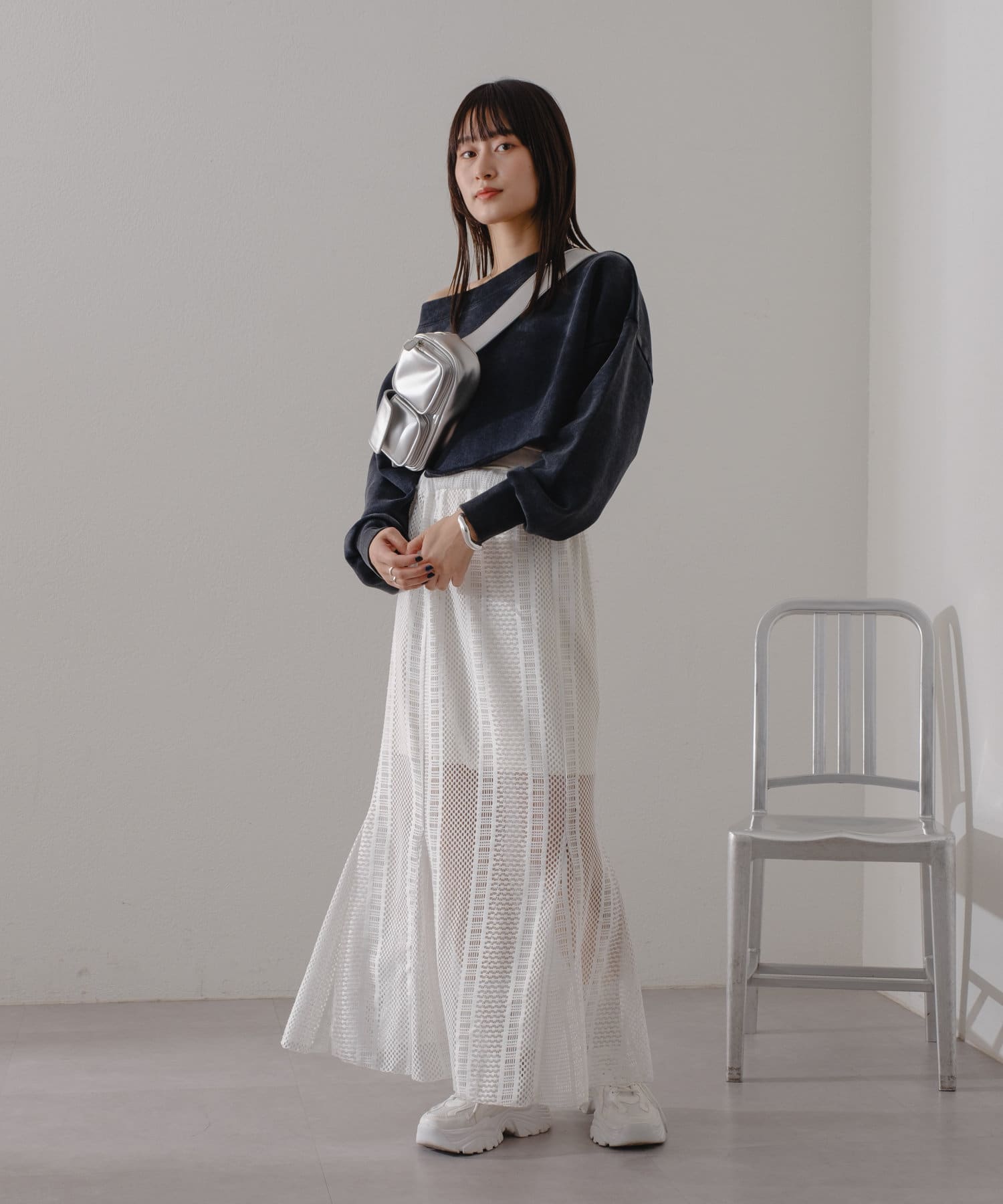 裾に向かって広がるマーメイドラインなので、オーバーサイズのトップスとの相性◎