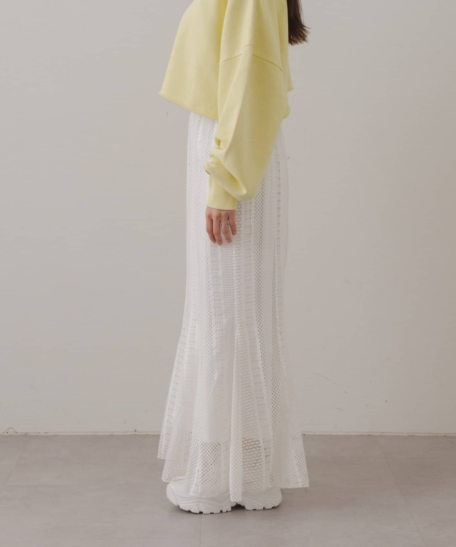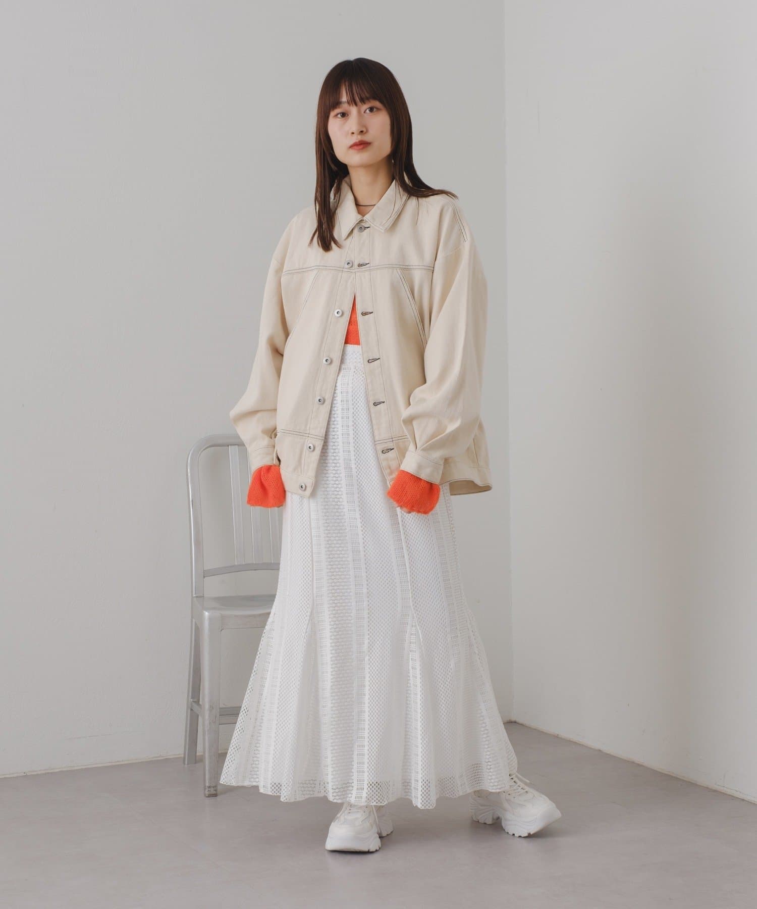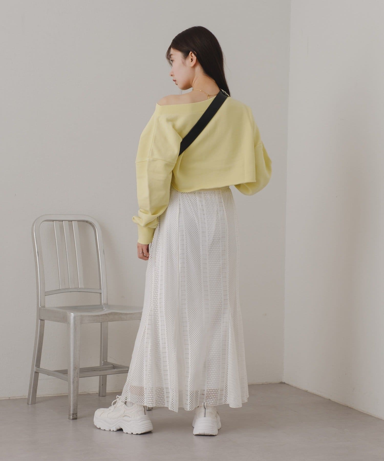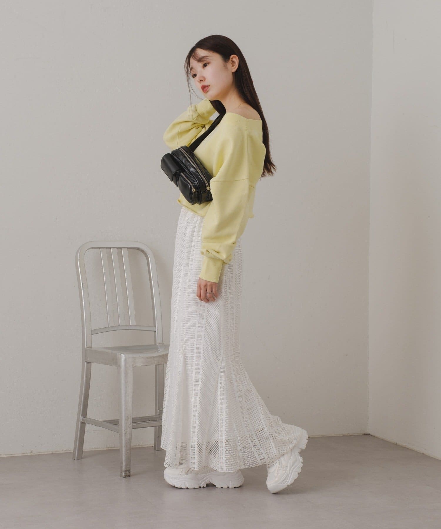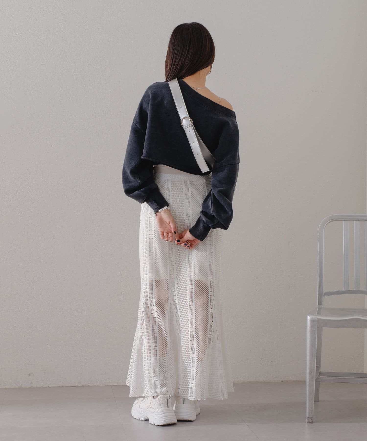 裾に向かって広がるマーメイドラインなので、オーバーサイズのトップスとの相性◎