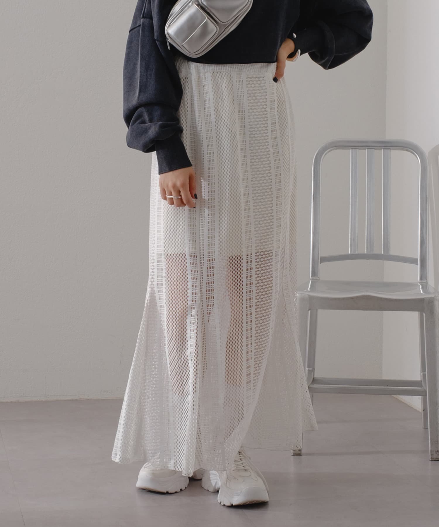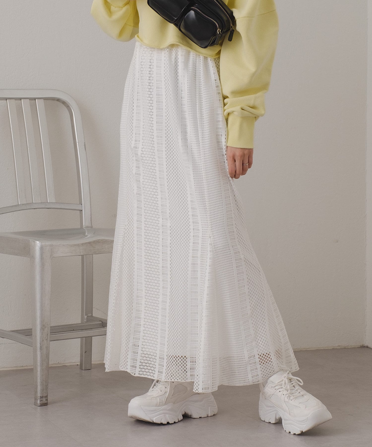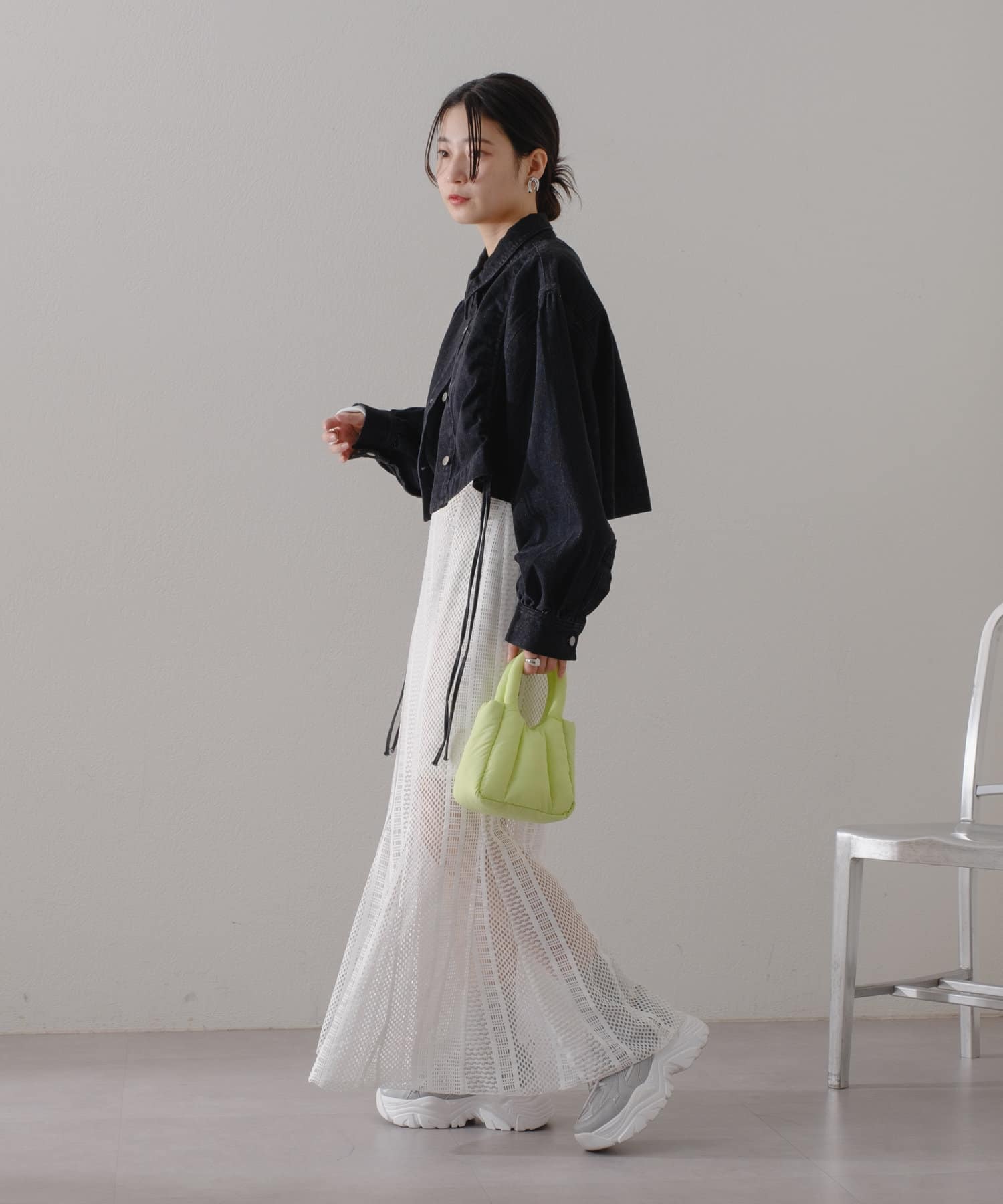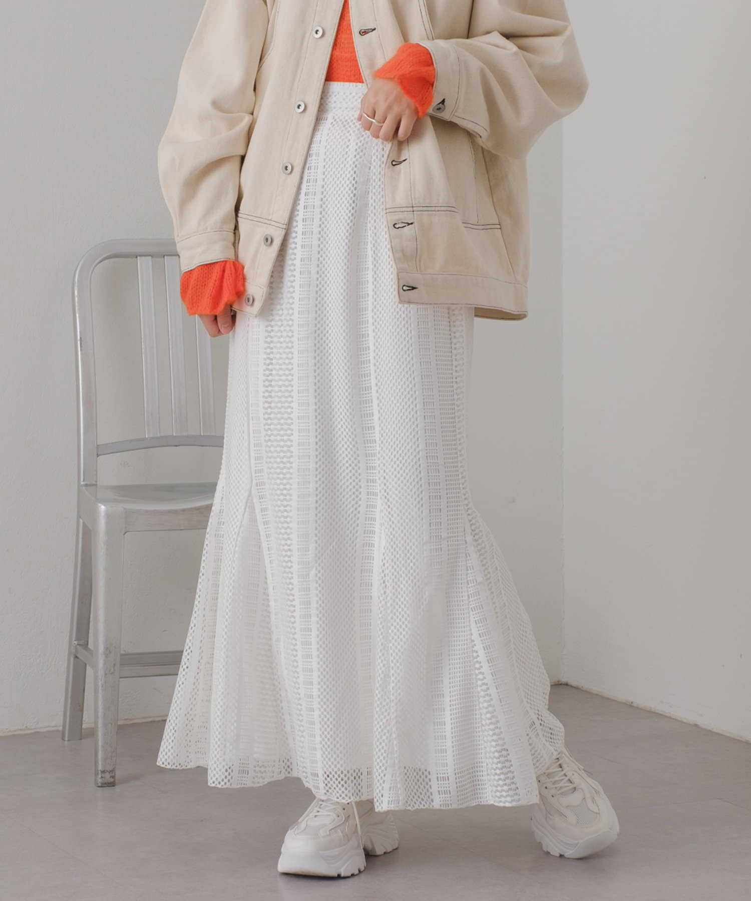 裾に向かって広がるマーメイドラインなので、オーバーサイズのトップスとの相性◎