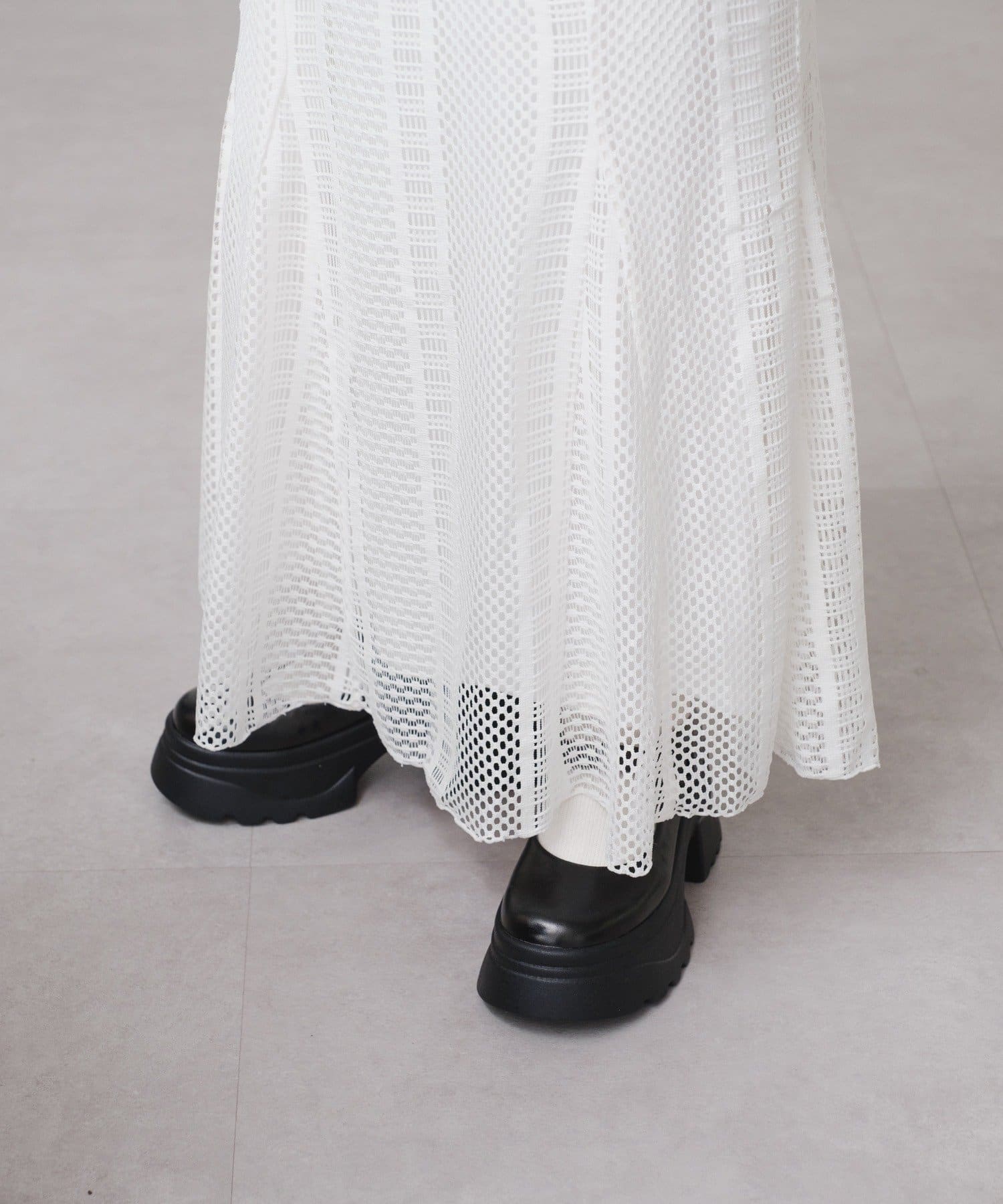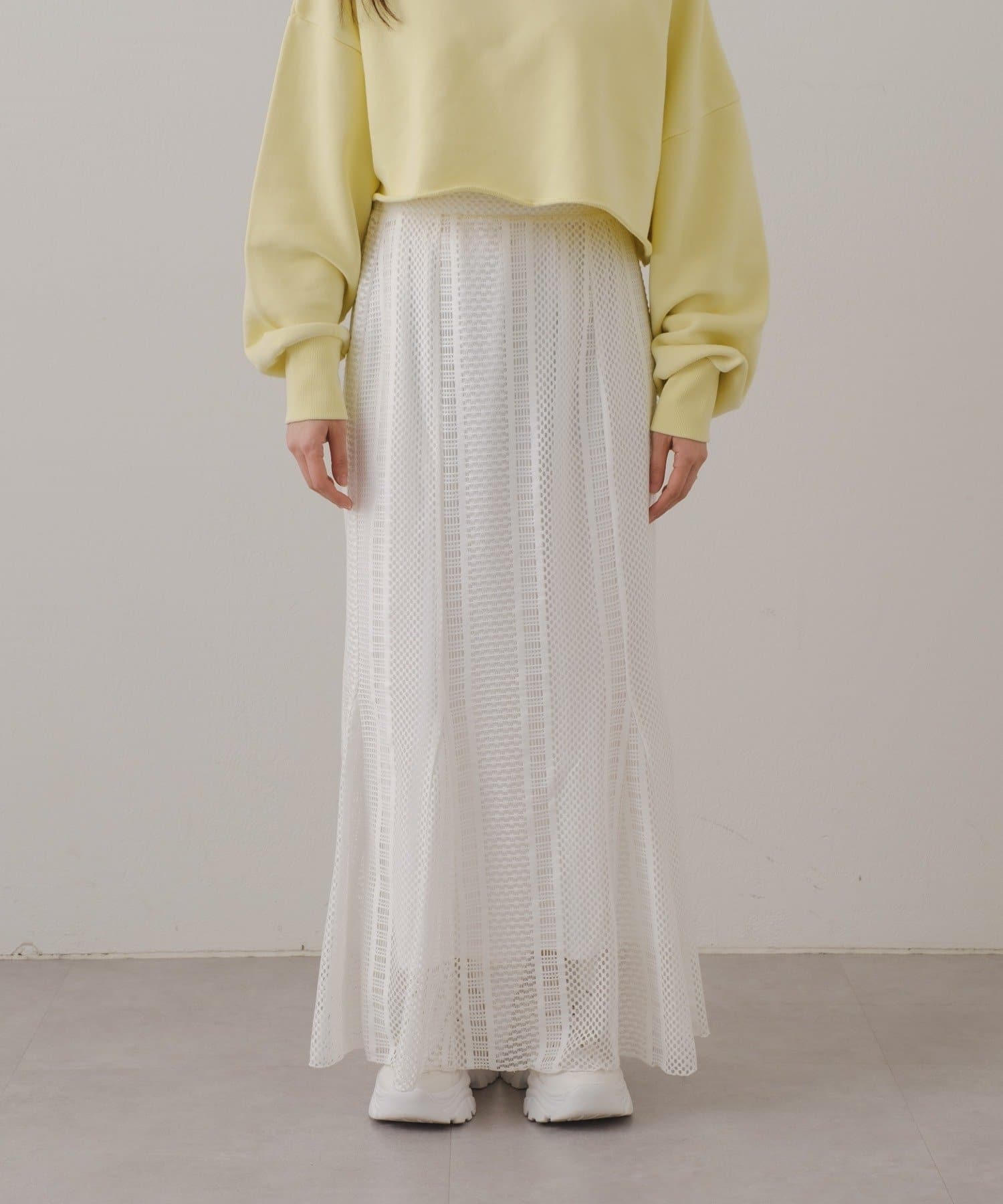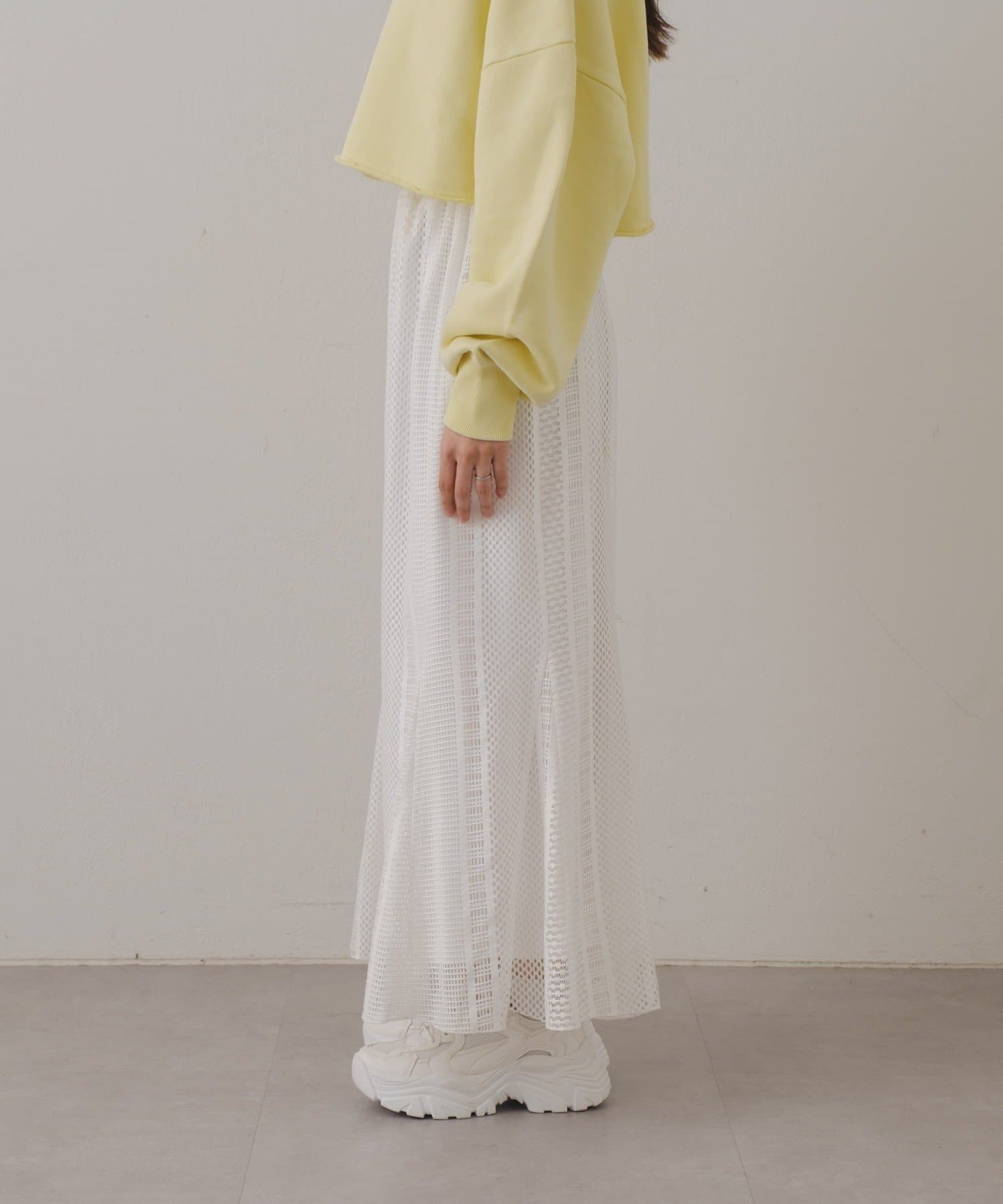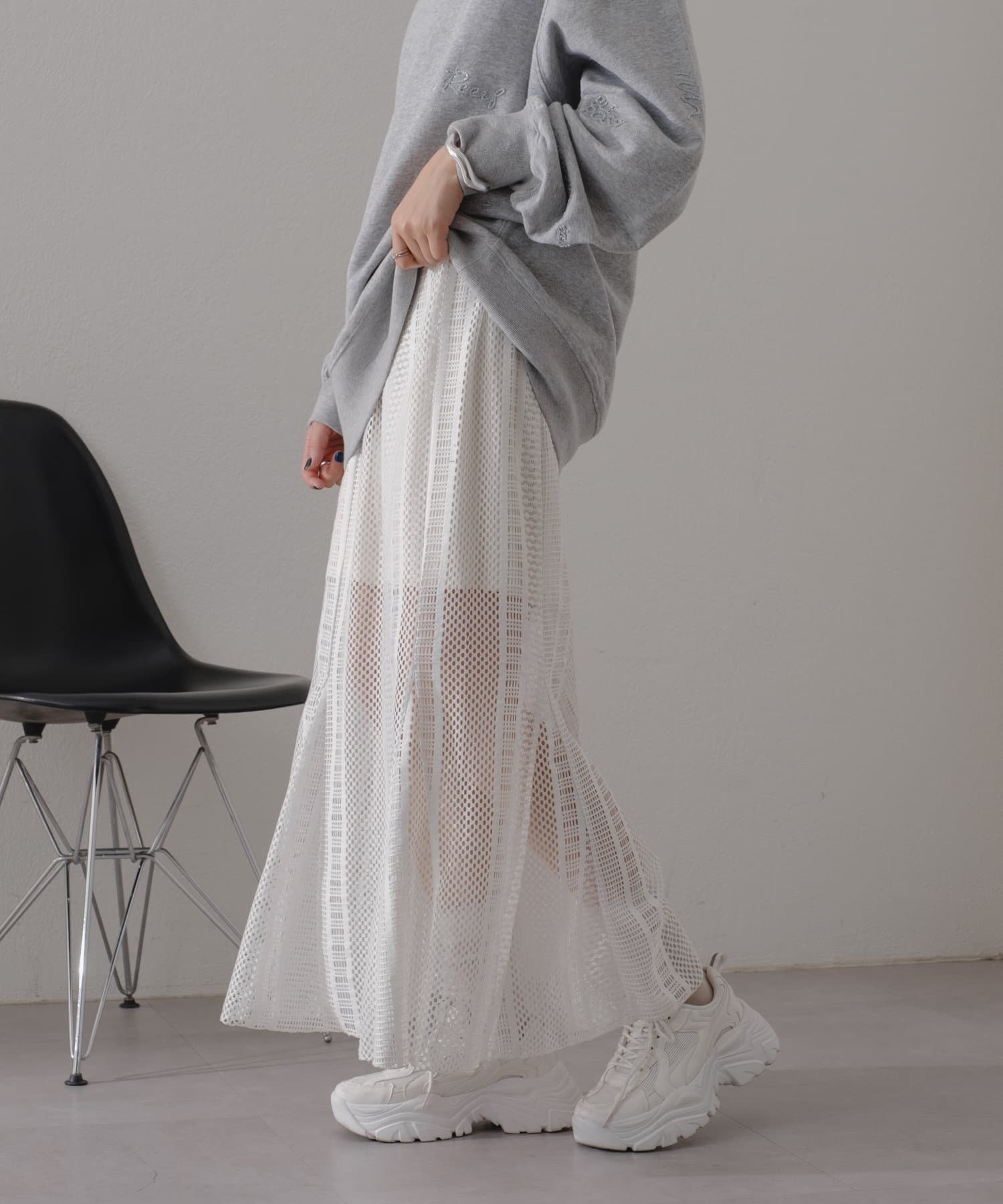 裾に向かって広がるマーメイドラインなので、オーバーサイズのトップスとの相性◎